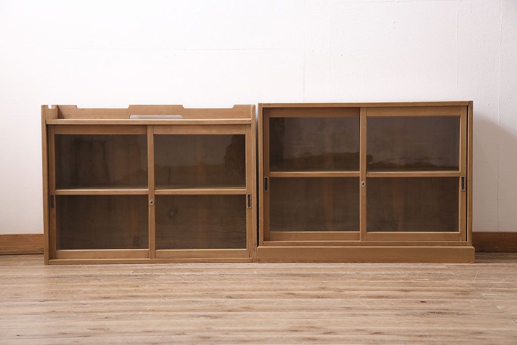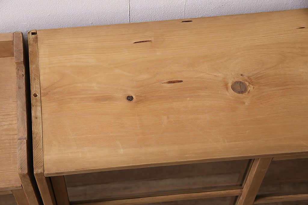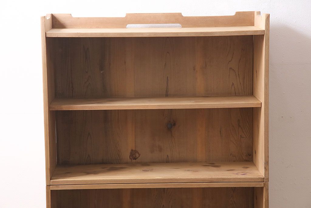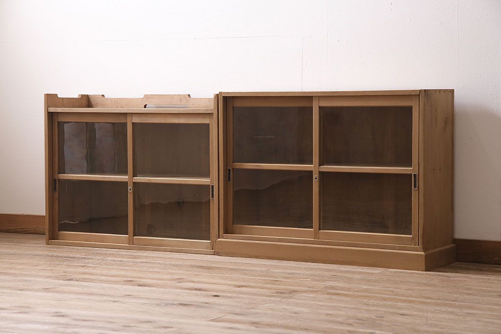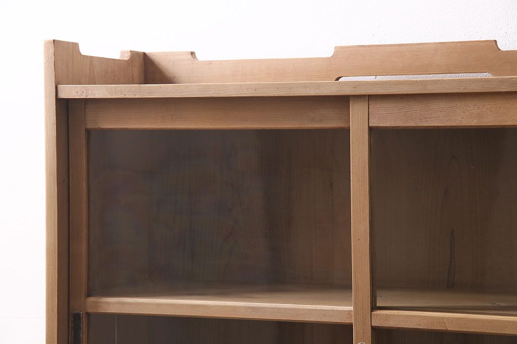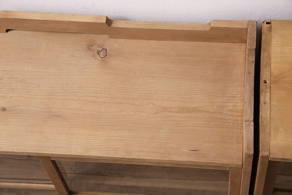 アンティーク家具 大正昭和初期 ストリップド(剥離) ゆらゆらガラスがレトロな雰囲気を高める重ねキャビネット(飾り棚、陳列棚、収納棚)(R-038601)です。
