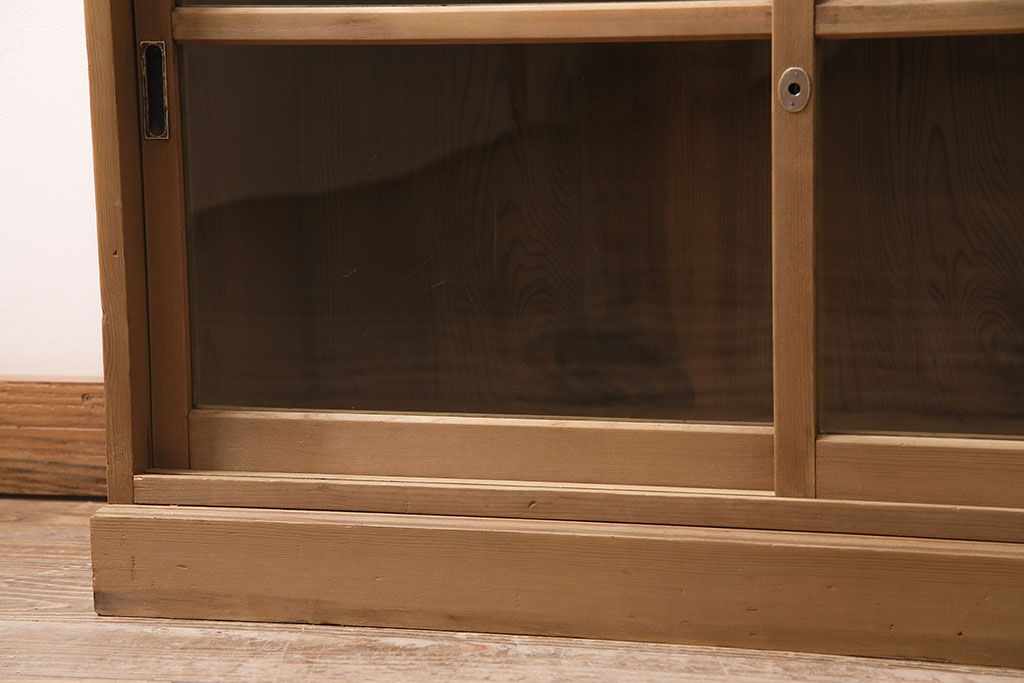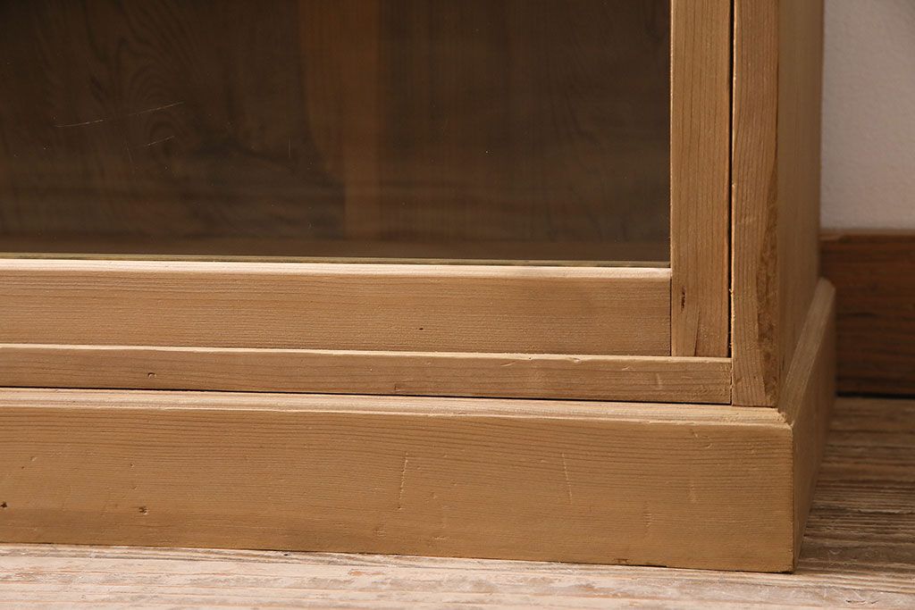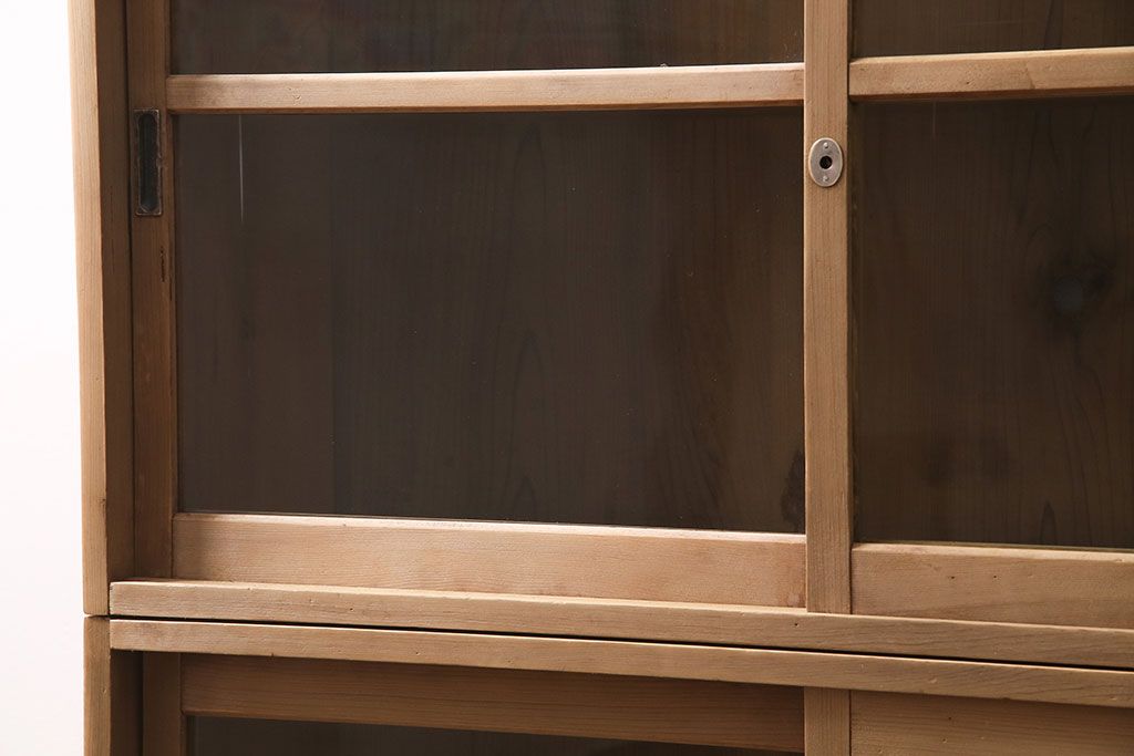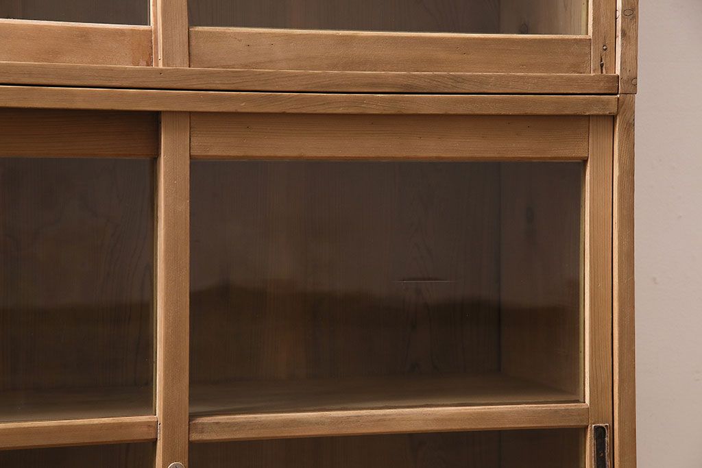アンティーク家具 大正昭和初期 ストリップド(剥離) ゆらゆらガラスがレトロな雰囲気を高める重ねキャビネット(飾り棚、陳列棚、収納棚)(R-038601)