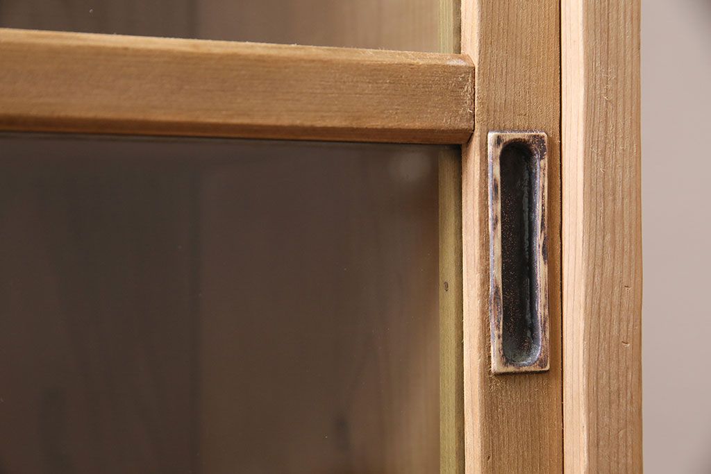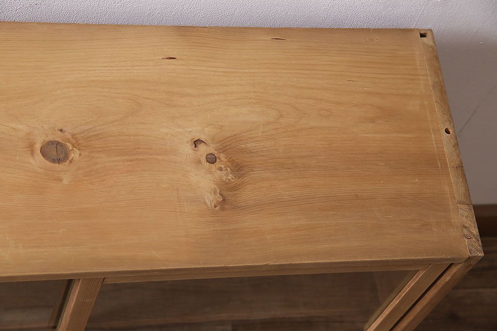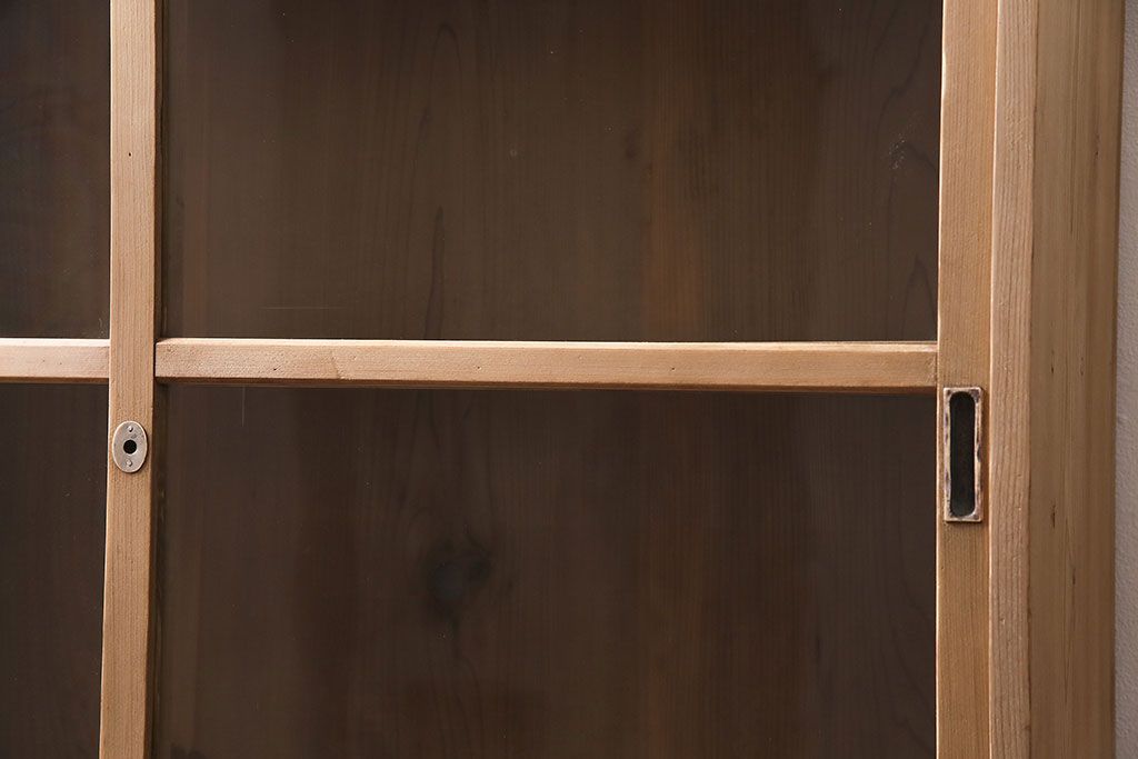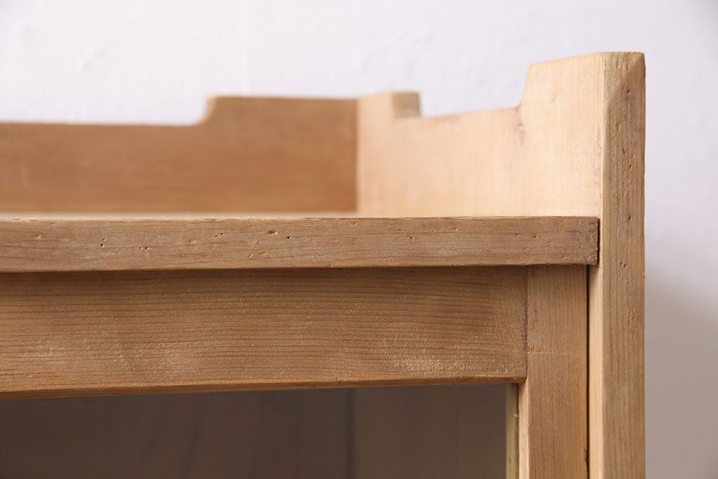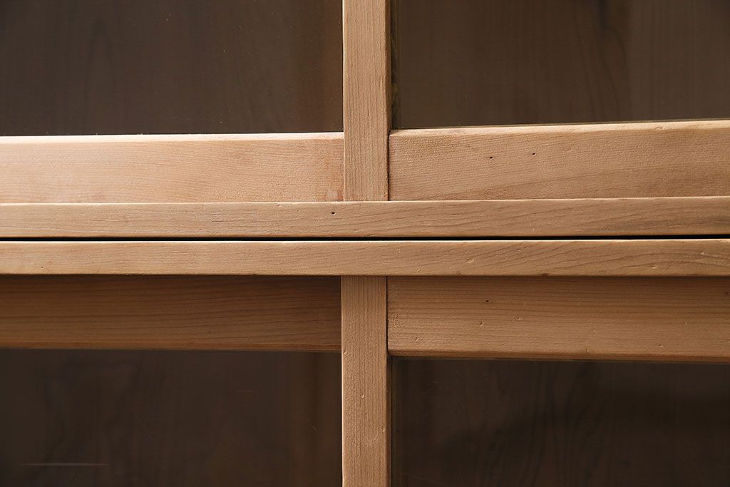 アンティーク家具 大正昭和初期 ストリップド(剥離) ゆらゆらガラスがレトロな雰囲気を高める重ねキャビネット(飾り棚、陳列棚、収納棚)(R-038601)