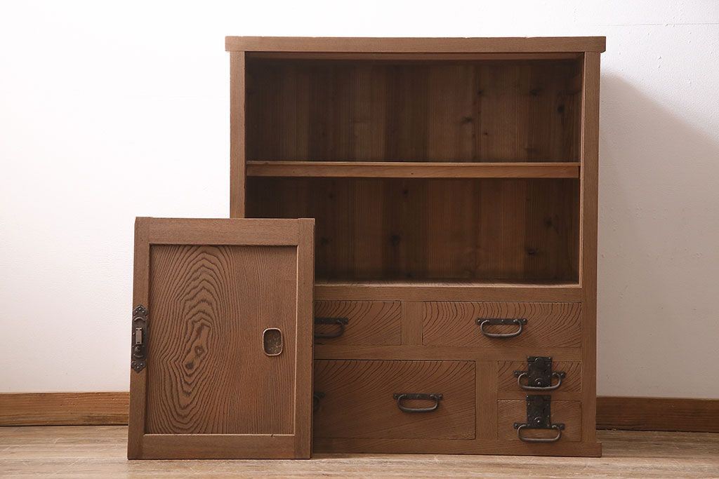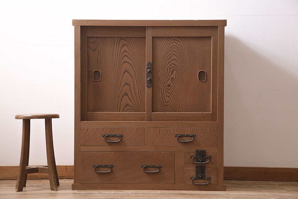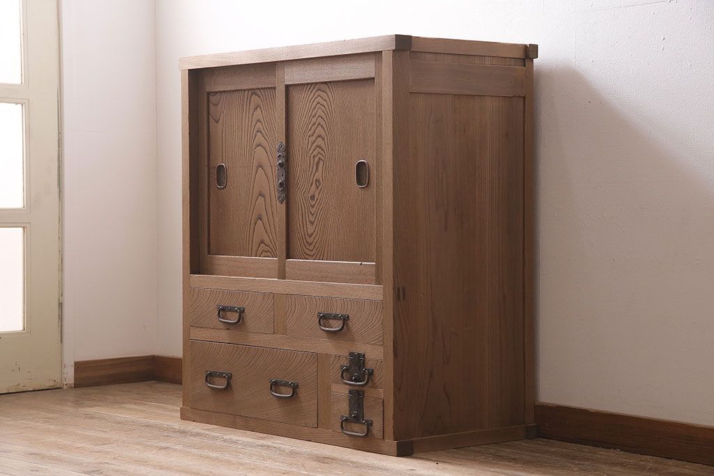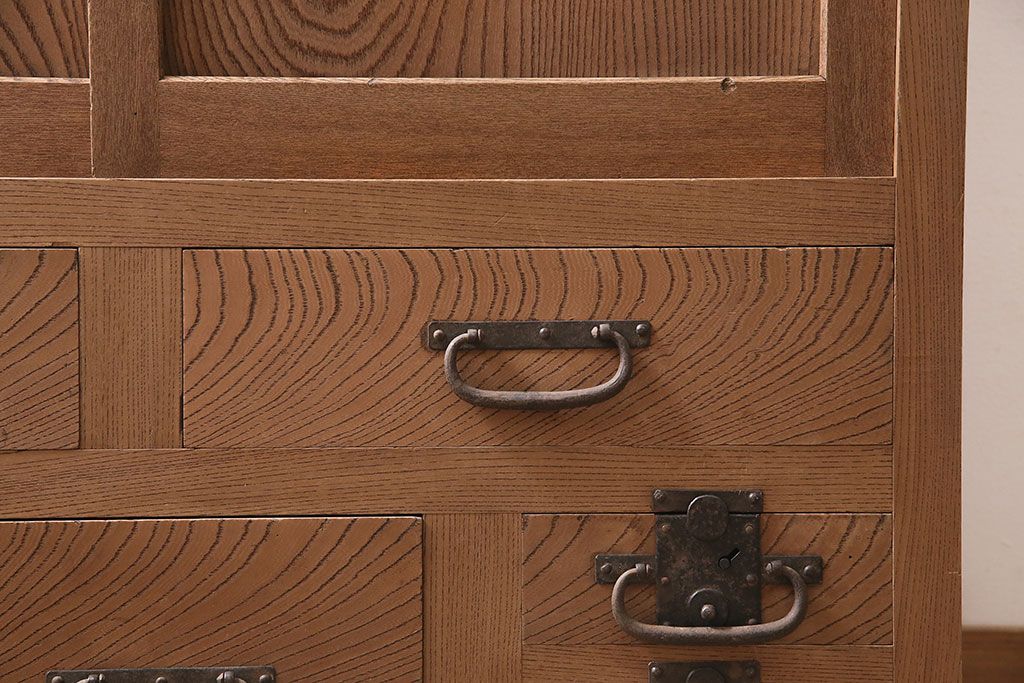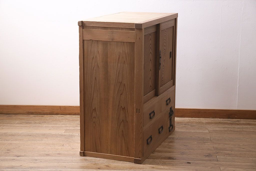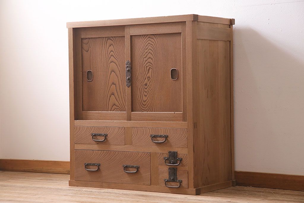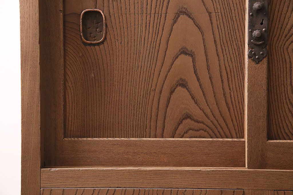 アンティーク家具 明治期 ストリップド(剥離) 前面ケヤキ材 力強い杢目が楽しめる収納箪笥(収納棚、帳場箪笥)(R-045642)