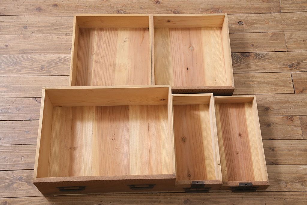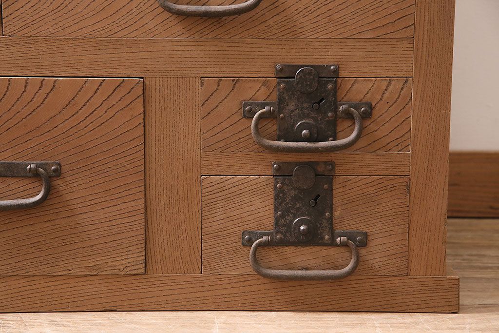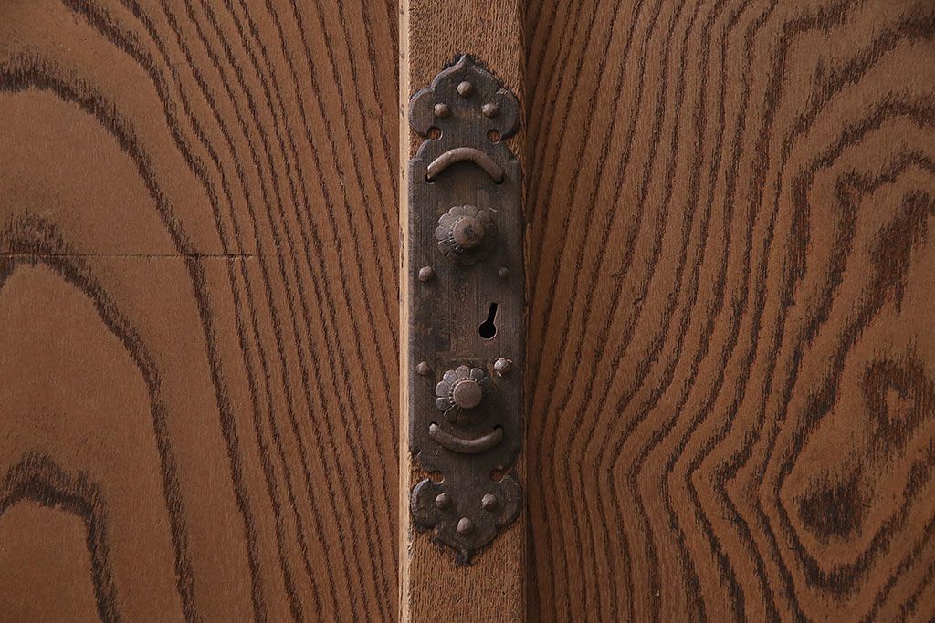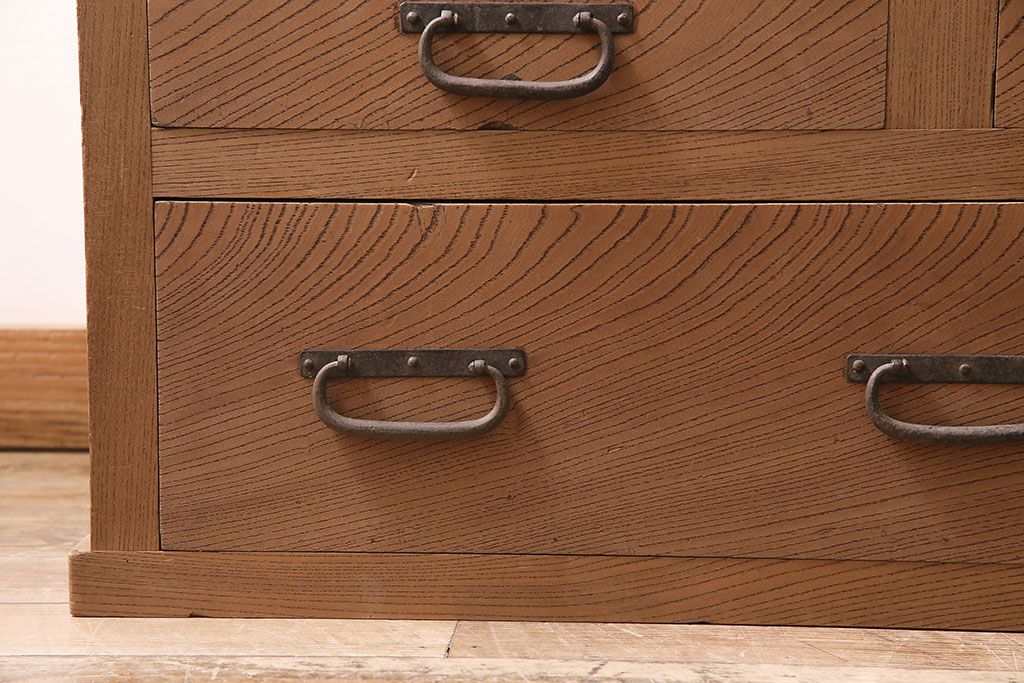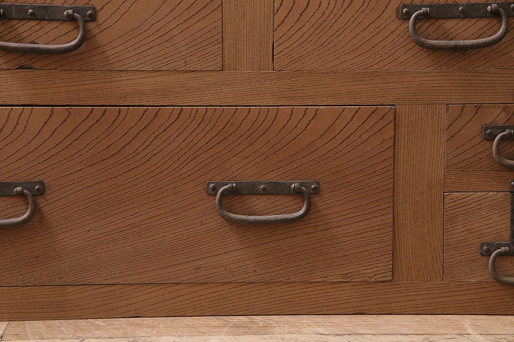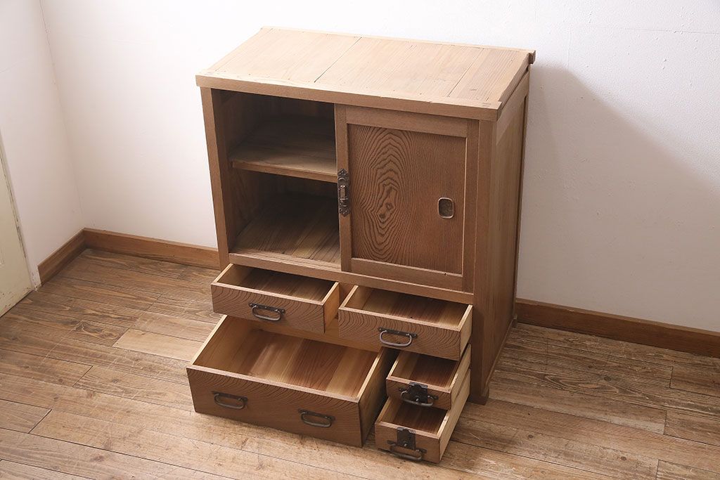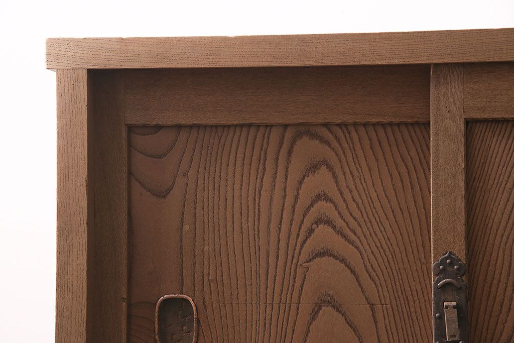 アンティーク家具 明治期 ストリップド(剥離) 前面ケヤキ材 力強い杢目が楽しめる収納箪笥(収納棚、帳場箪笥)(R-045642)
