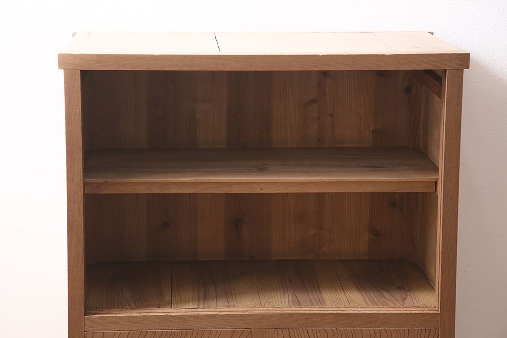 ストリップド(剥離)家具 > アンティーク家具 明治期 ストリップド(剥離) 前面ケヤキ材 力強い杢目が楽しめる収納箪笥(収納棚、帳場箪笥)(R-045642)