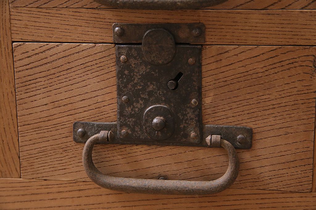 和箪笥> 船箪笥 > アンティーク家具 明治期 ストリップド(剥離) 前面ケヤキ材 力強い杢目が楽しめる収納箪笥(収納棚、帳場箪笥)(R-045642)