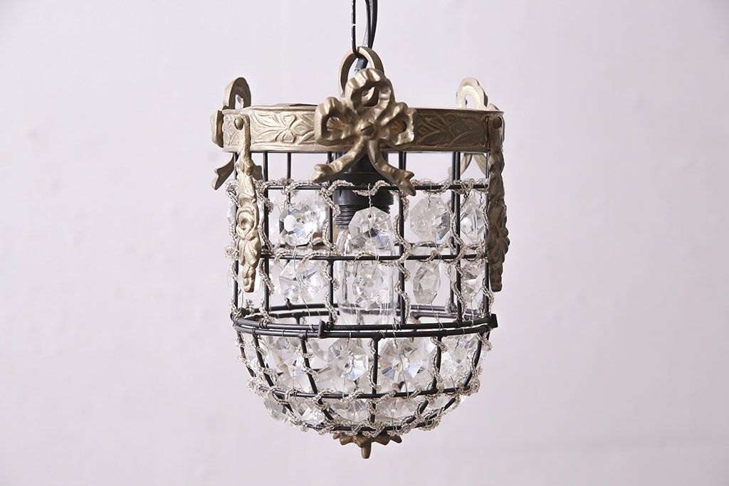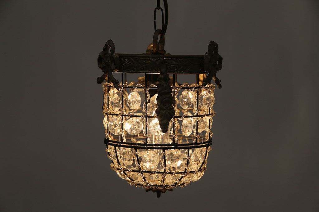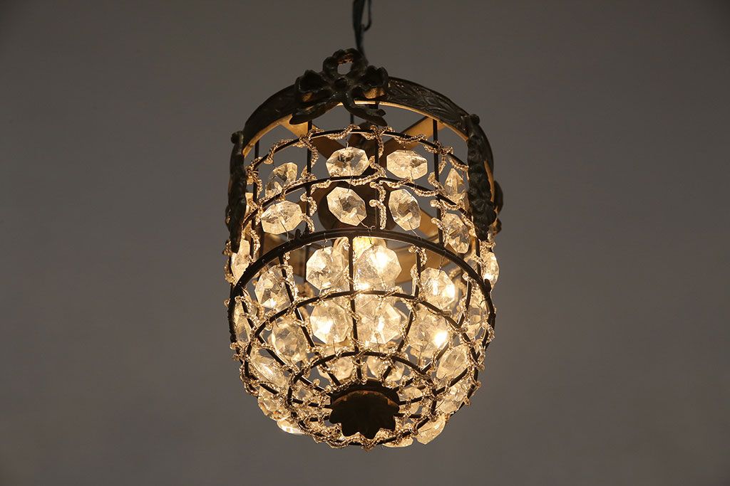 ヴィンテージ照明 イギリスビンテージ 真鍮 凝った装飾が華やかな印象を与える吊り下げ照明(天井照明)(R-045655)
