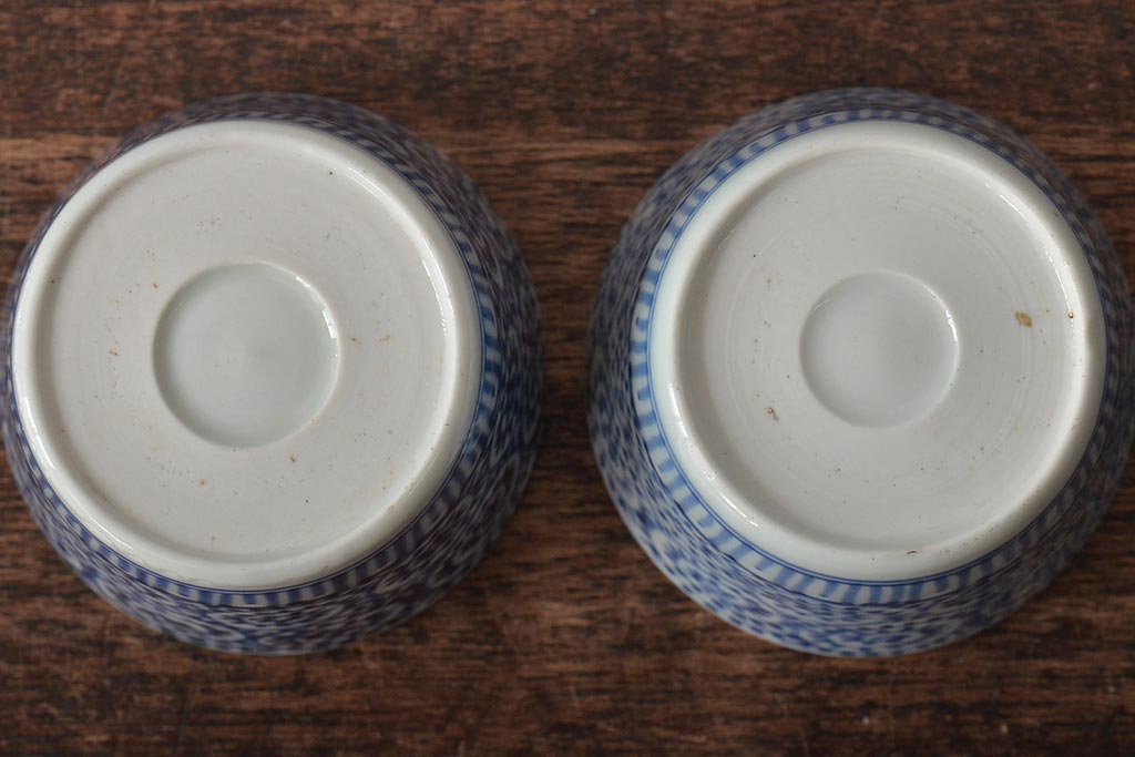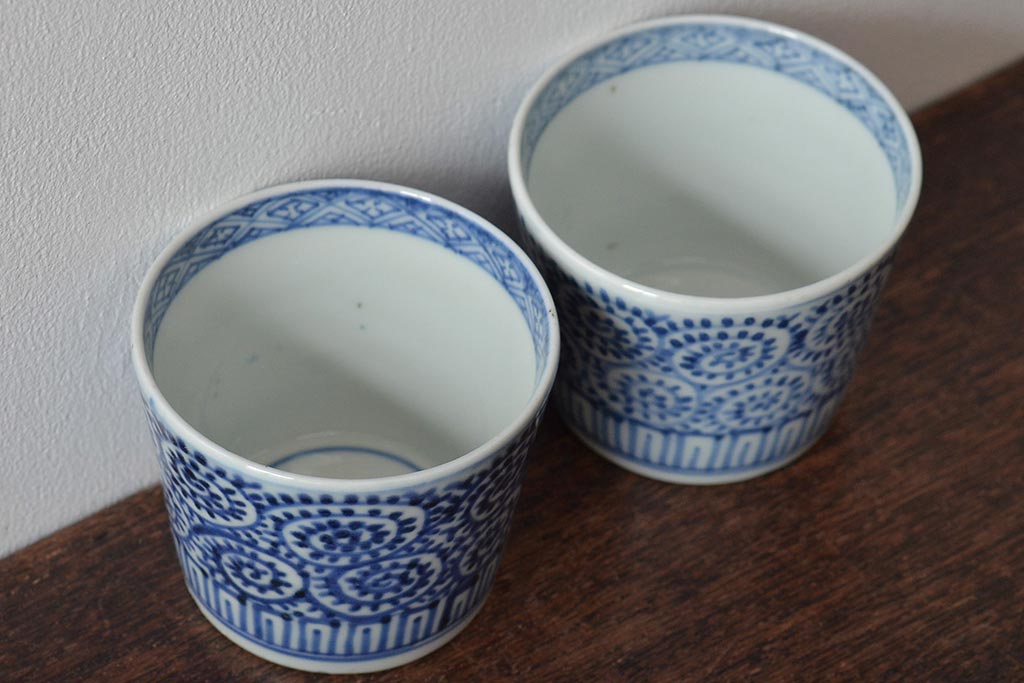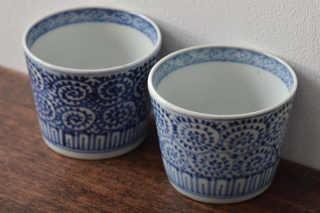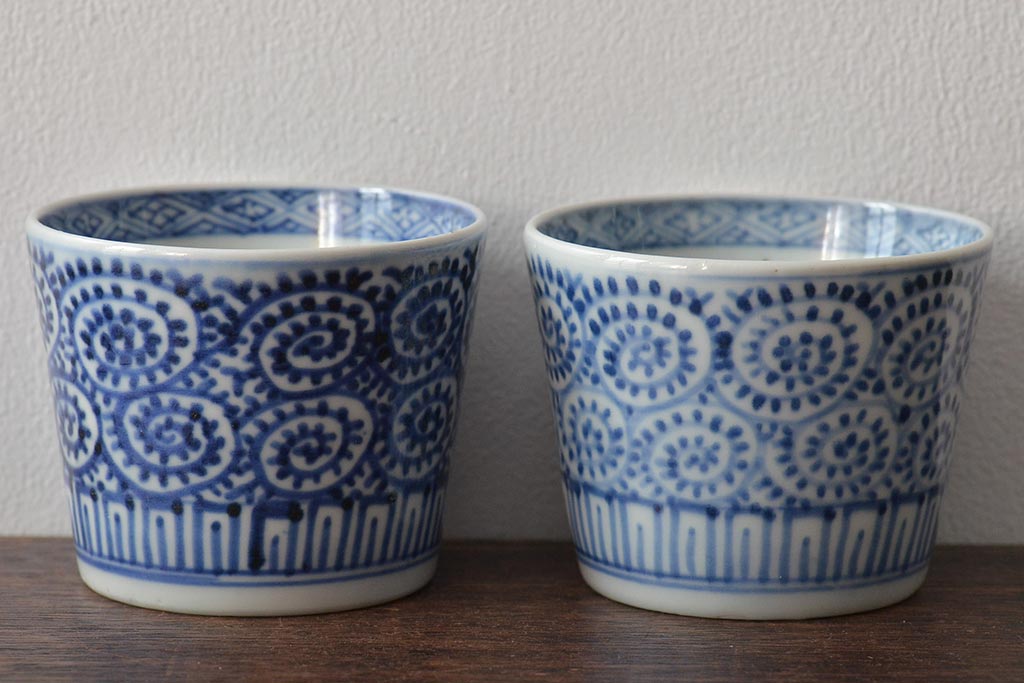 江戸〜明治期 古伊万里 蛸唐草文染付 蕎麦猪口2客(和食器)(R-045524)