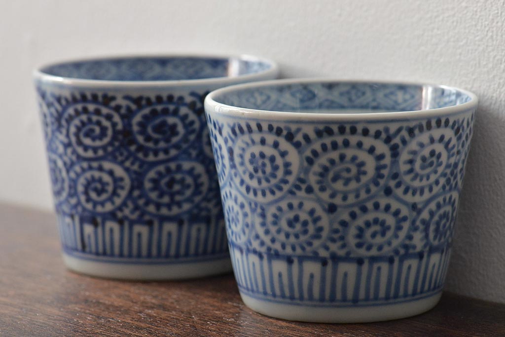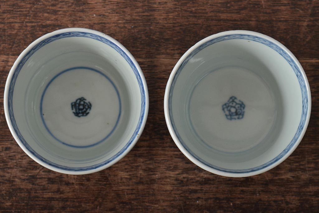 ラフジュ工房> 骨董・美術品> 骨董-陶磁器 > 江戸〜明治期 古伊万里 蛸唐草文染付 蕎麦猪口2客(和食器)(R-045524)