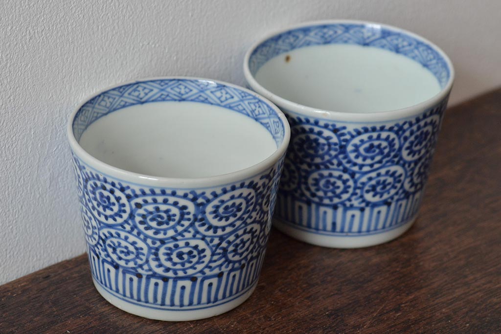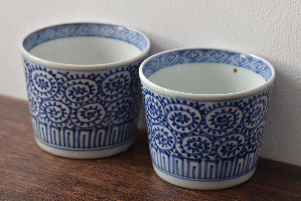 ラフジュ工房> 骨董・美術品> 骨董-陶磁器 > 江戸〜明治期 古伊万里 蛸唐草文染付 蕎麦猪口2客(和食器)(R-045522)