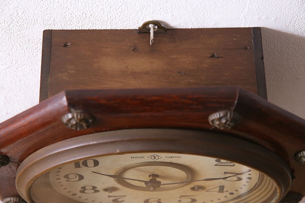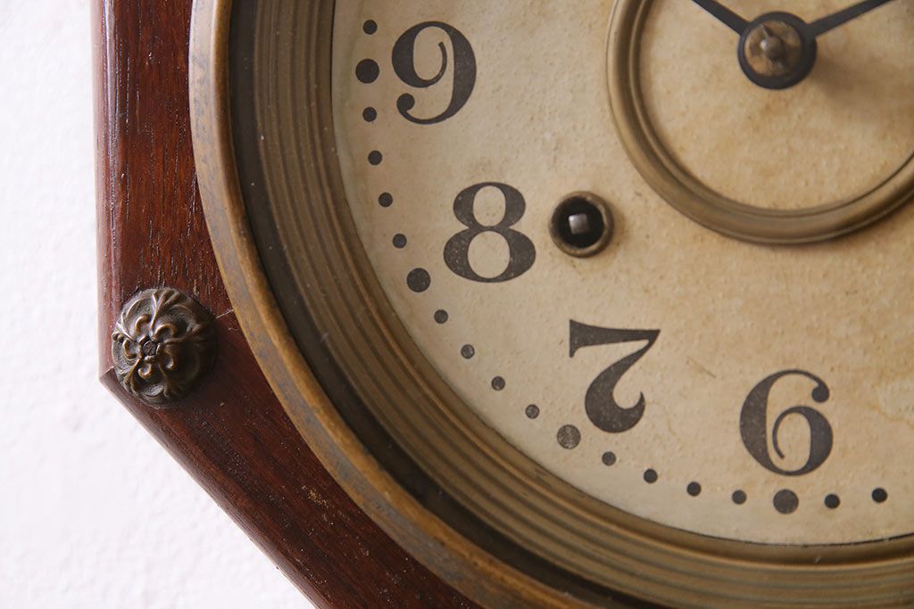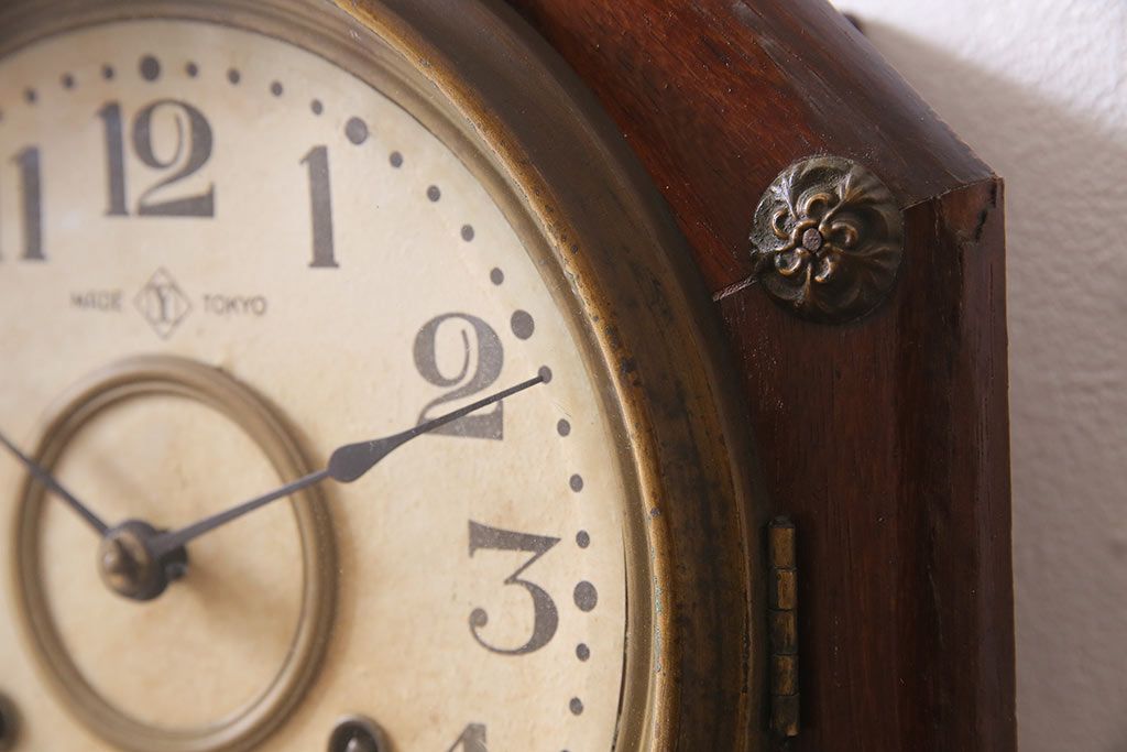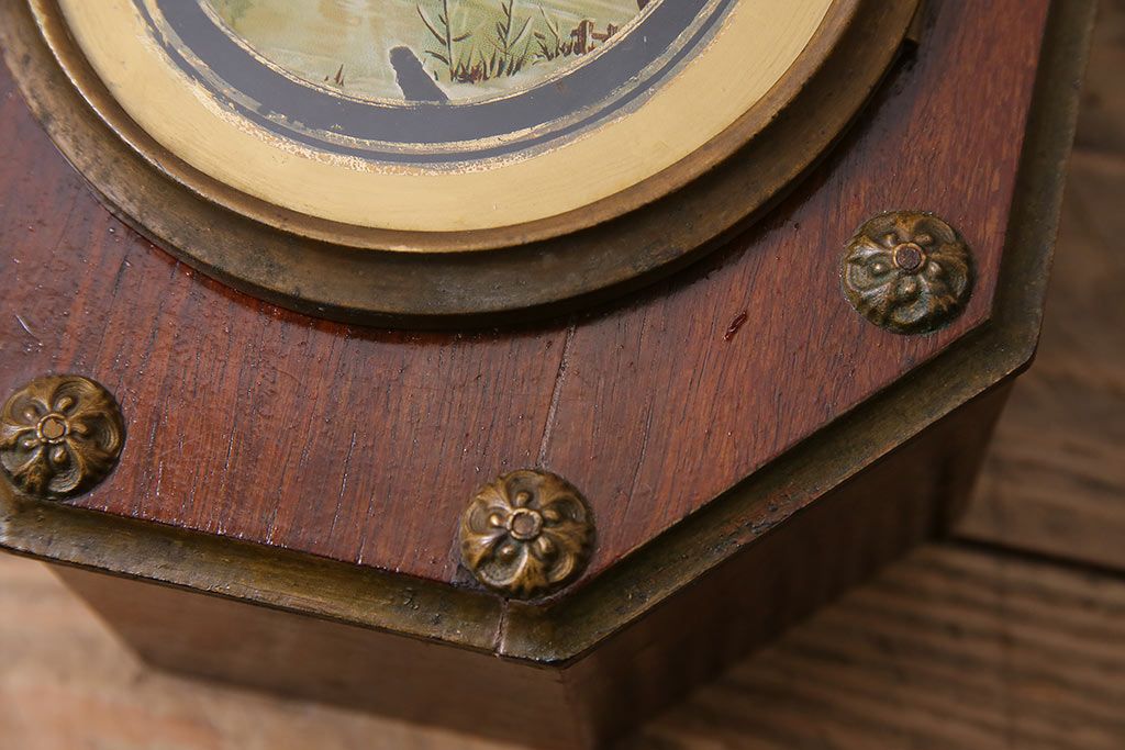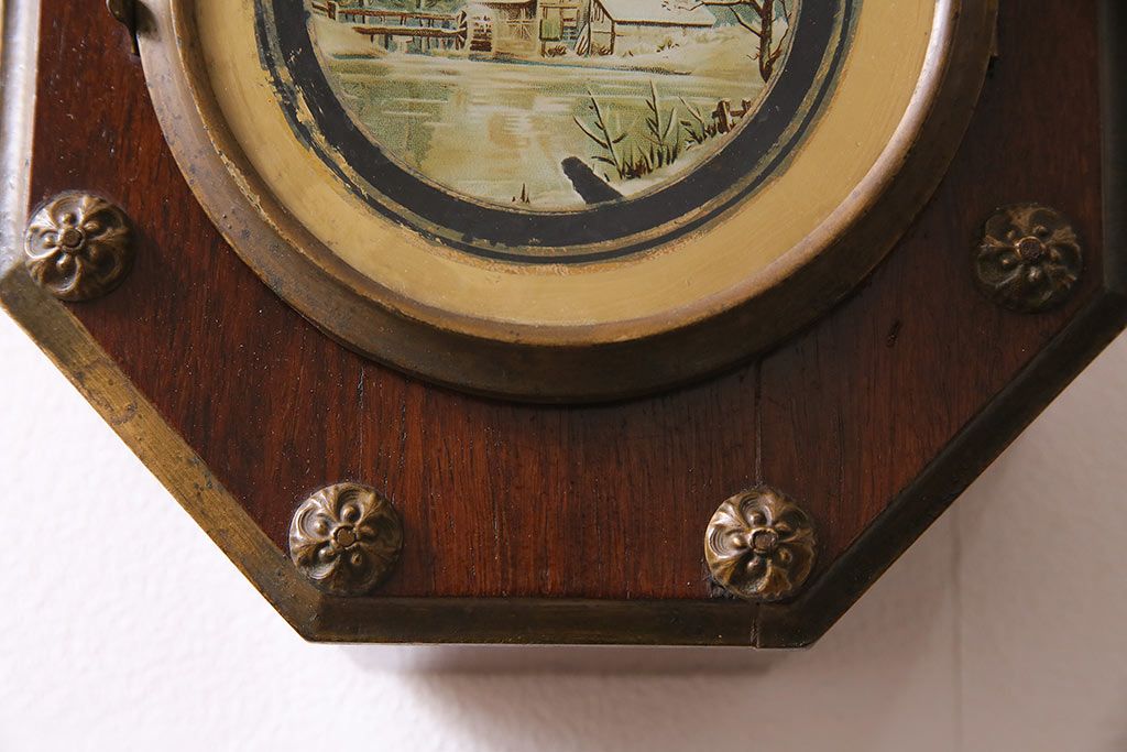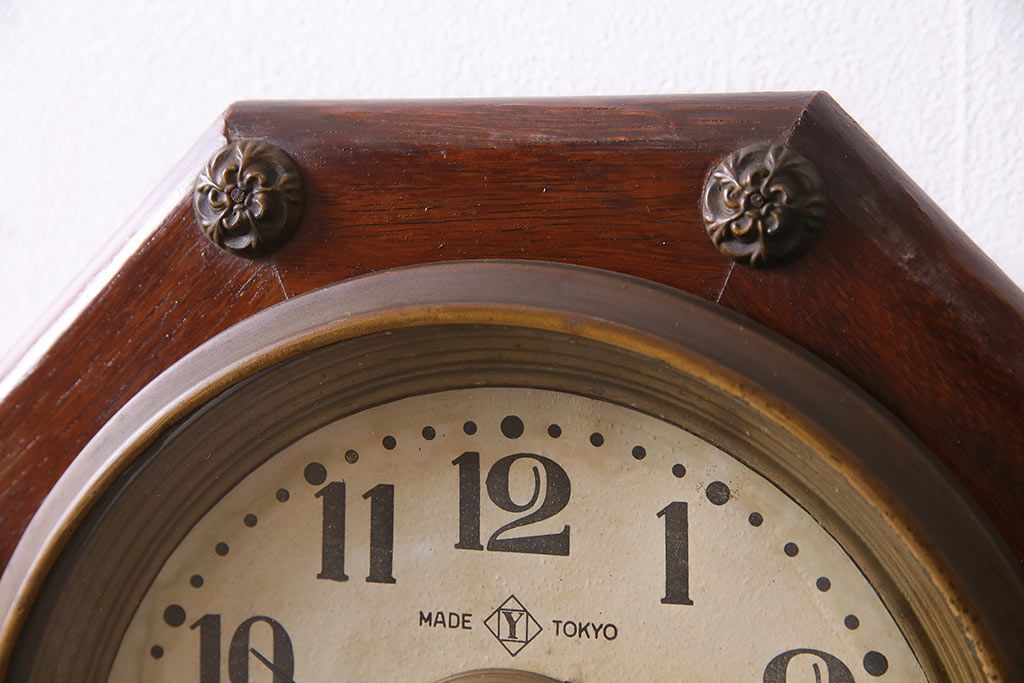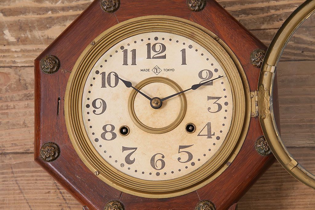 アンティーク時計 大正昭和初期 精工舎(SEIKOSHA、セイコー) ゼンマイ式 珍しいガラス絵の八角柱時計(掛け時計)(R-045349)