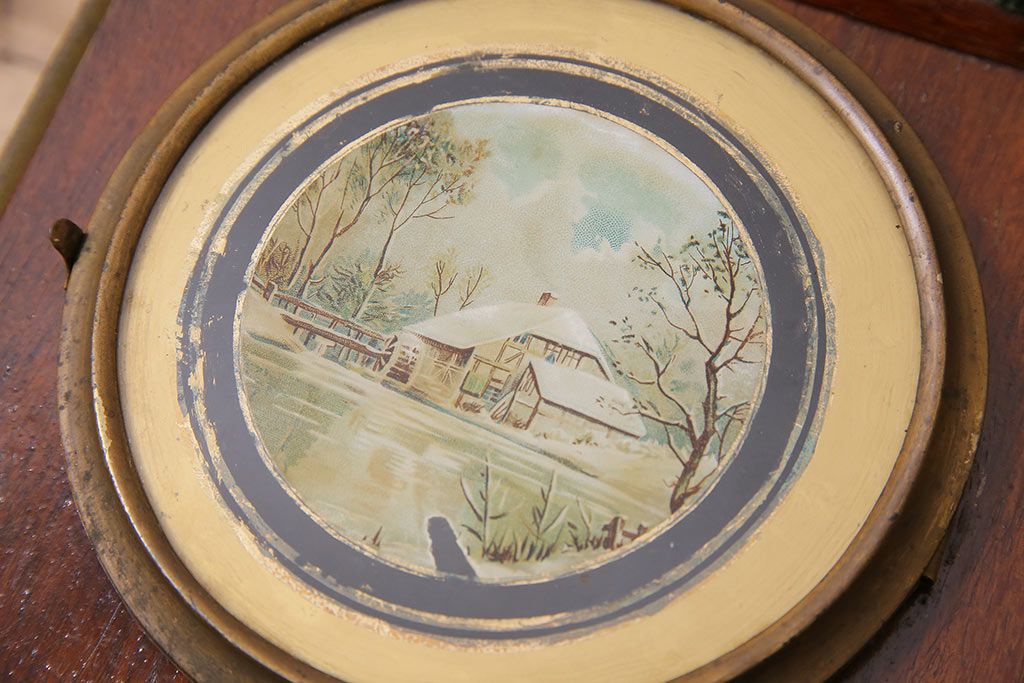 時計> 掛け時計 > アンティーク時計 大正昭和初期 精工舎(SEIKOSHA、セイコー) ゼンマイ式 珍しいガラス絵の八角柱時計(掛け時計)(R-045349)