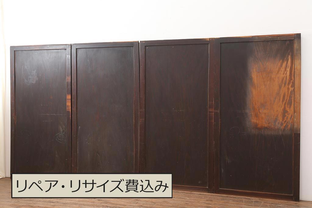 ドア・建具> 4枚〜セット > アンティーク建具 明治期 杉材一枚板 杢目が魅力のシンプルな板戸4枚セット(引き戸、建具)(R-045689)