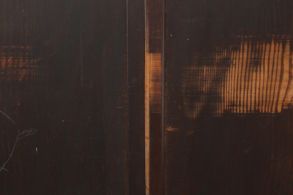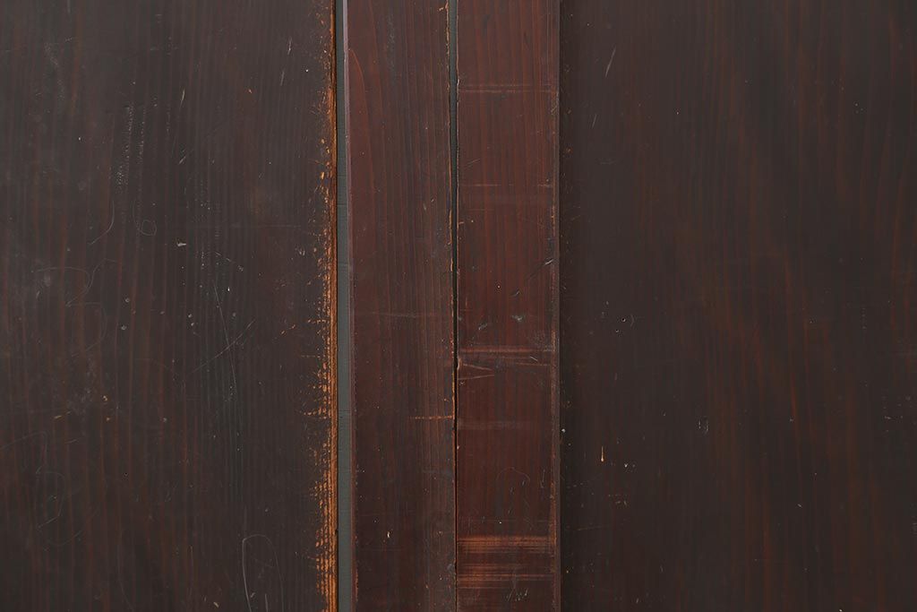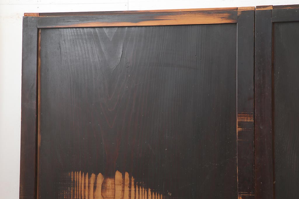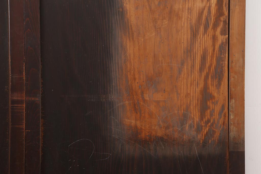 状態が気になる方には現状販売はおすすめできませんので、慎重なご検討をお願いいたします。アンティーク建具 明治期 杉材一枚板 杢目が魅力のシンプルな板戸4枚セット(引き戸、建具)(R-045689)です。