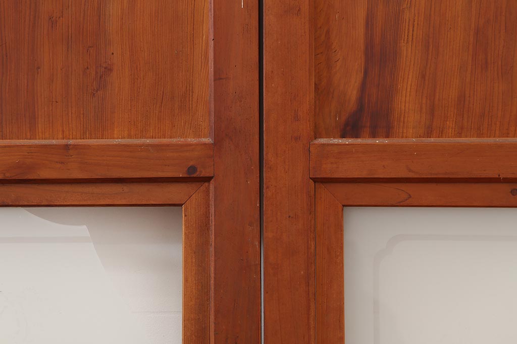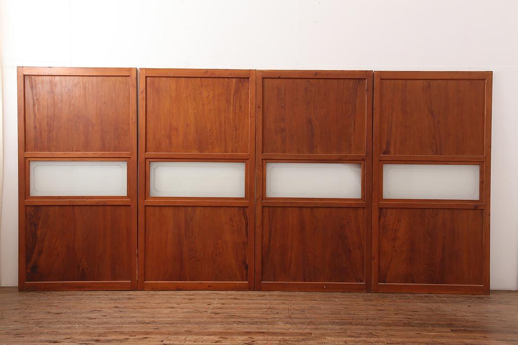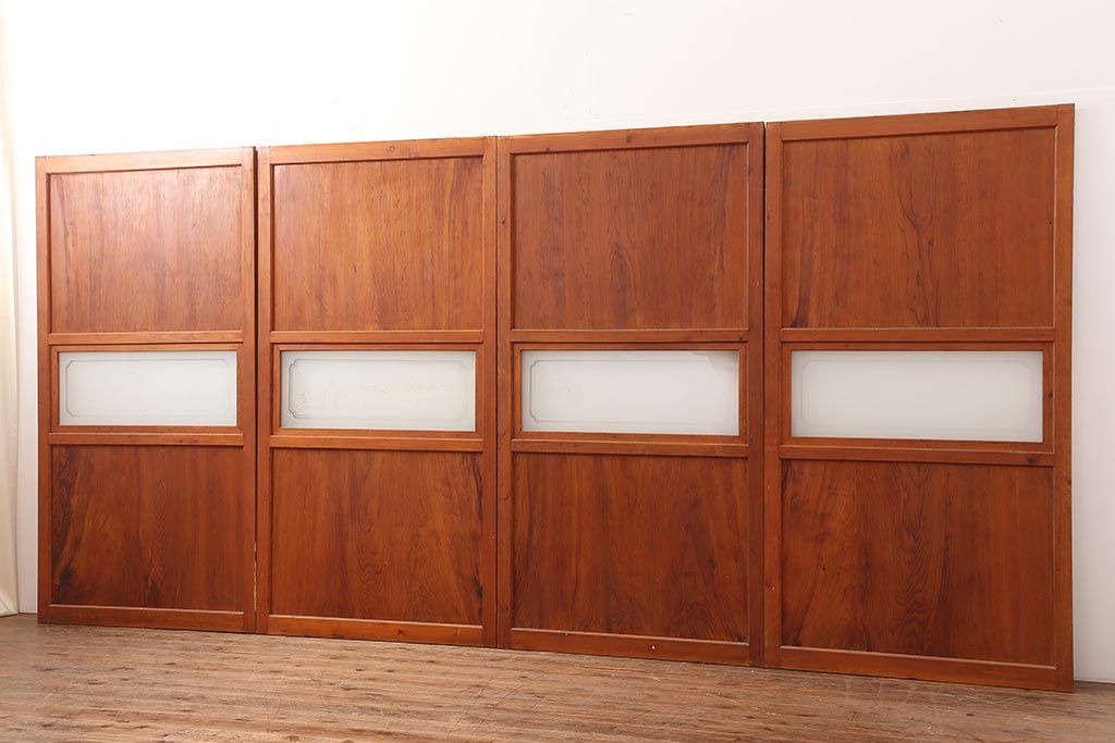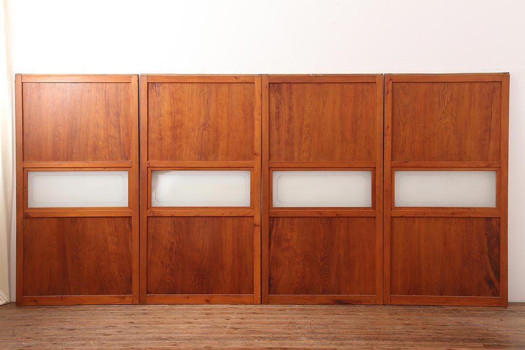 状態が気になる方には現状販売はおすすめできませんので、慎重なご検討をお願いいたします。アンティーク建具 昭和中期 春慶塗が魅力のガラス帯戸4枚セット(引き戸、建具)(R-045700)です。