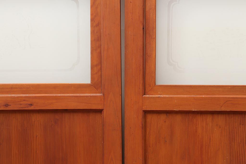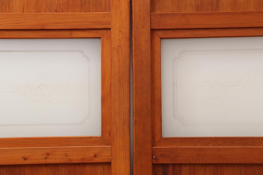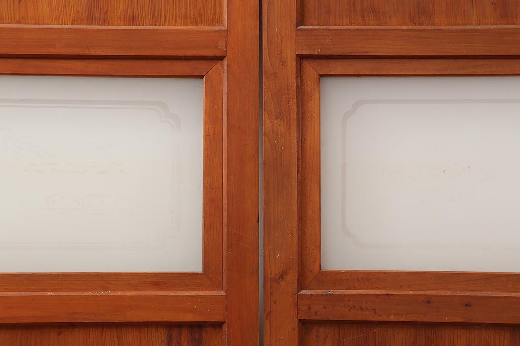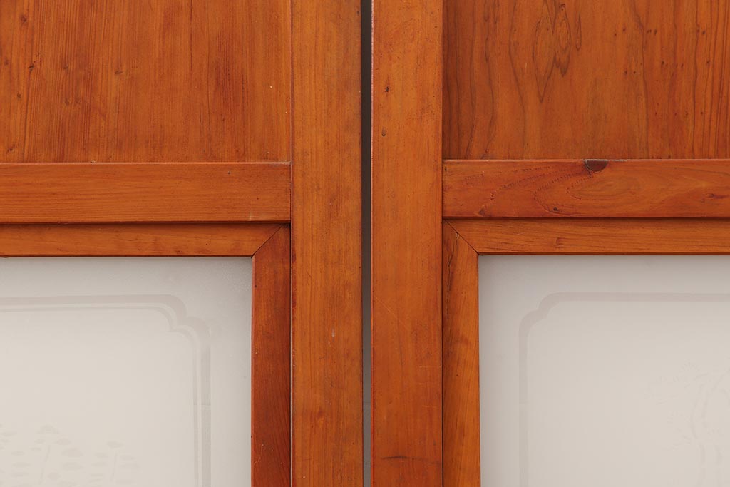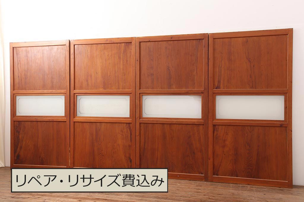状態が気になる方には現状販売はおすすめできませんので、慎重なご検討をお願いいたします。アンティーク建具 昭和中期 春慶塗が魅力のガラス帯戸4枚セット(引き戸、建具)(R-045700)です。