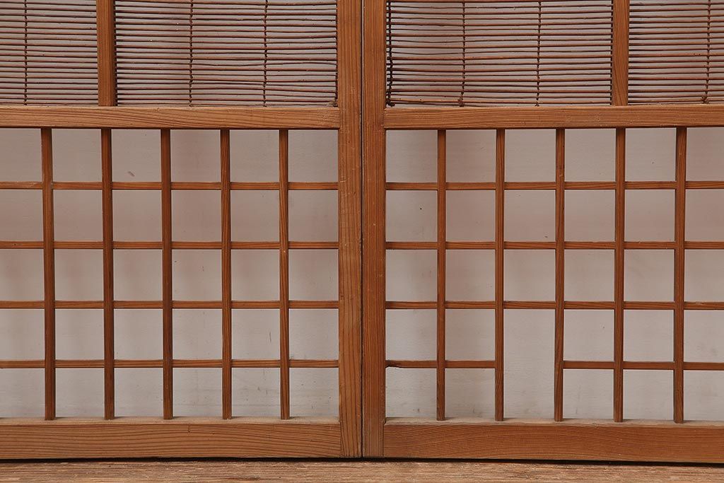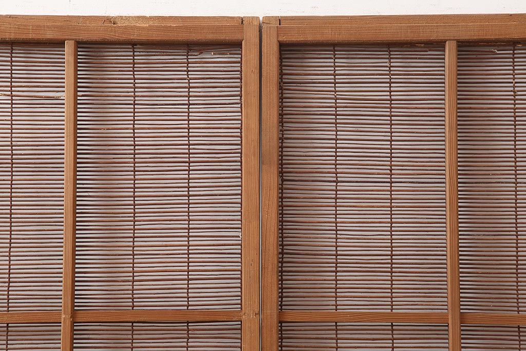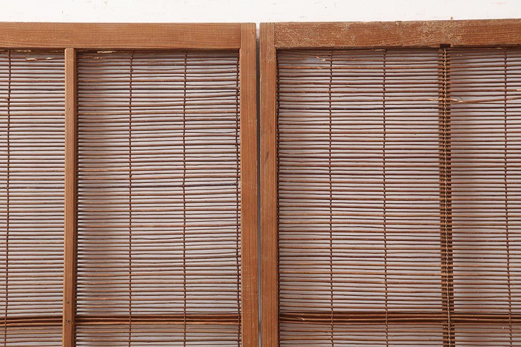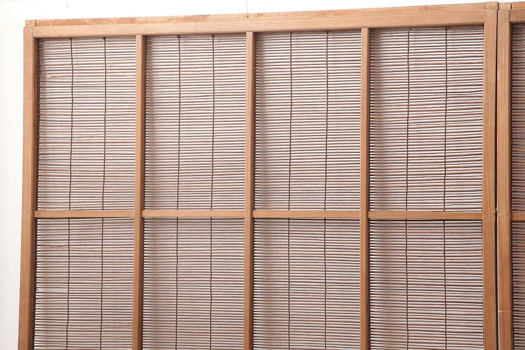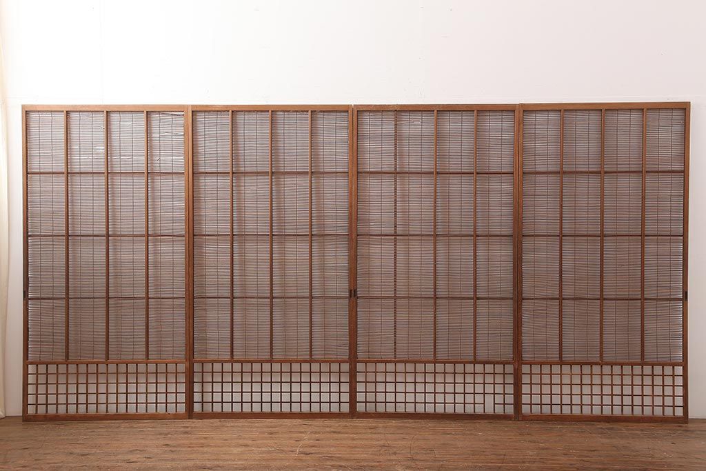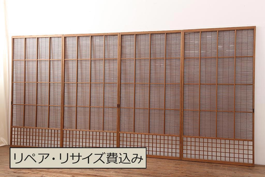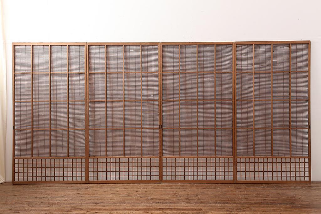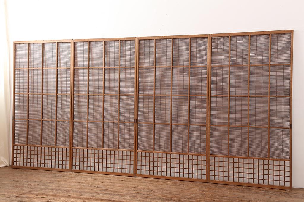レトロ建具 昭和中期 風情のある御簾戸4枚セット(簾戸、簀戸、葭戸、夏障子、夏戸、葦戸)(R-045701)