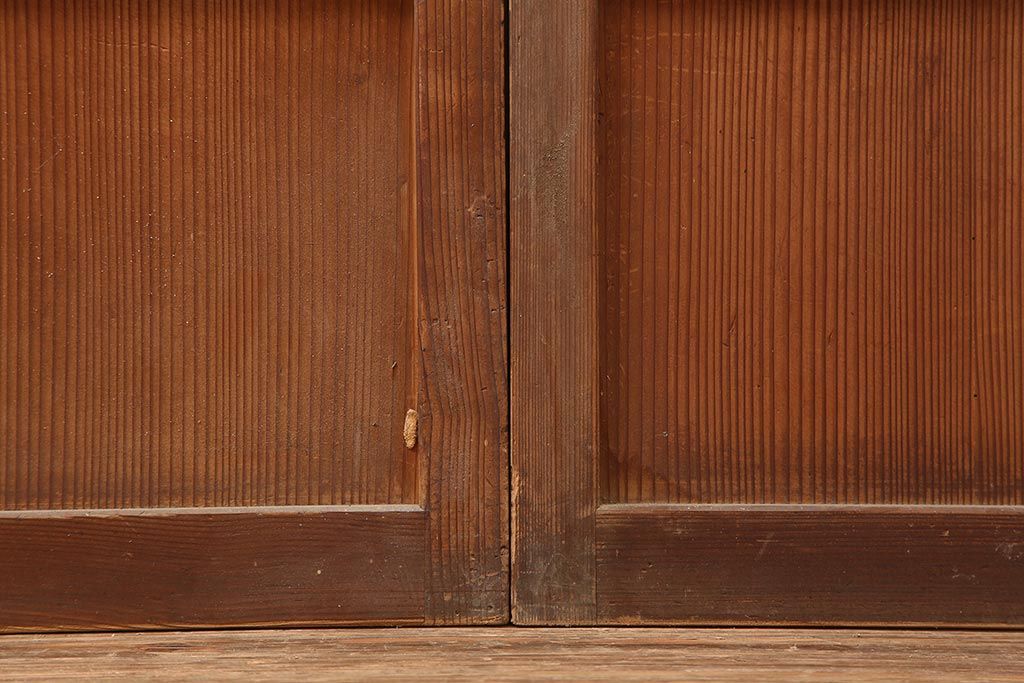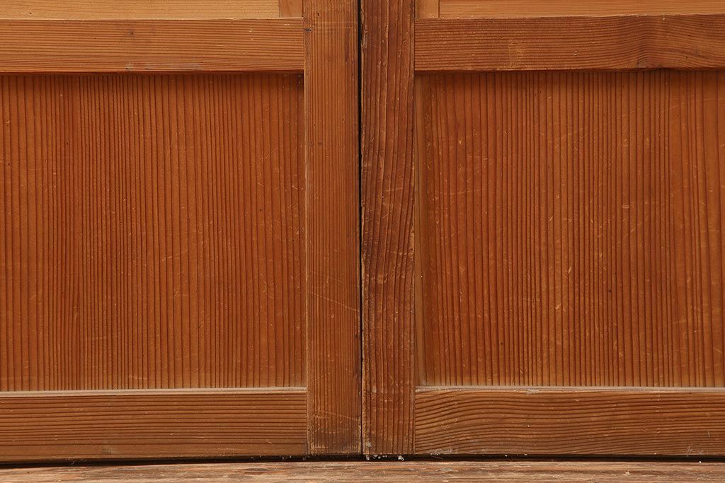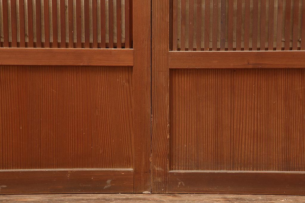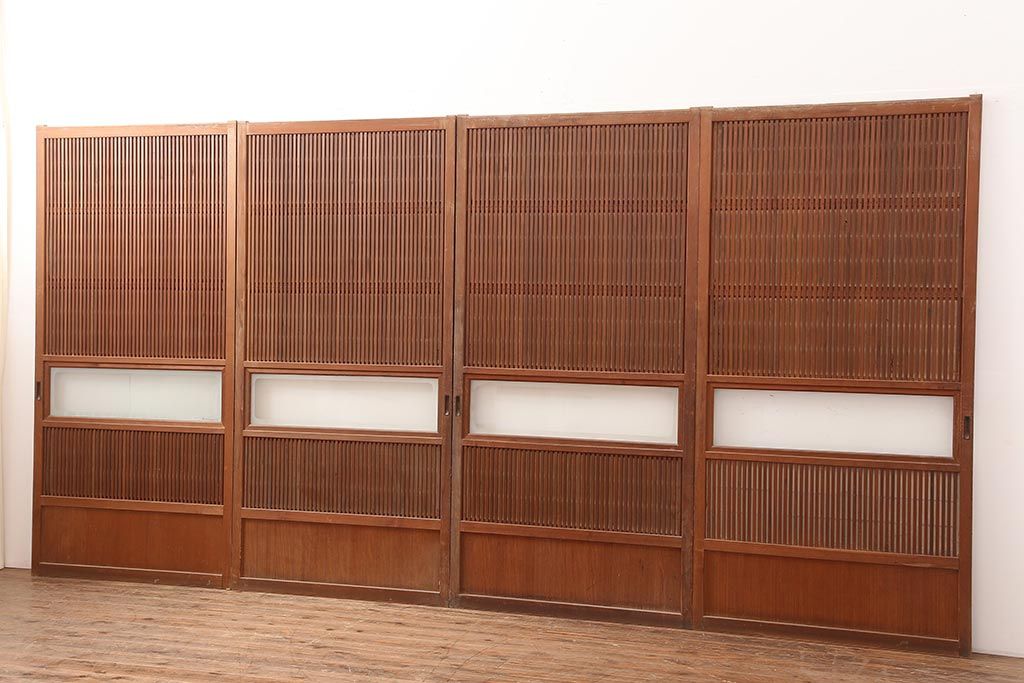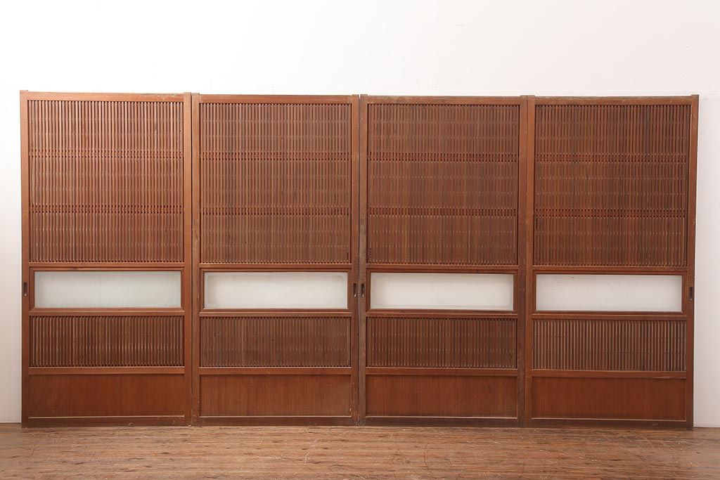 ドア・建具> 引き戸 > アンティーク建具 昭和中期 裏障子付き 赤みがかった色合いの帯格子戸4枚セット(障子戸、引き戸、建具)(R-045691)