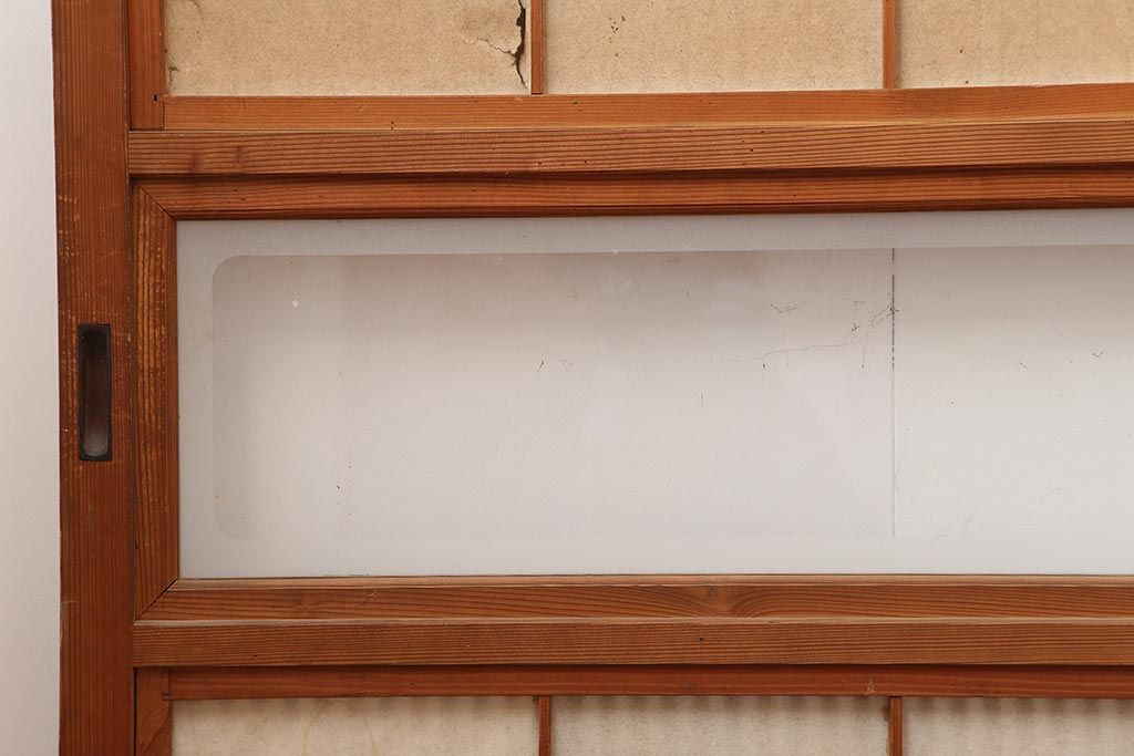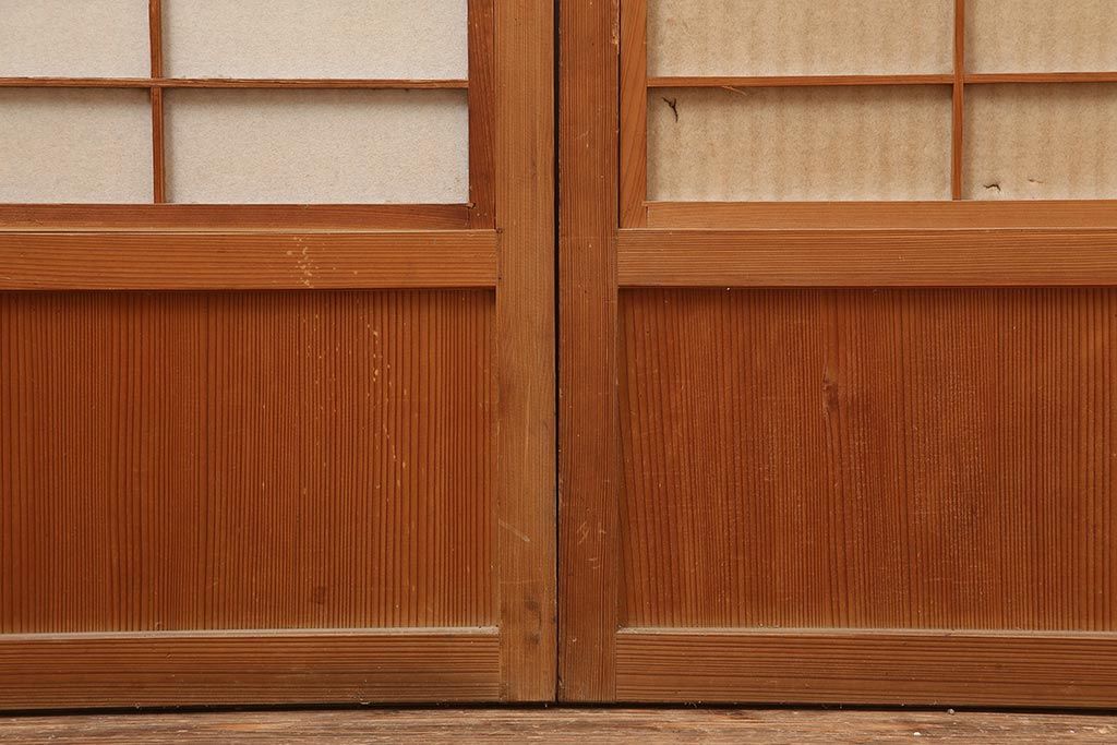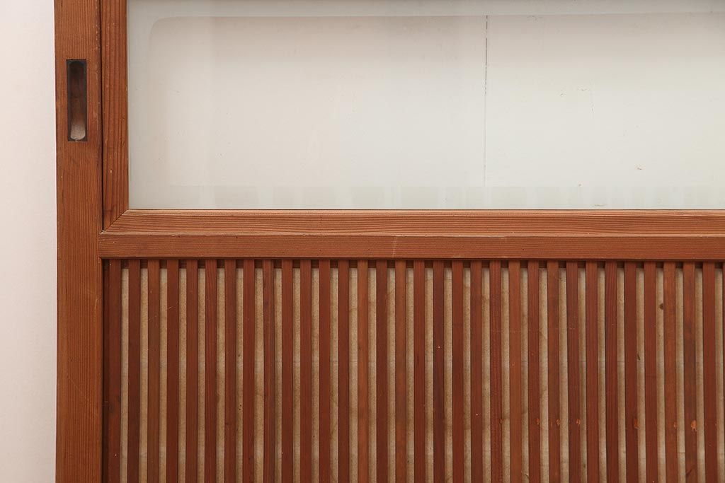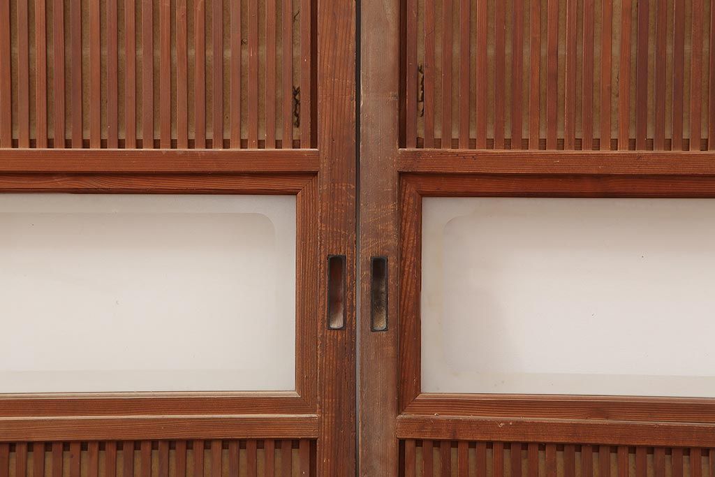 ドア・建具> 障子戸 > アンティーク建具 昭和中期 裏障子付き 赤みがかった色合いの帯格子戸4枚セット(障子戸、引き戸、建具)(R-045691)