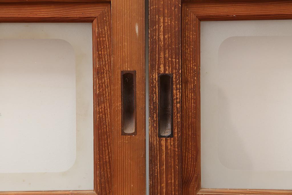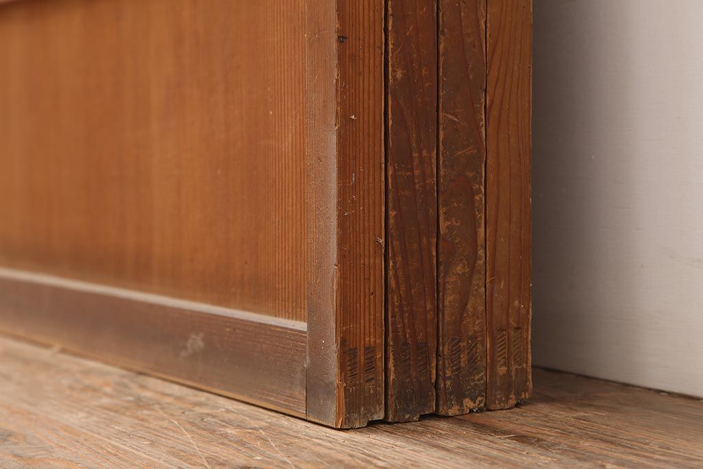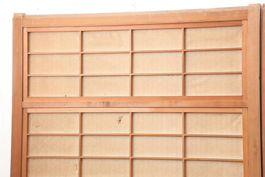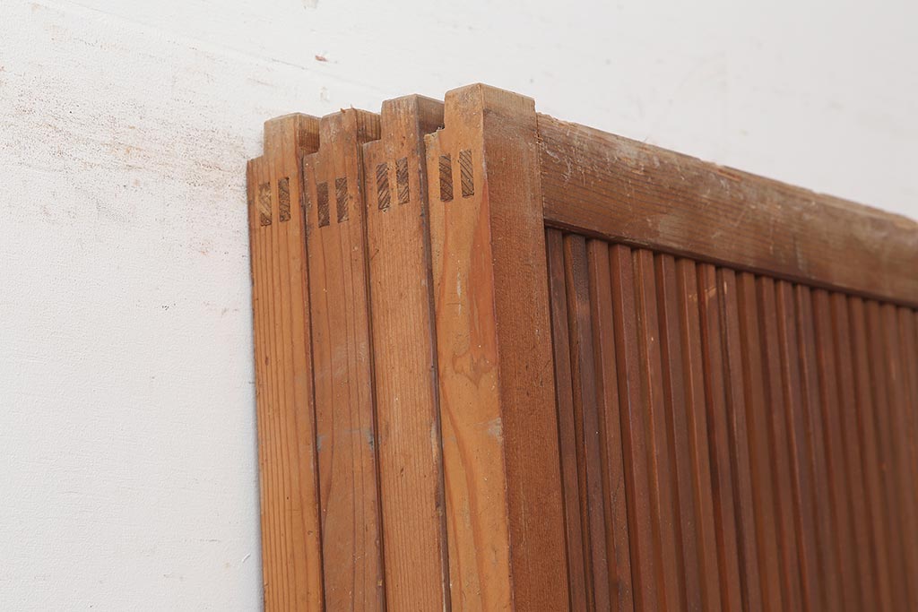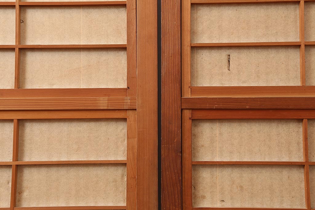 ドア・建具> 障子戸 > アンティーク建具 昭和中期 裏障子付き 赤みがかった色合いの帯格子戸4枚セット(障子戸、引き戸、建具)(R-045691)