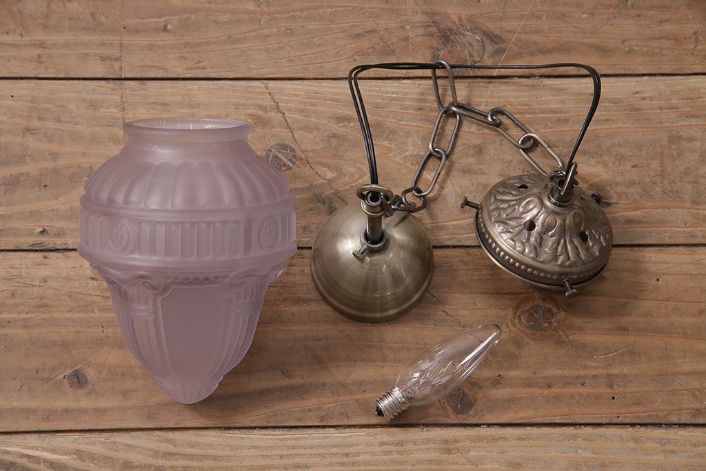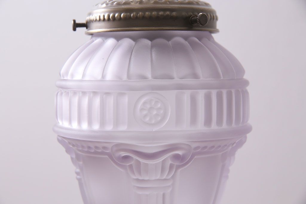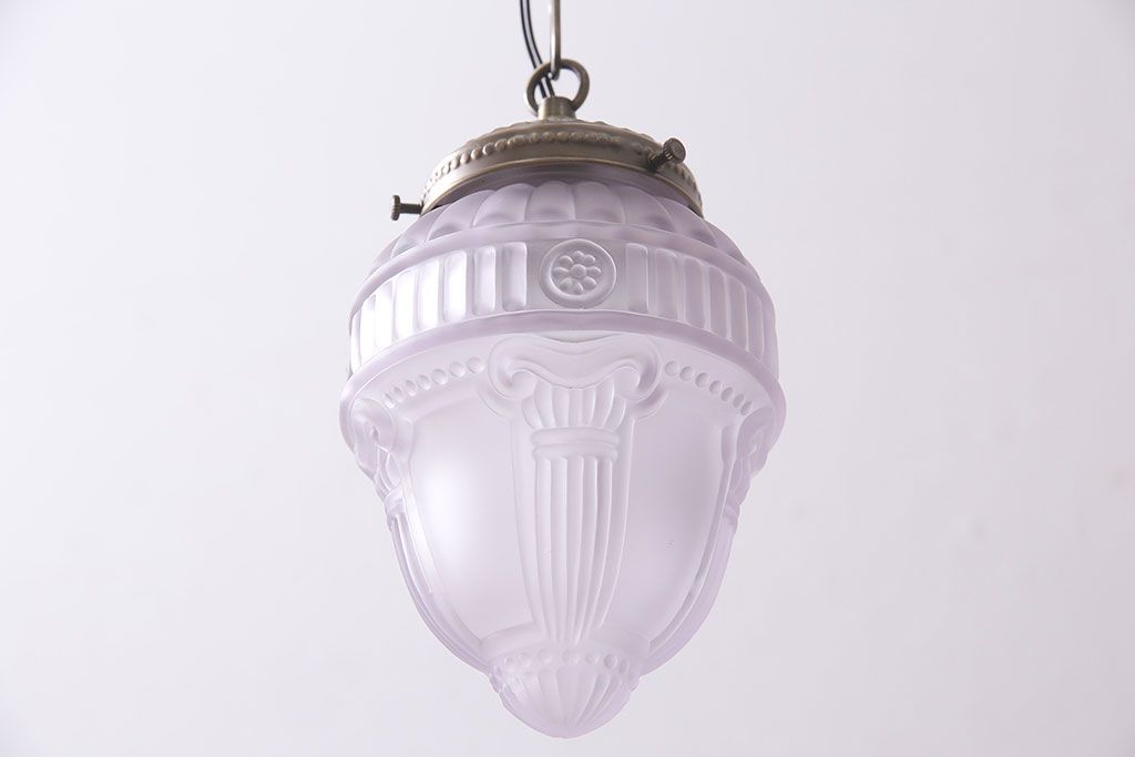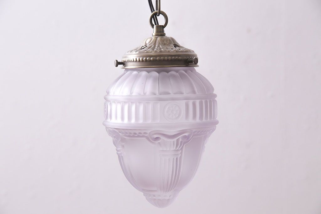 照明・ランプ> ペンダントライト > ヴィンテージ照明 イギリスビンテージ フロストガラス エンボスがおしゃれなペンダントライト(シェード、天井照明)(R-045657)