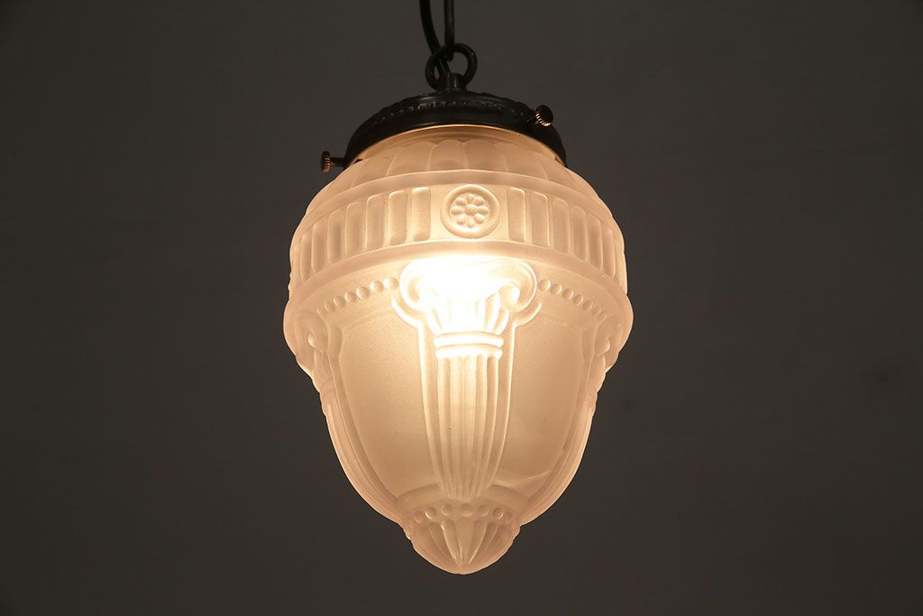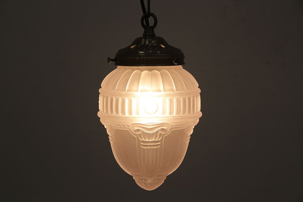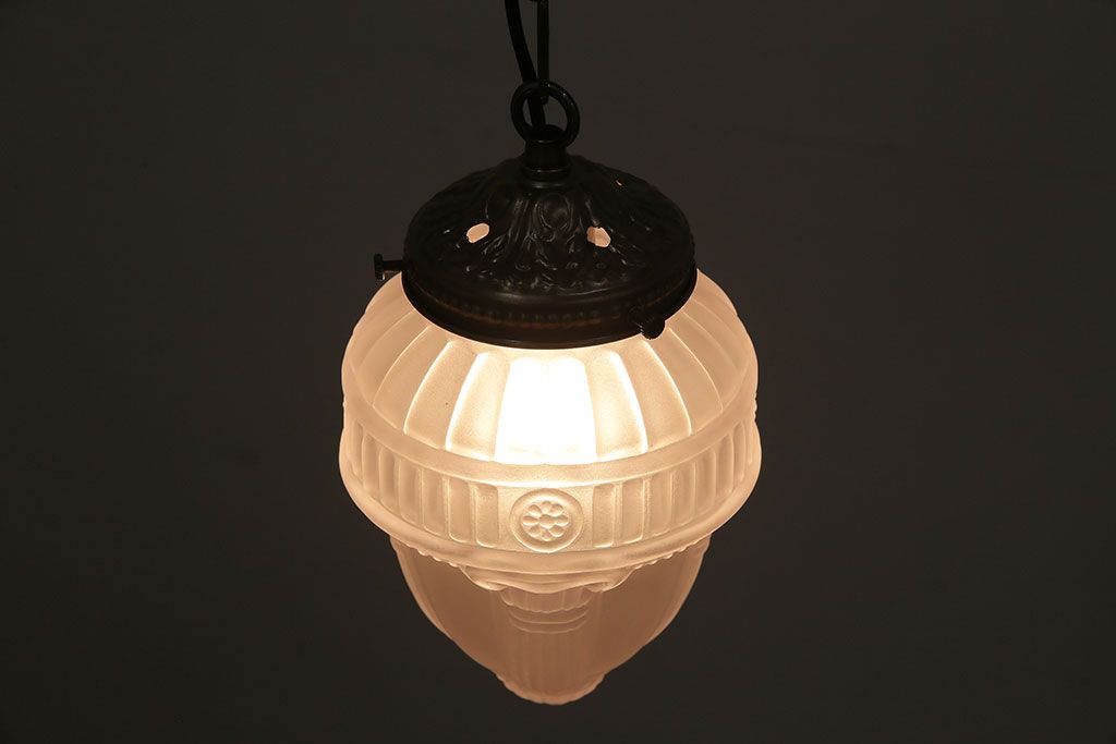 照明・ランプ > ヴィンテージ照明 イギリスビンテージ フロストガラス エンボスがおしゃれなペンダントライト(シェード、天井照明)(R-045657)
