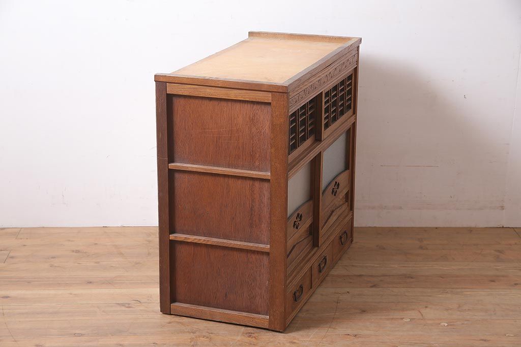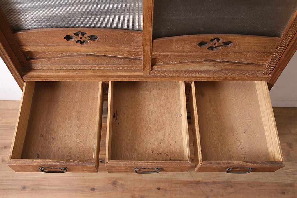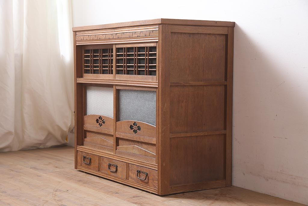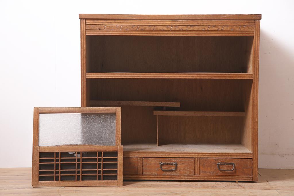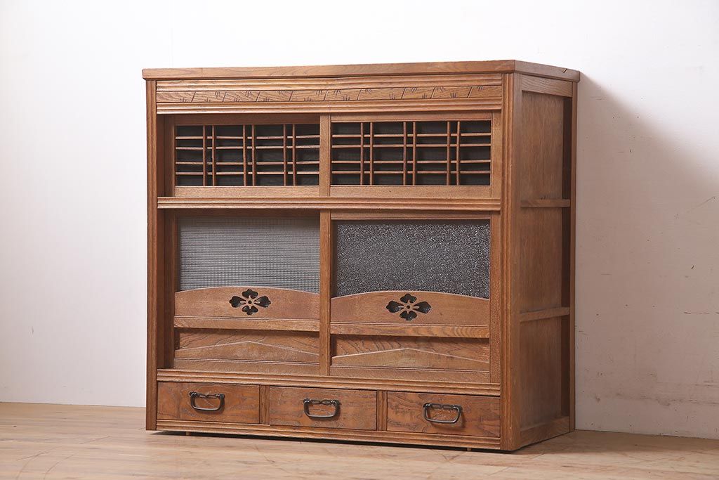 アンティーク家具 昭和初期 京都産 上品さとレトロな雰囲気を併せ持つ戸棚(キャビネット、食器棚、収納棚)(R-040786)