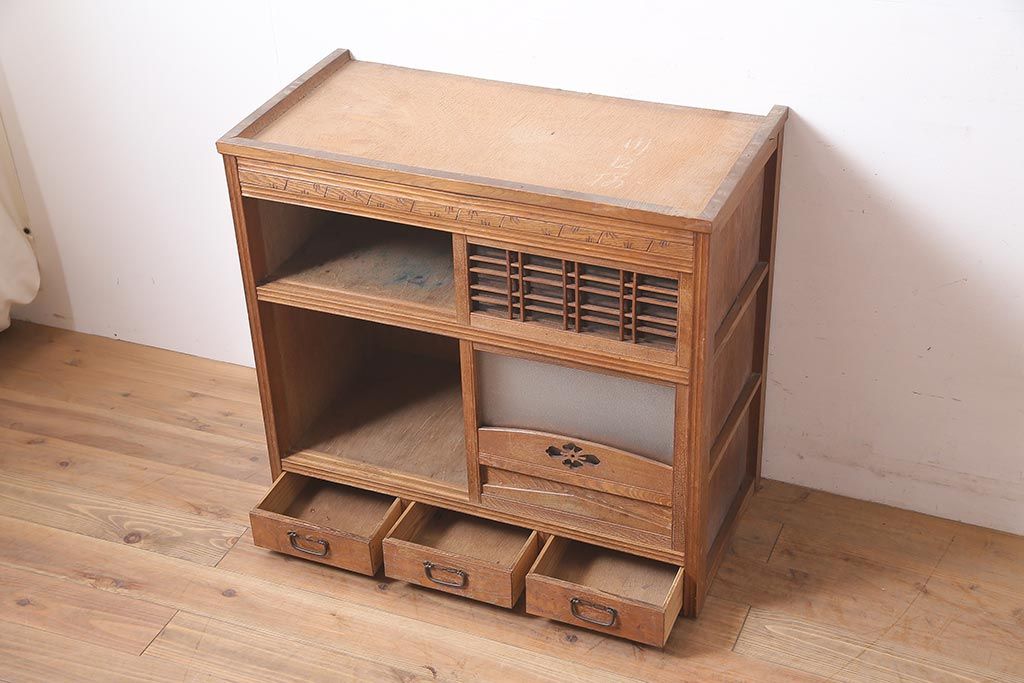 ラフジュ工房> キャビネット・戸棚> 食器棚・カップボード > アンティーク家具 昭和初期 京都産 上品さとレトロな雰囲気を併せ持つ戸棚(キャビネット、食器棚、収納棚)(R-040786)