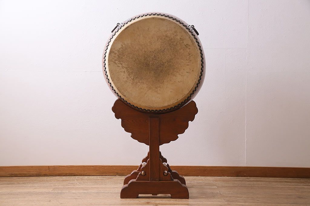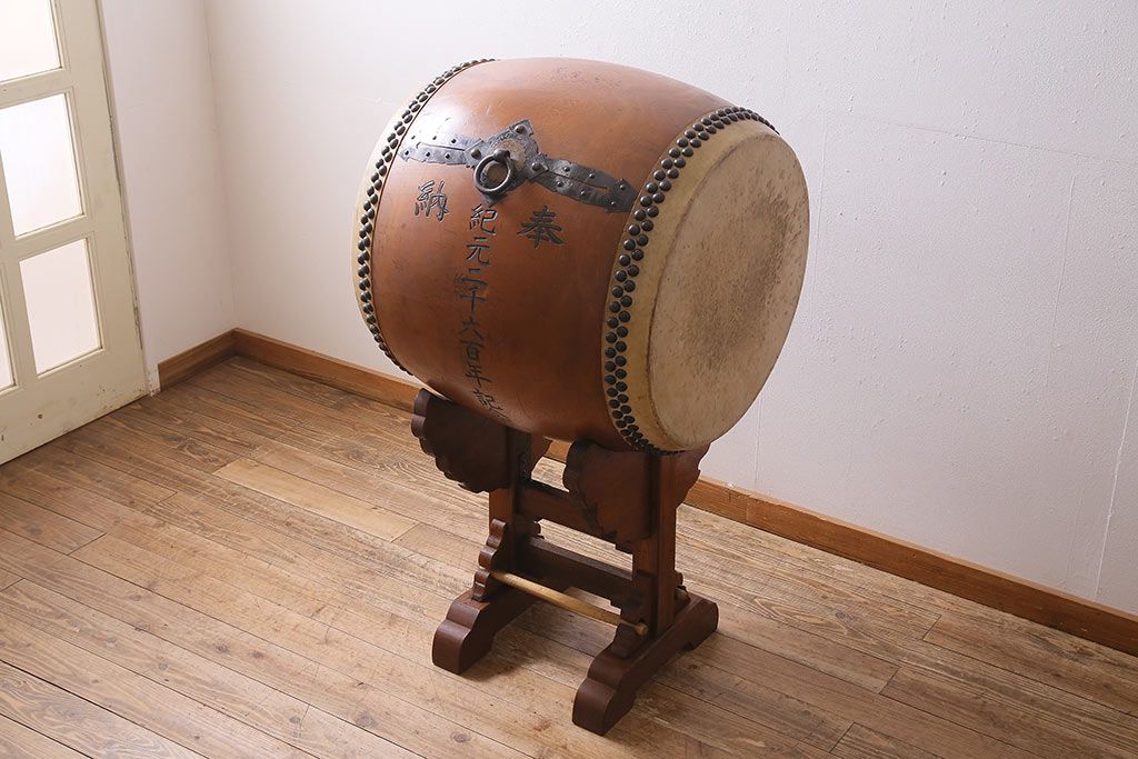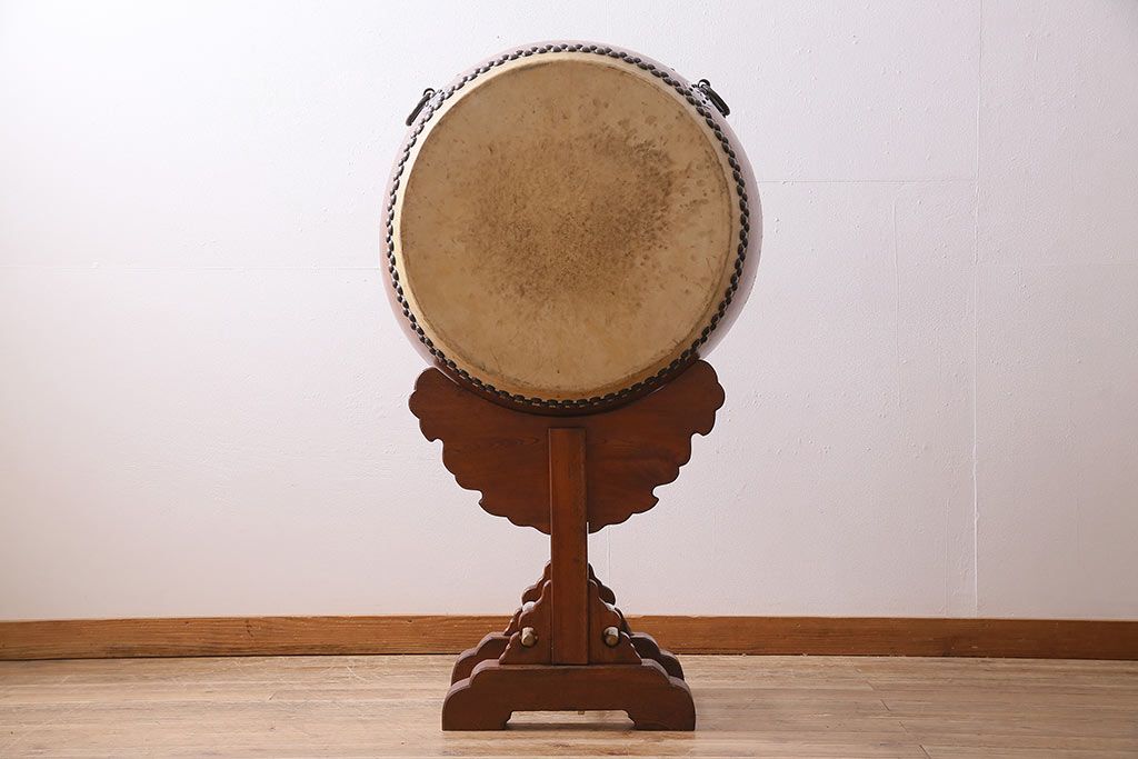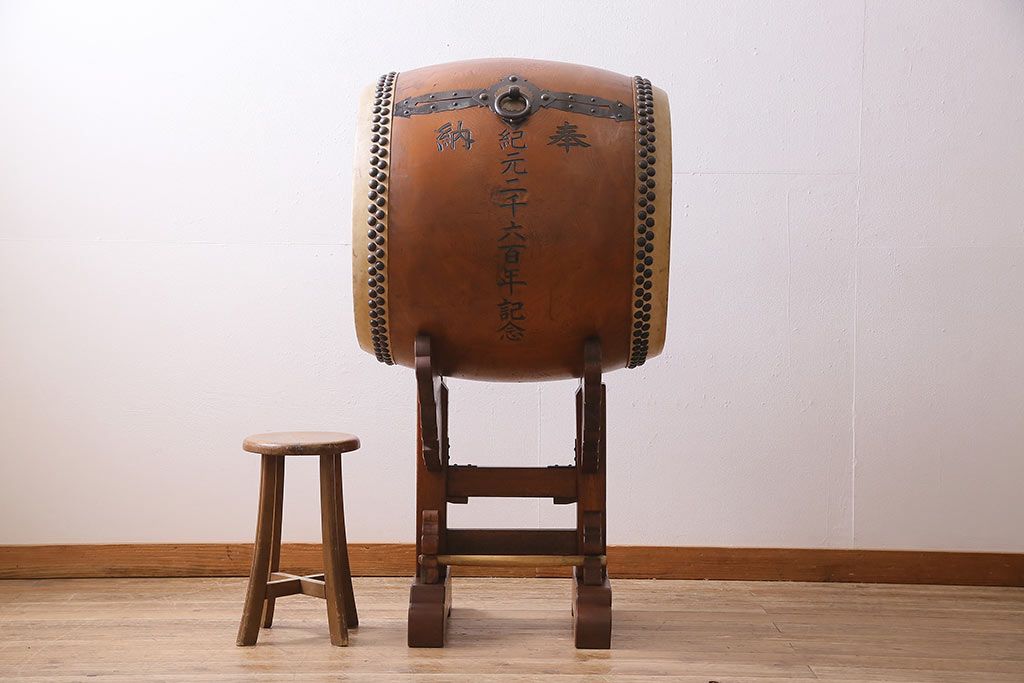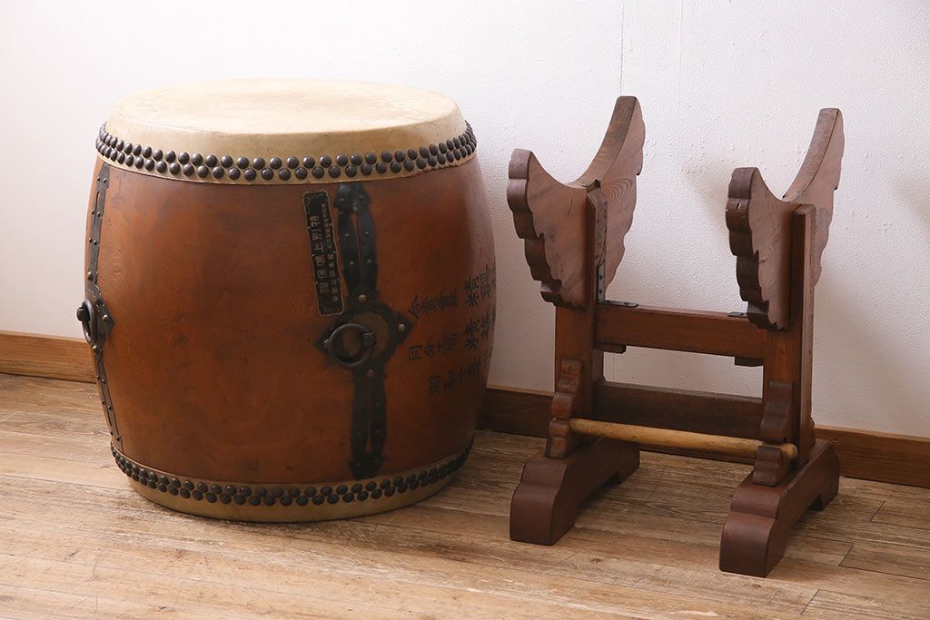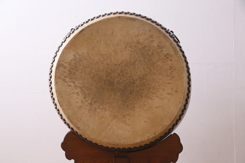 骨董・美術品 > 和楽器 昭和15年 宮本卯之助商店 特別上鳴保證 和太鼓 太鼓台・バチ付き(長胴太鼓、大太鼓、宮本卯之助製、約2尺)(R-044782)