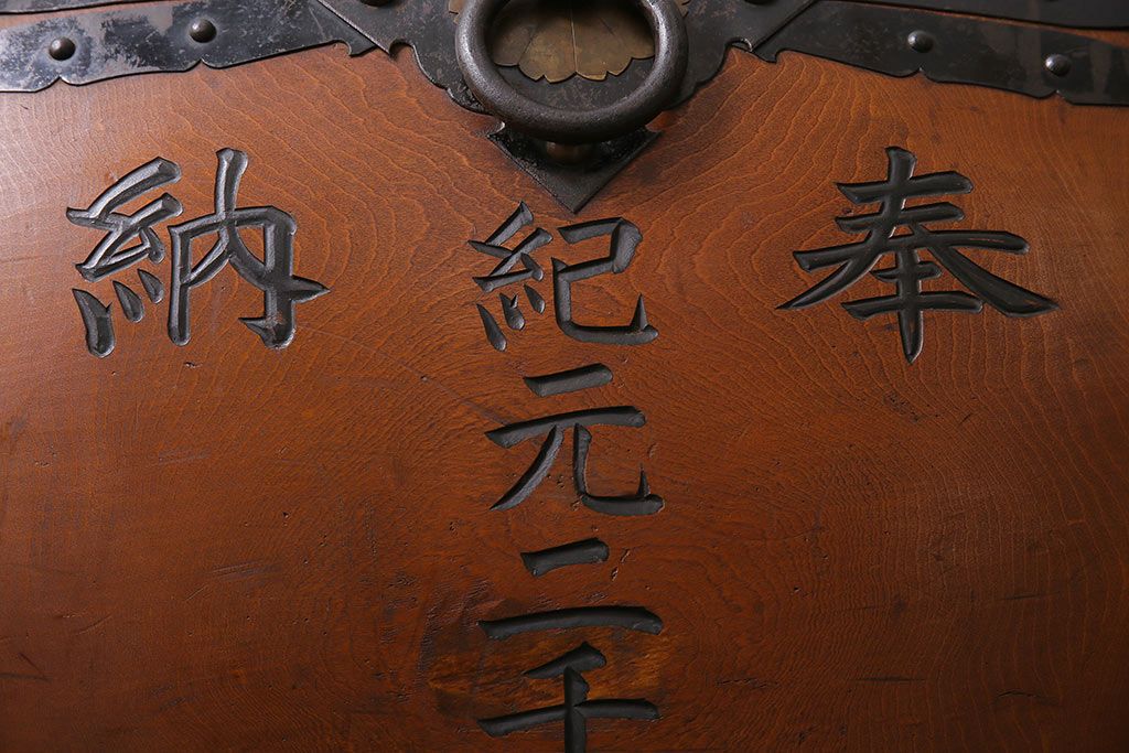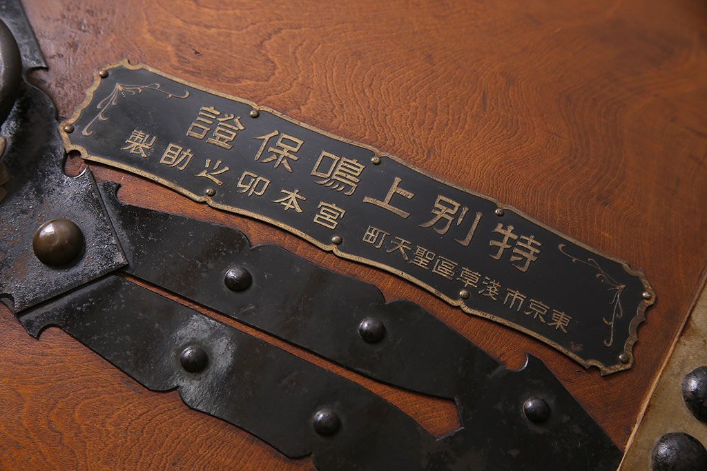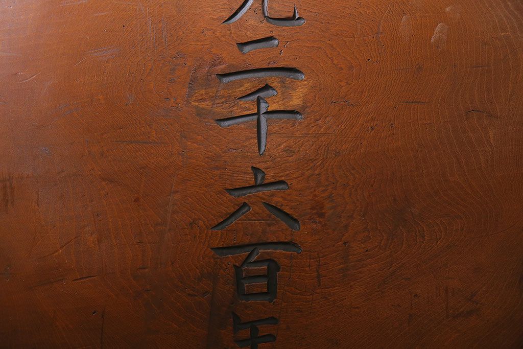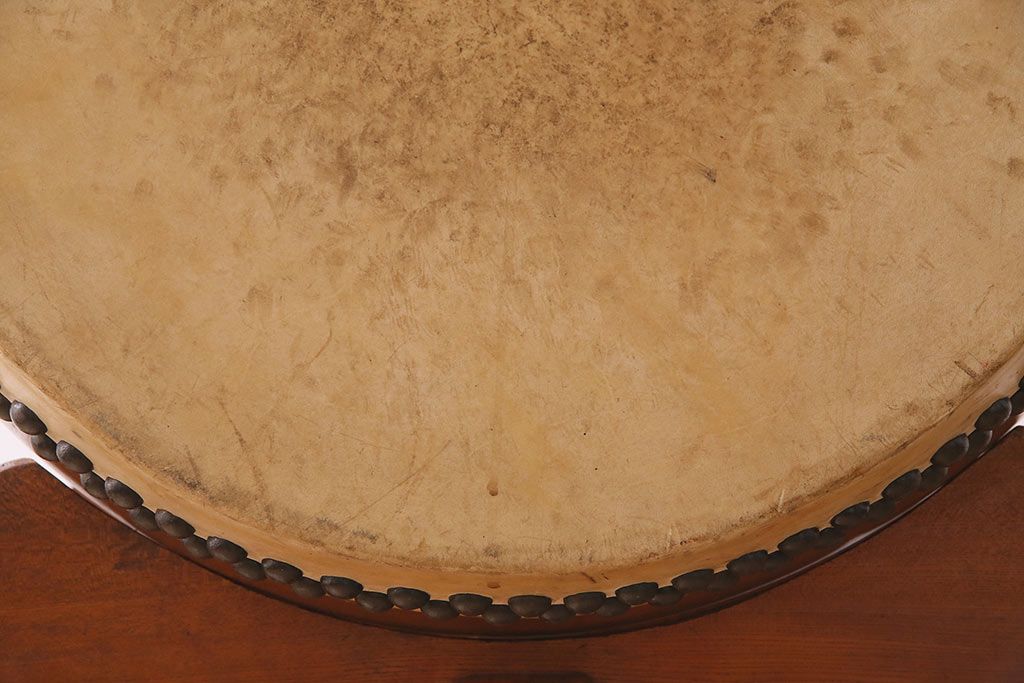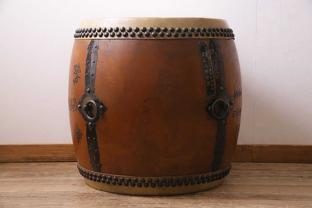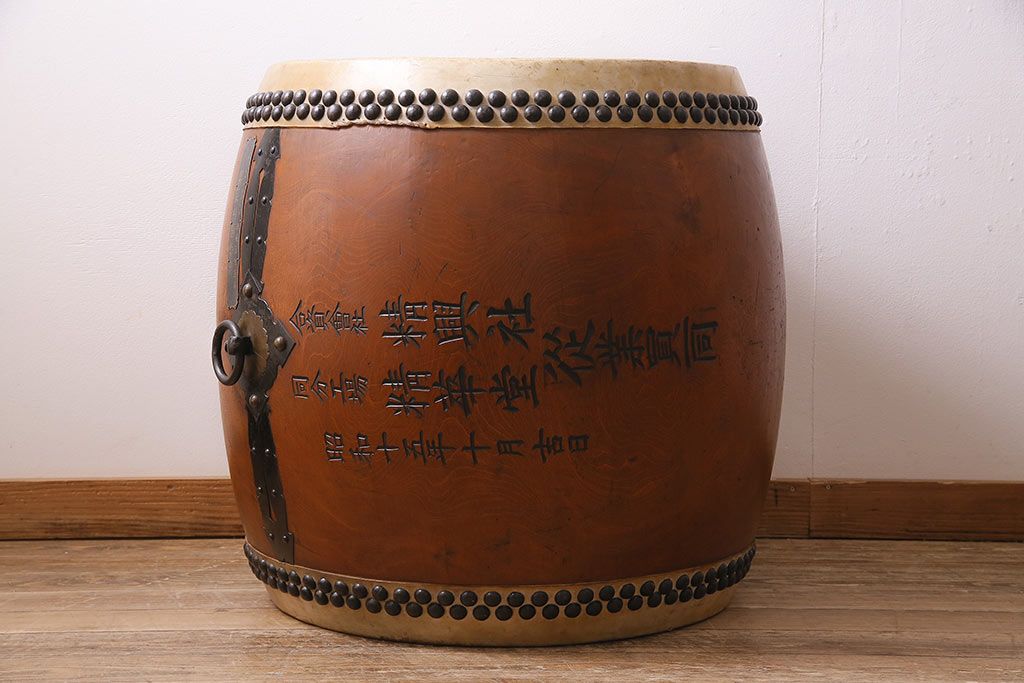 骨董・美術品 > 和楽器 昭和15年 宮本卯之助商店 特別上鳴保證 和太鼓 太鼓台・バチ付き(長胴太鼓、大太鼓、宮本卯之助製、約2尺)(R-044782)
