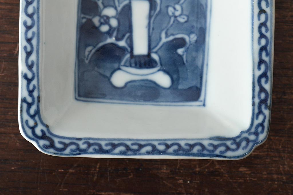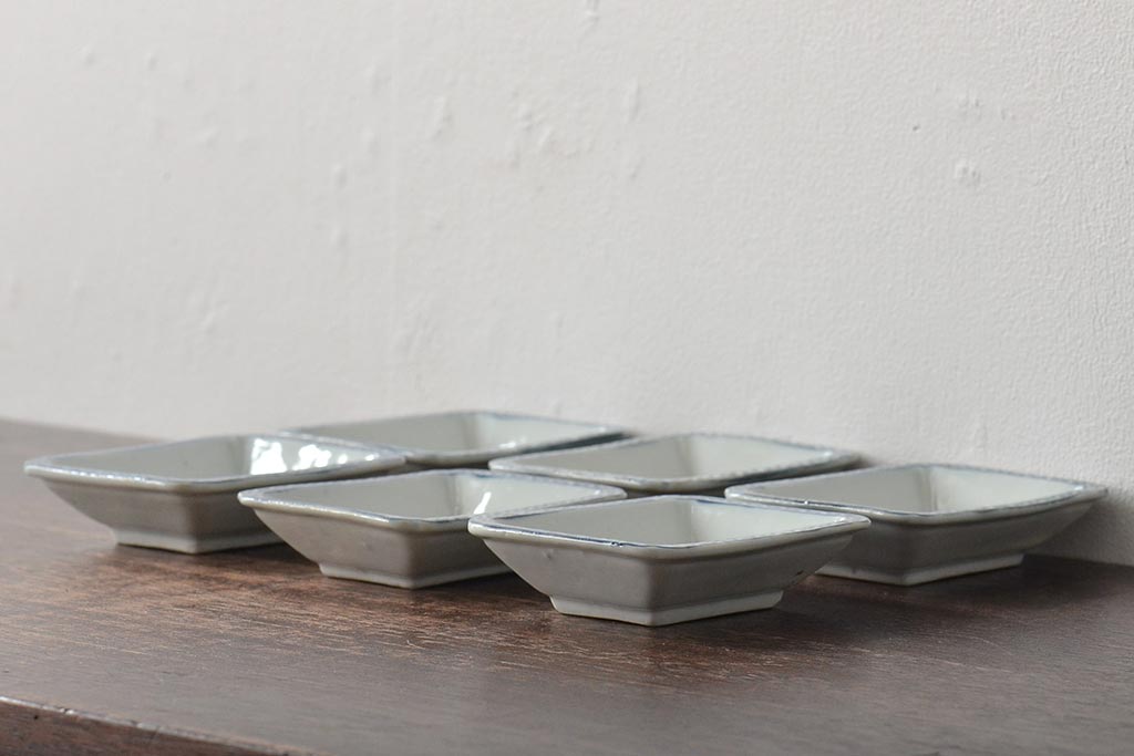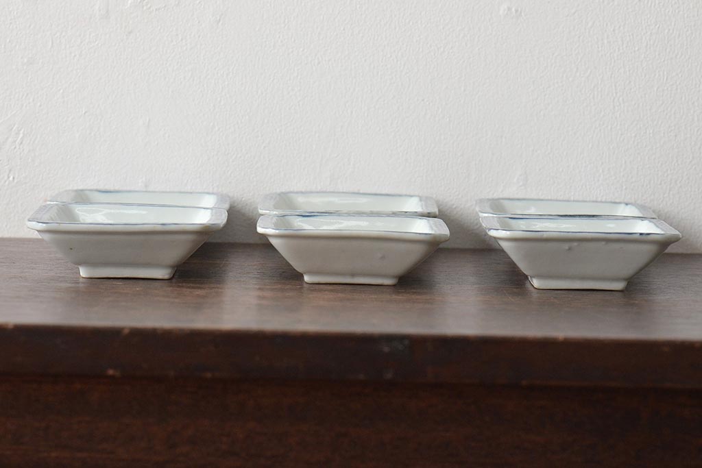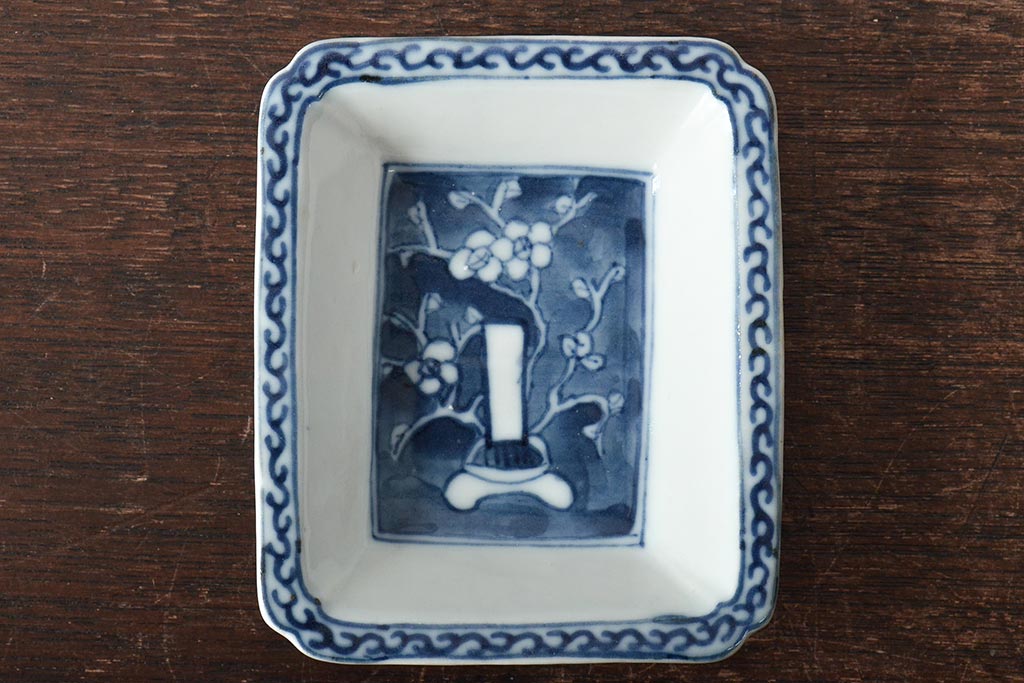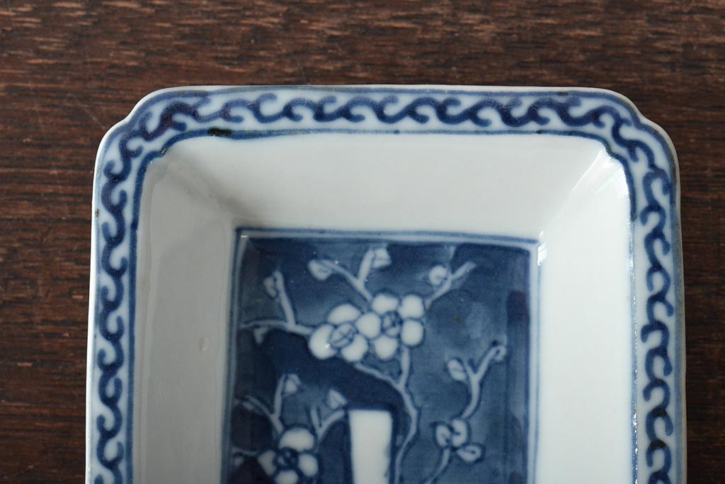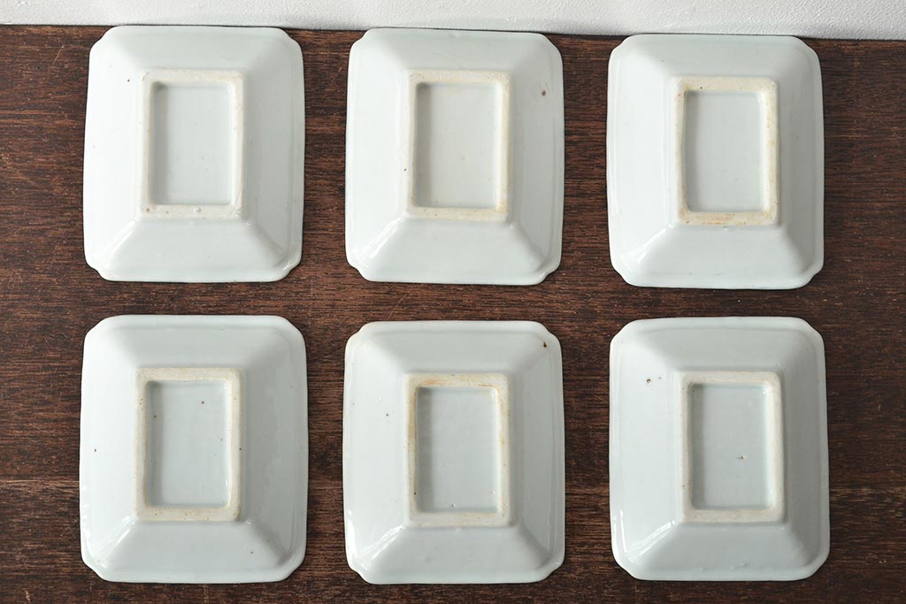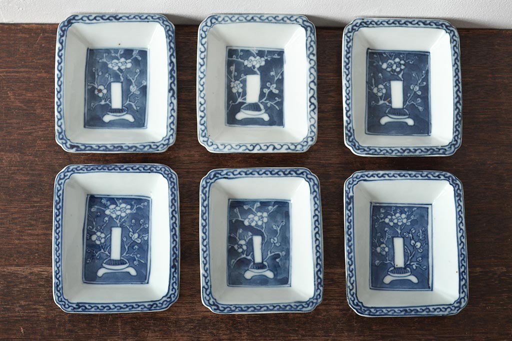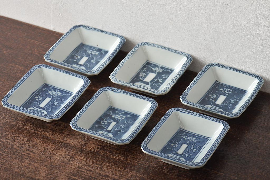 ラフジュ工房> 和食器・茶道具 > 江戸期 梅の図 和の空間を彩るアンティークの染付小皿6枚セット(角皿、和食器)(R-045677)