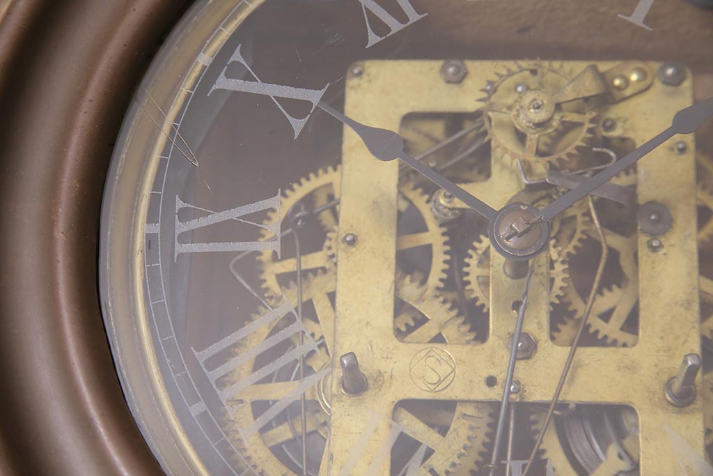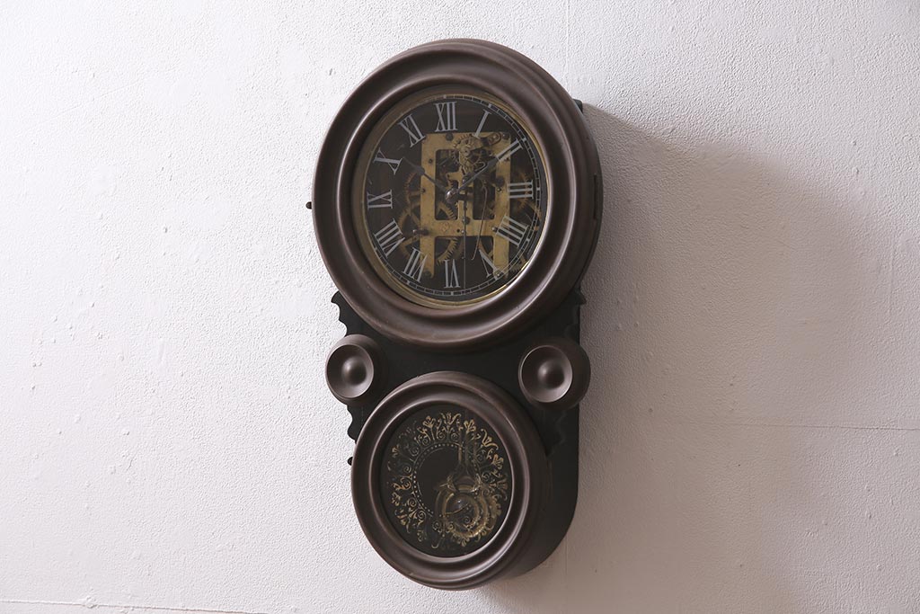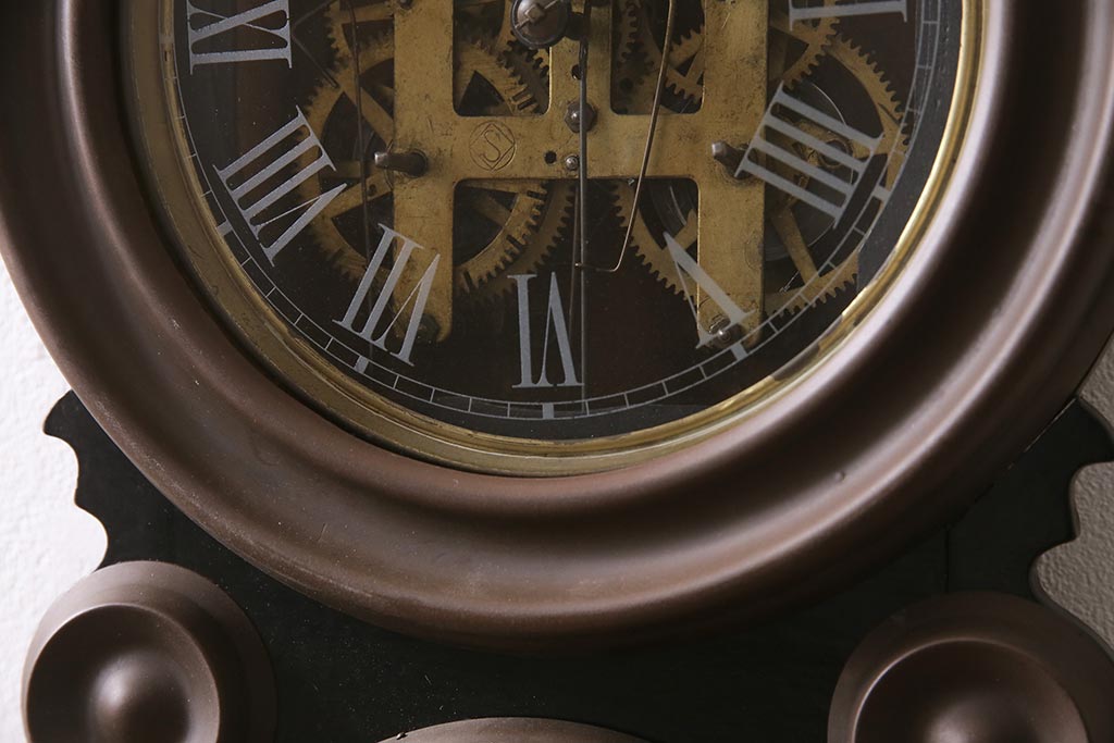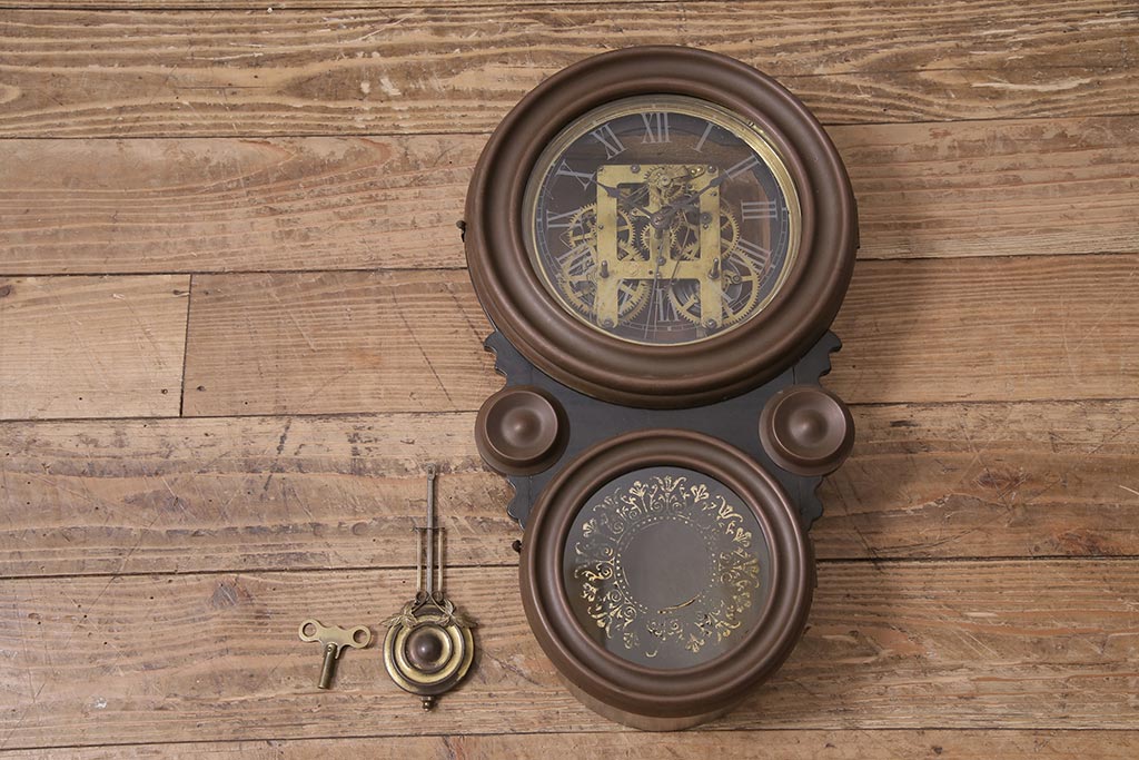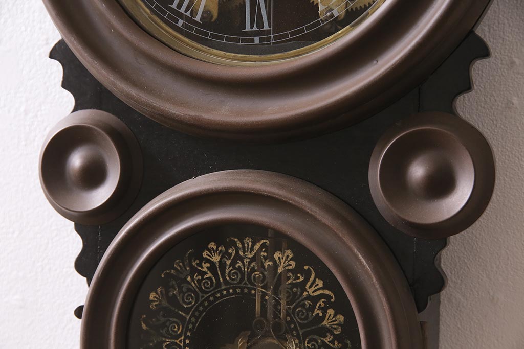 時計> 掛け時計 > アンティーク時計 明治 SEIKOSHA(精工舎、セイコー) ゼンマイ式 四ツ丸 古い質感が味わい深いだるま時計(掛時計、柱時計、振り子時計)(R-045562)