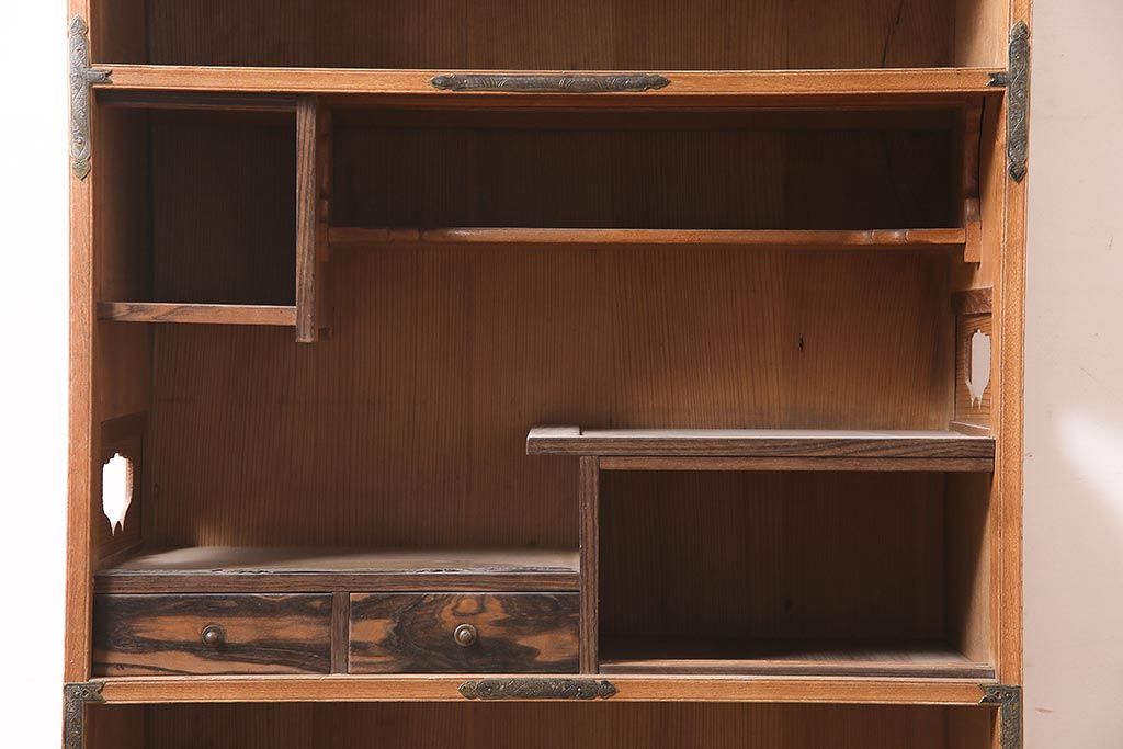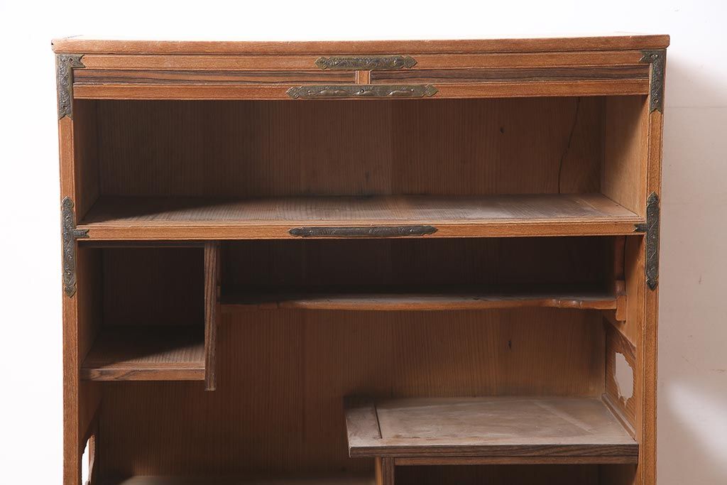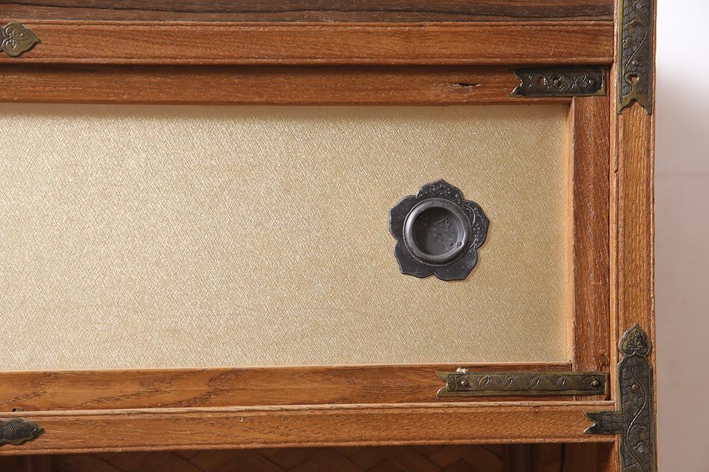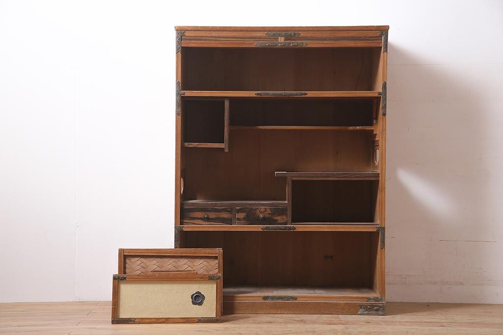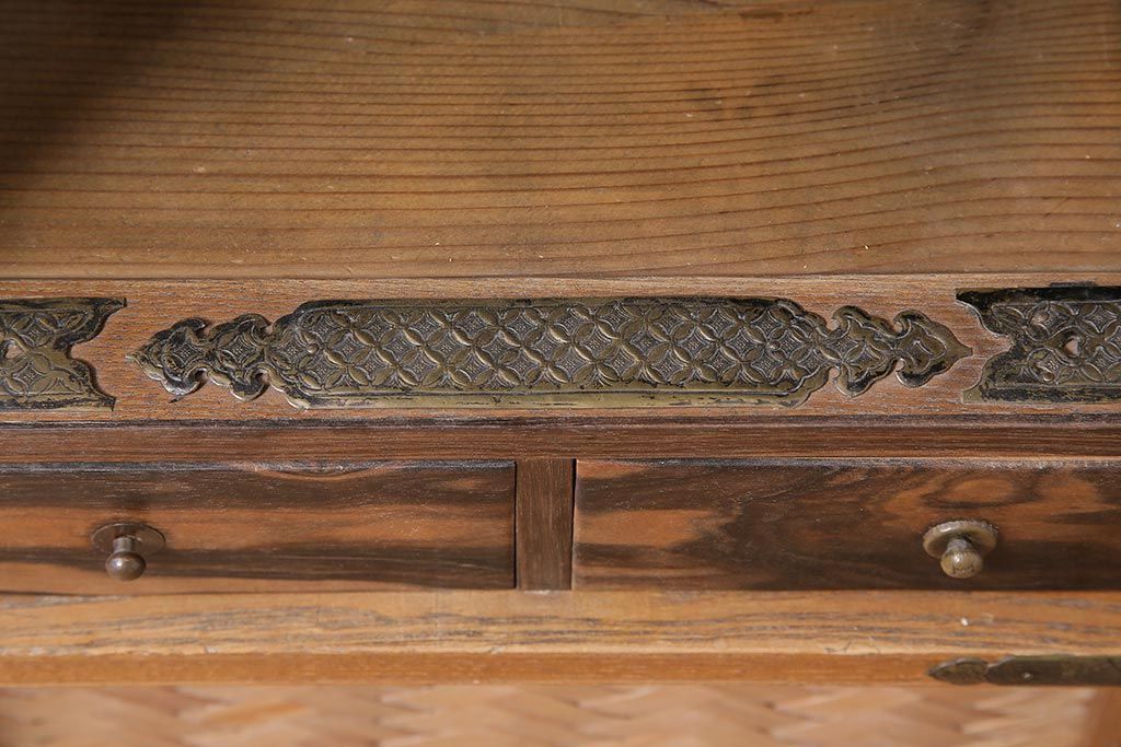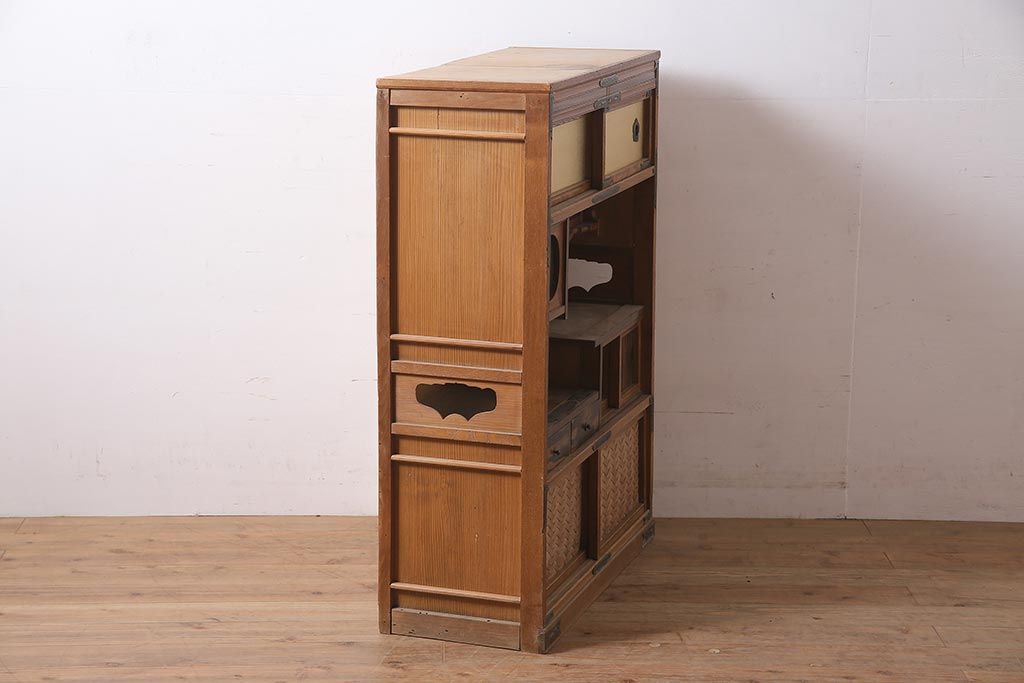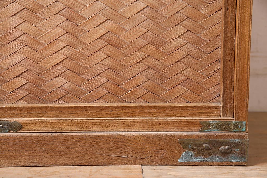 アンティーク家具 昭和中期 桑材・黒檀 網代編み 上品な和を感じさせる凝った造りの茶箪笥(飾り棚、茶棚)(R-045708)です。