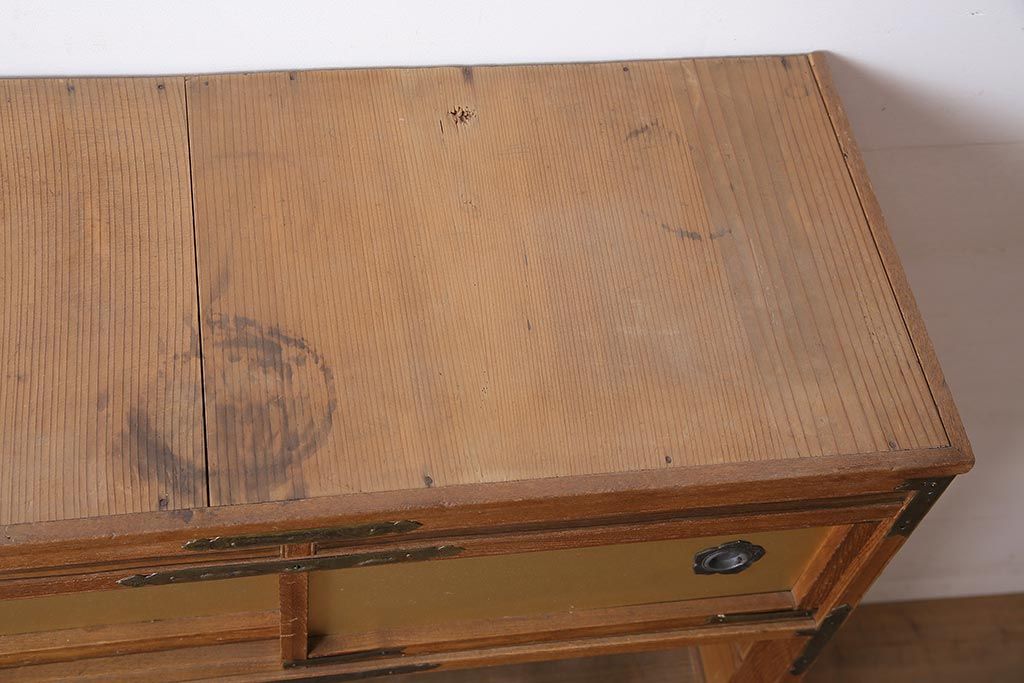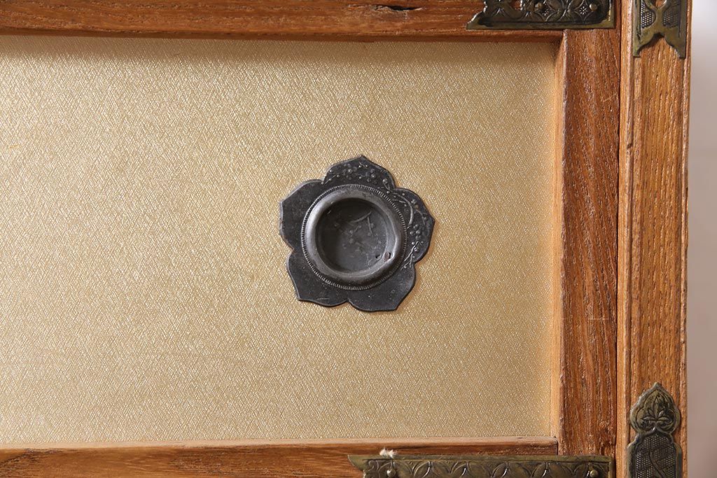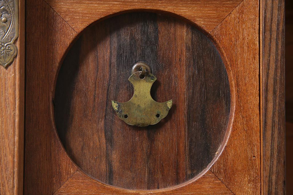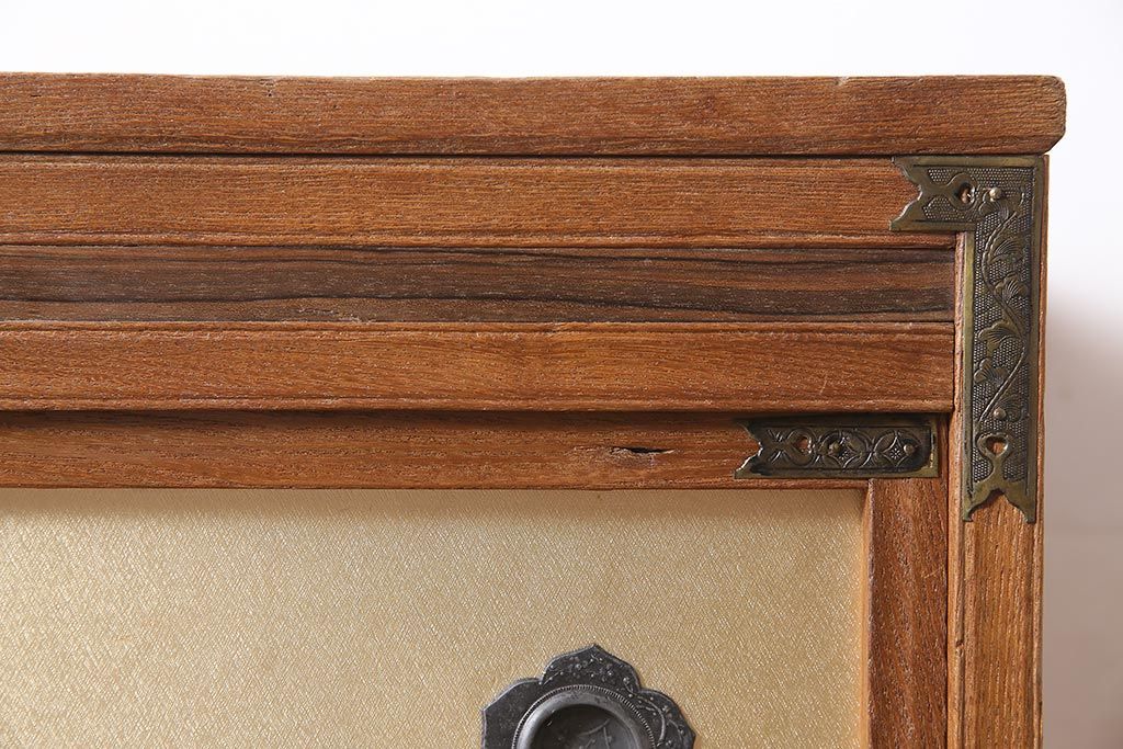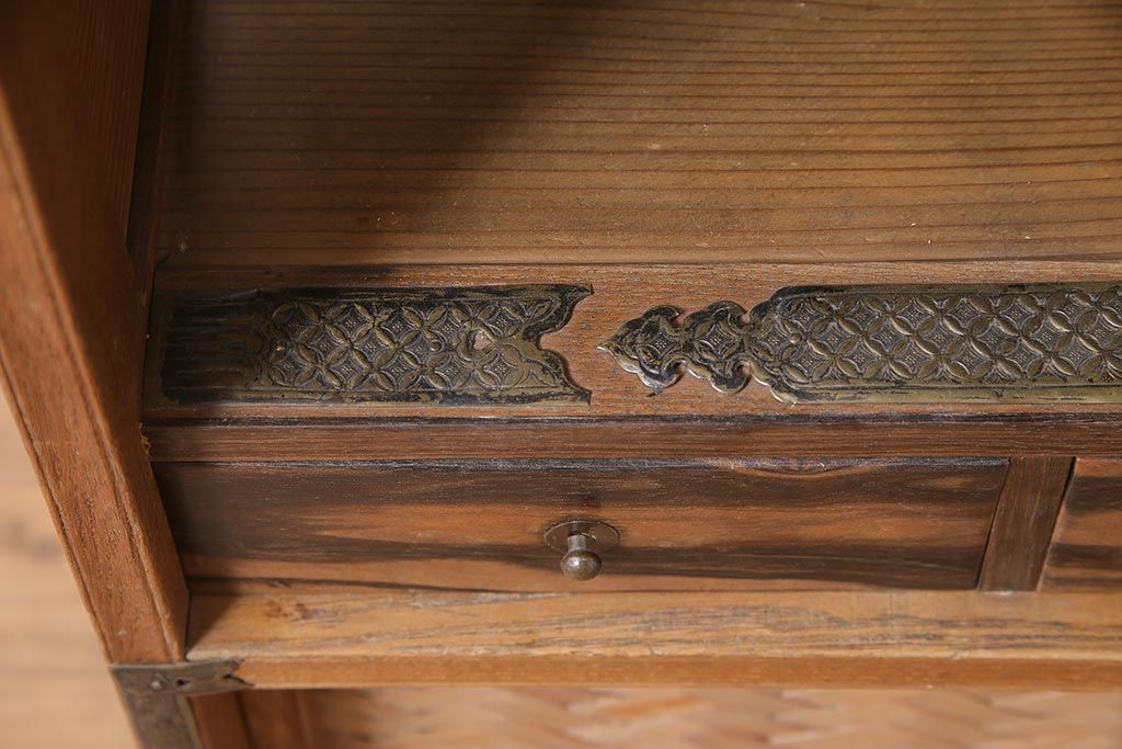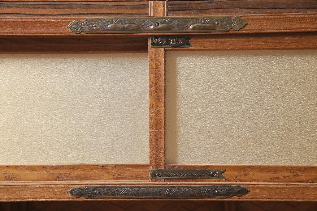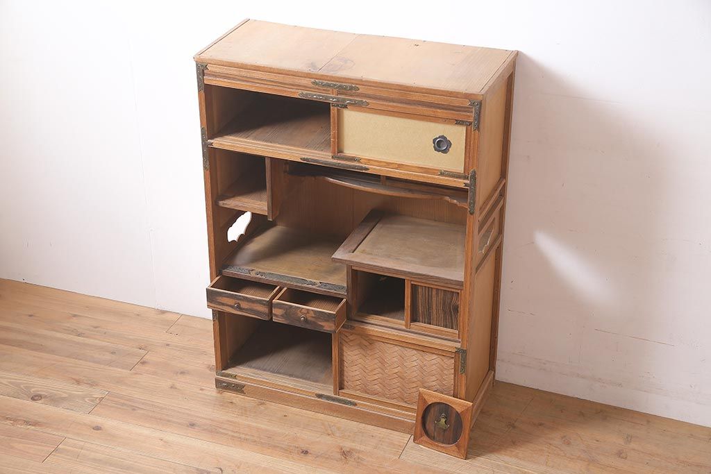 アンティーク家具 昭和中期 桑材・黒檀 網代編み 上品な和を感じさせる凝った造りの茶箪笥(飾り棚、茶棚)(R-045708)です。