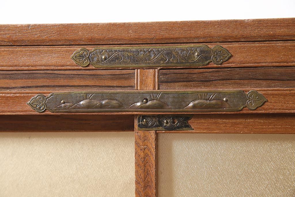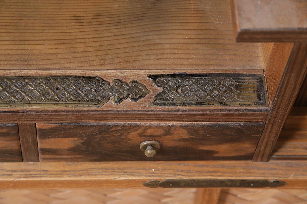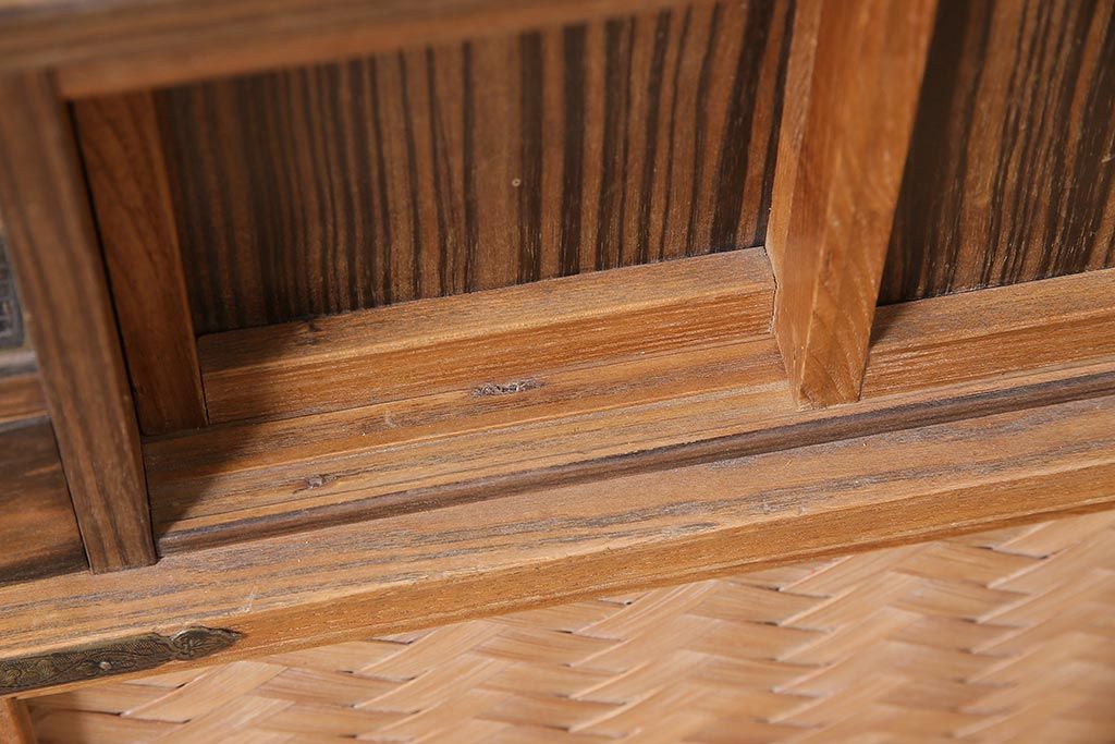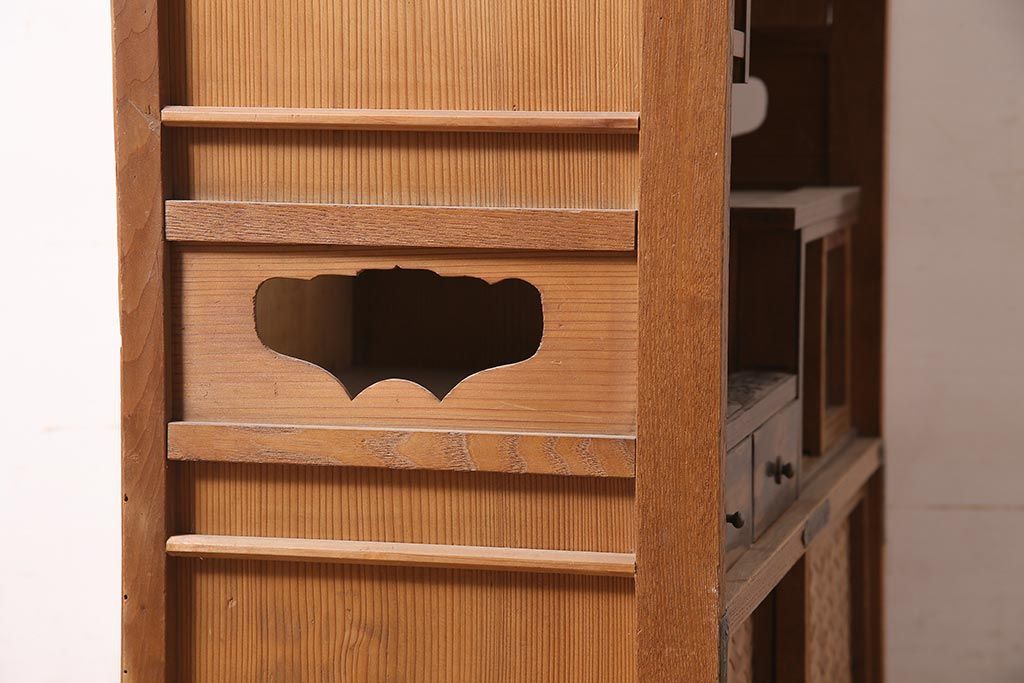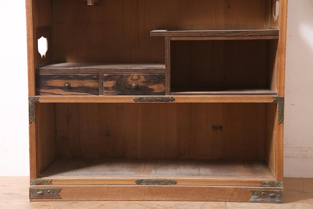アンティーク家具 昭和中期 桑材・黒檀 網代編み 上品な和を感じさせる凝った造りの茶箪笥(飾り棚、茶棚)(R-045708)