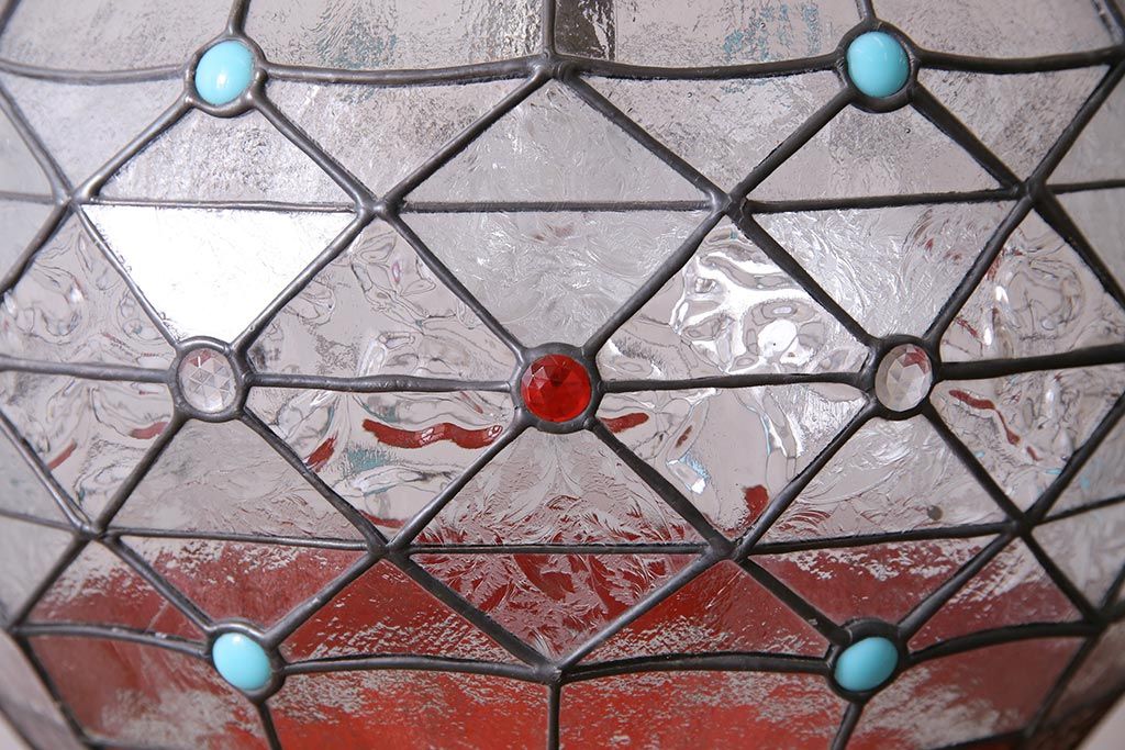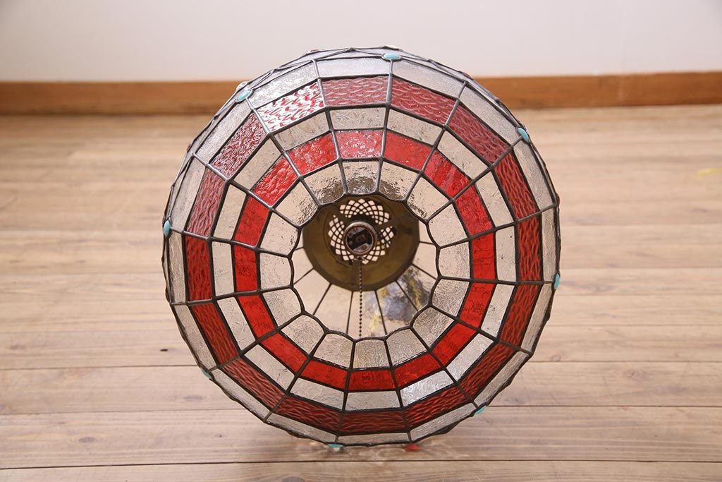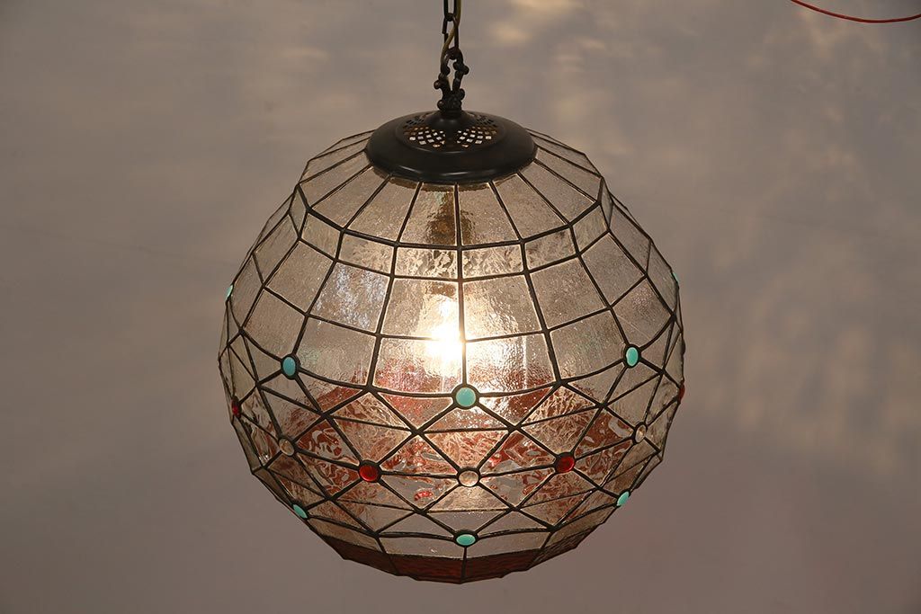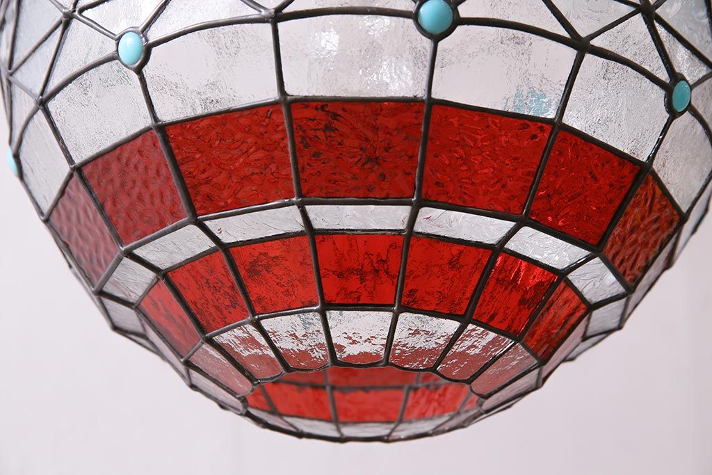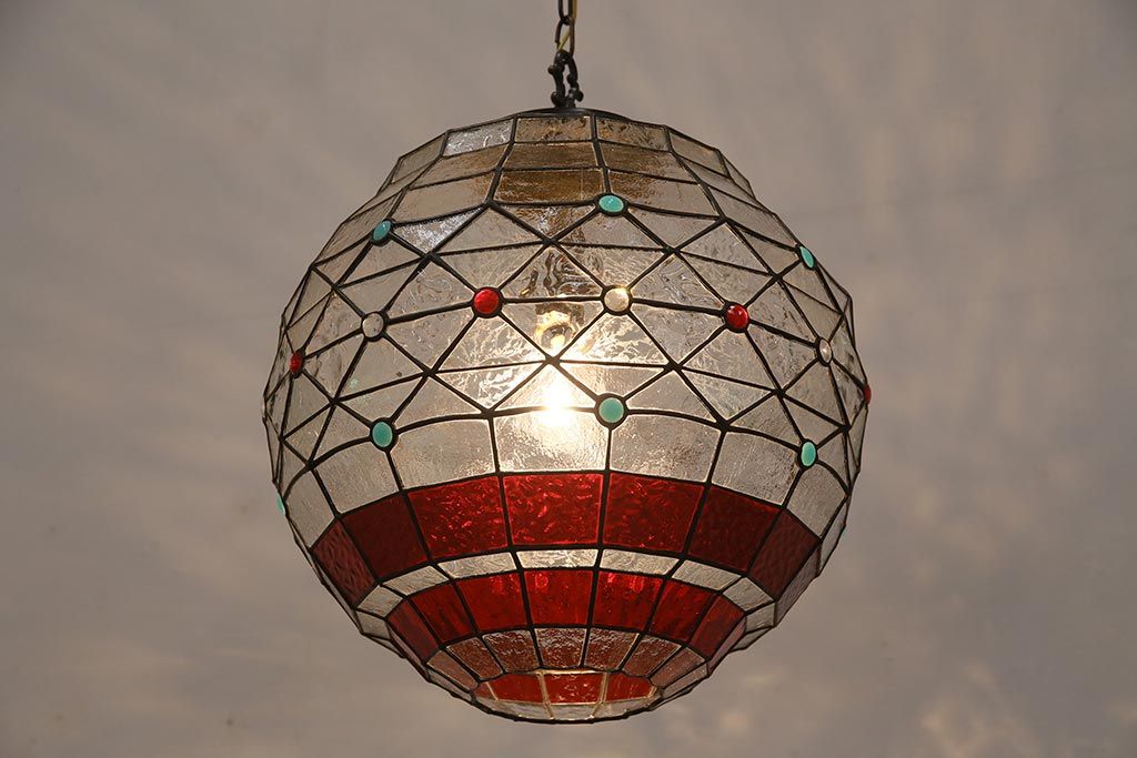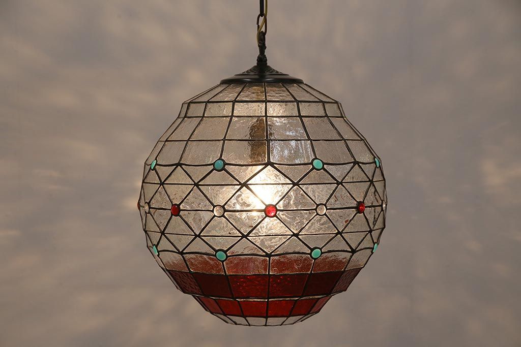照明・ランプ> ペンダントライト > ヴィンテージ照明 イギリスビンテージ 空間をおしゃれに彩るステンドグラスのペンダントライト(吊り下げ照明、天井照明)(R-045331)