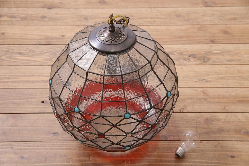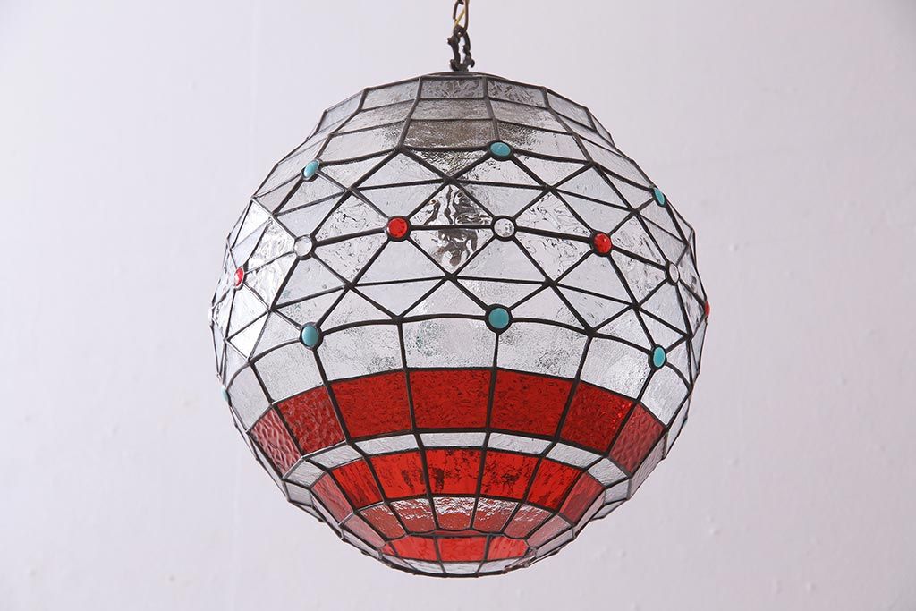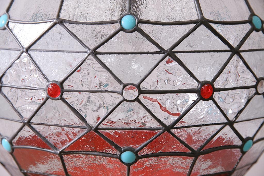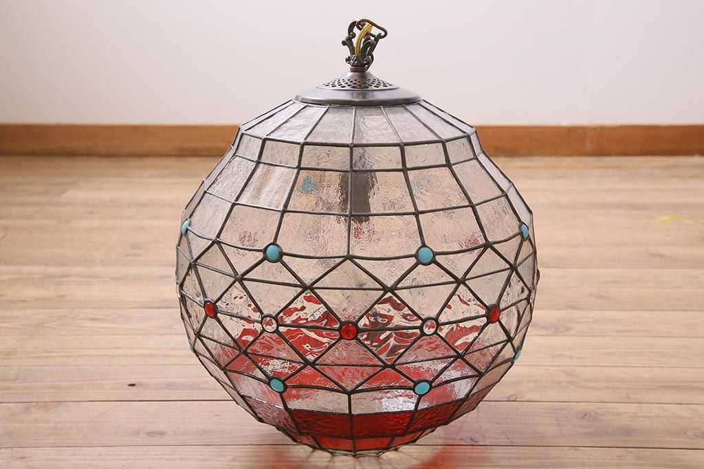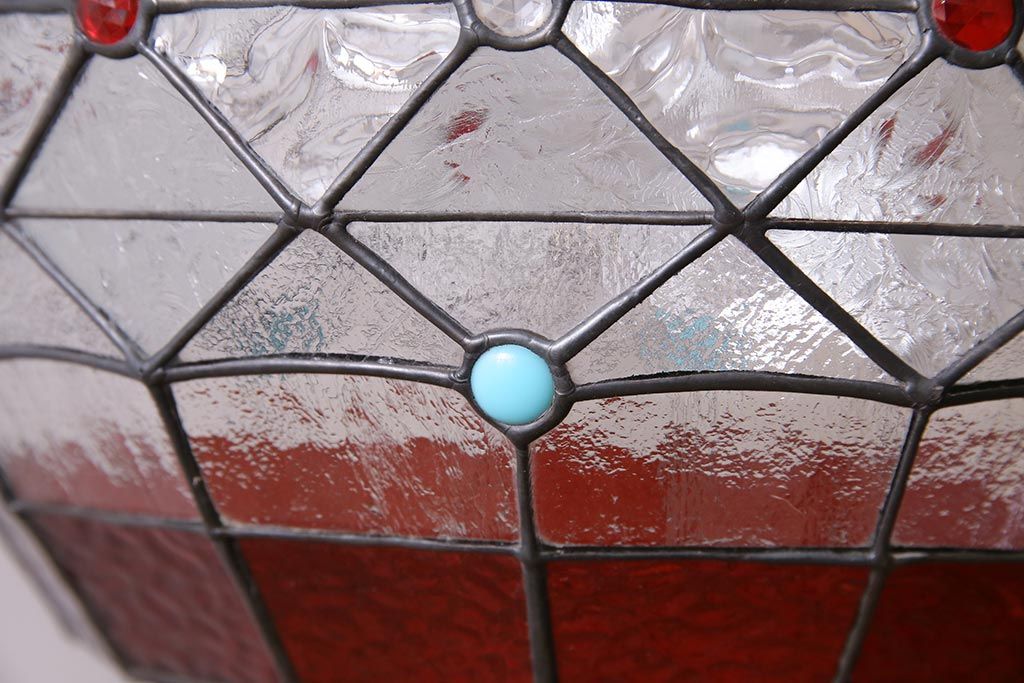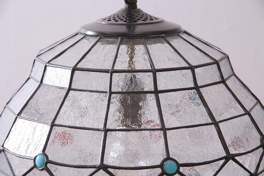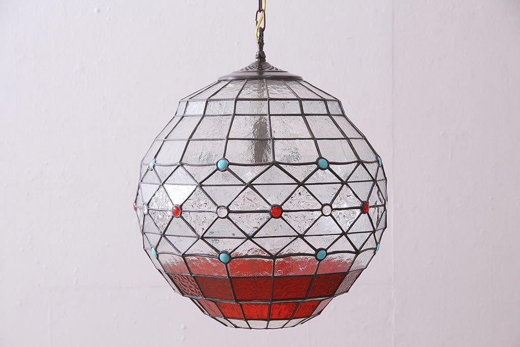 照明・ランプ> ペンダントライト > ヴィンテージ照明 イギリスビンテージ 空間をおしゃれに彩るステンドグラスのペンダントライト(吊り下げ照明、天井照明)(R-045331)