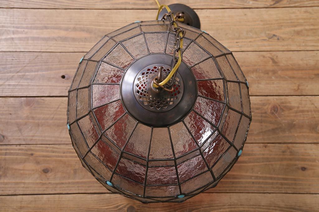 ステンドグラス > ヴィンテージ照明 イギリスビンテージ 空間をおしゃれに彩るステンドグラスのペンダントライト(吊り下げ照明、天井照明)(R-045331)