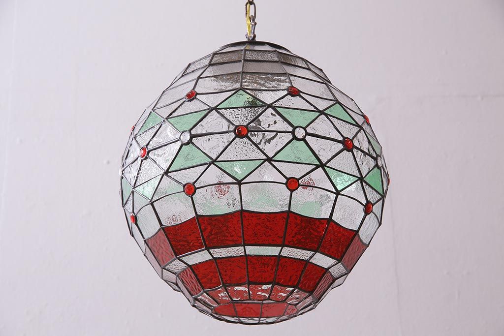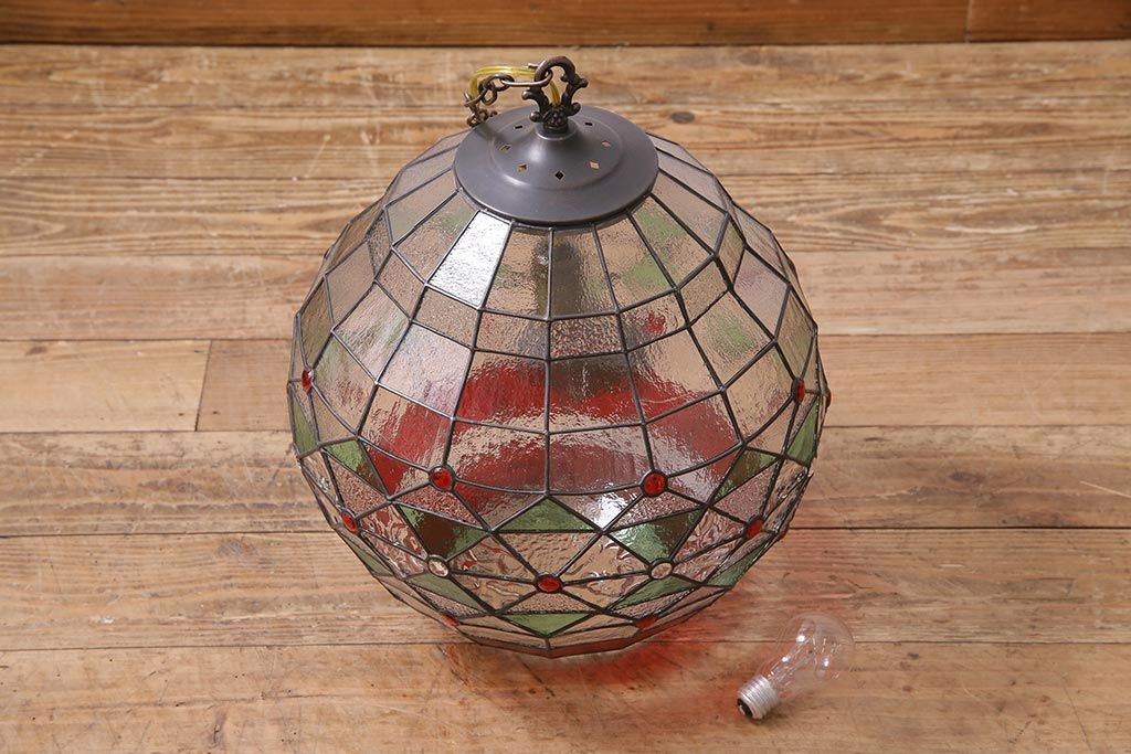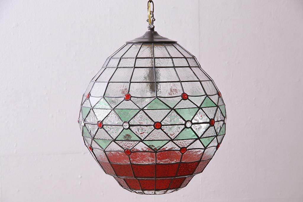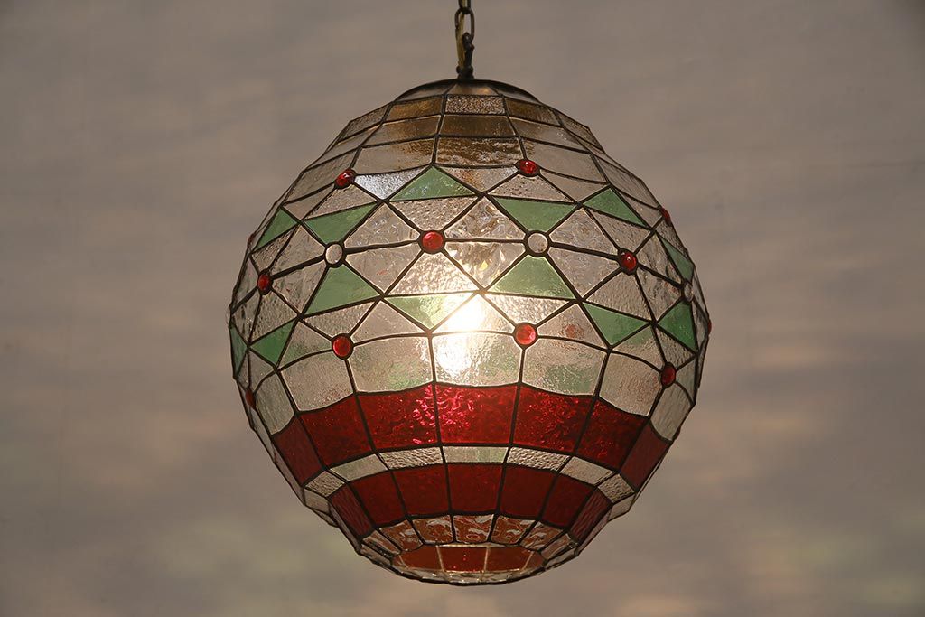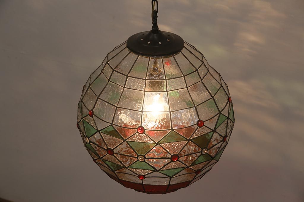 ヴィンテージ照明 イギリスビンテージ 空間をおしゃれに彩るステンドグラスのペンダントライト(吊り下げ照明、天井照明)(R-045332)