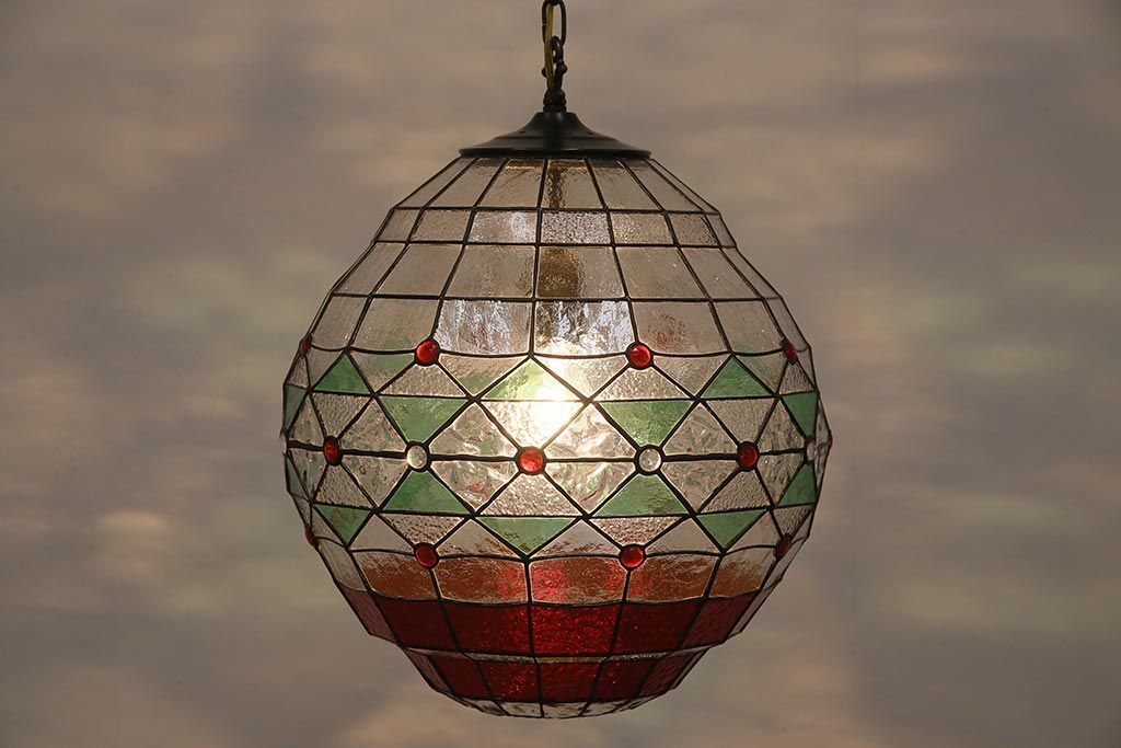 ステンドグラス > ヴィンテージ照明 イギリスビンテージ 空間をおしゃれに彩るステンドグラスのペンダントライト(吊り下げ照明、天井照明)(R-045332)