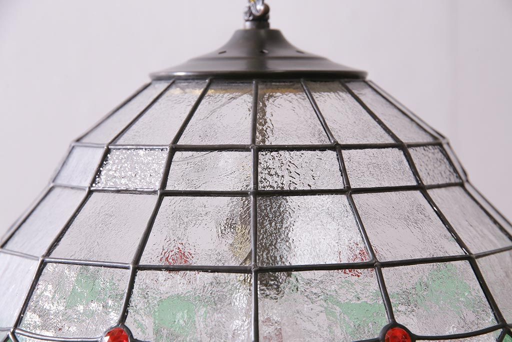 照明・ランプ> ペンダントライト > ヴィンテージ照明 イギリスビンテージ 空間をおしゃれに彩るステンドグラスのペンダントライト(吊り下げ照明、天井照明)(R-045332)