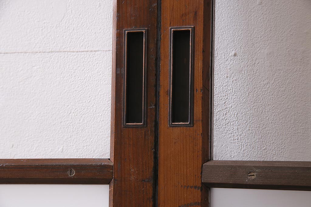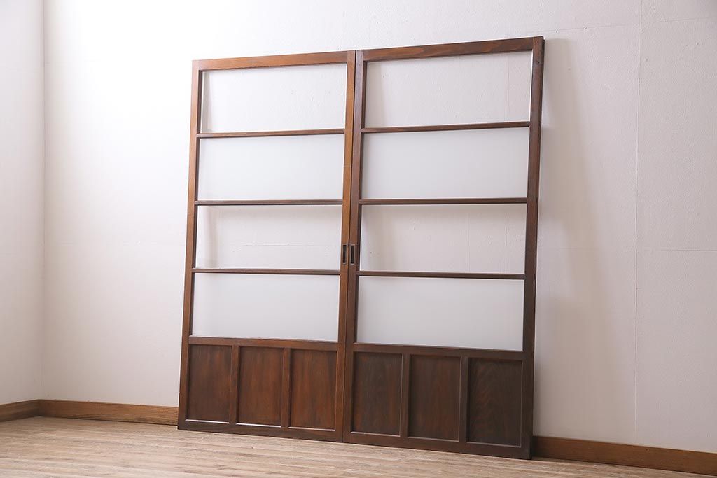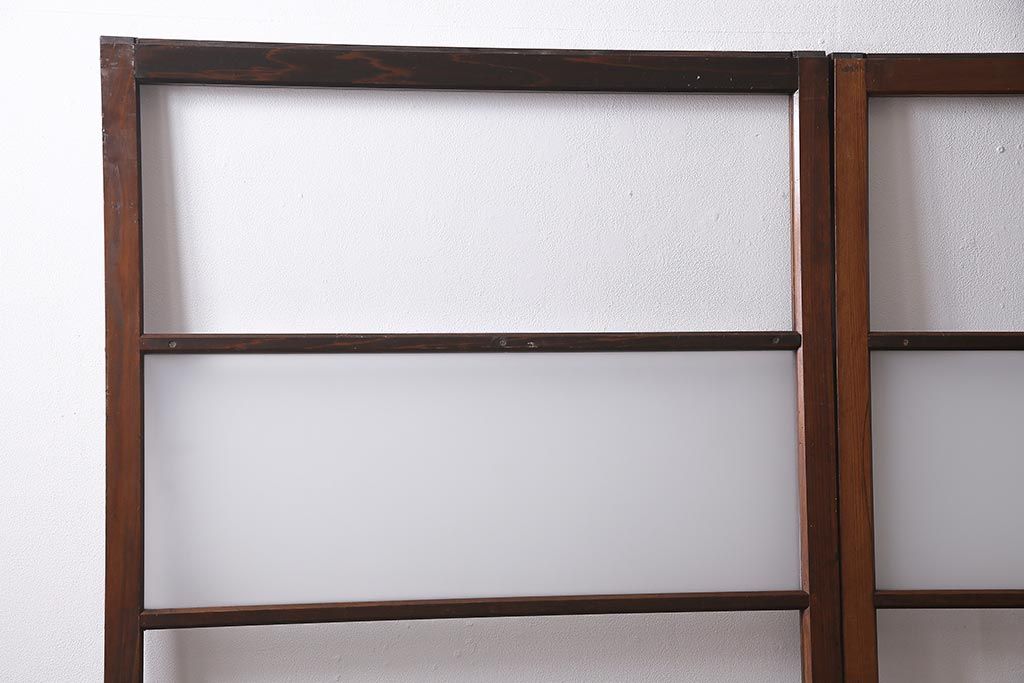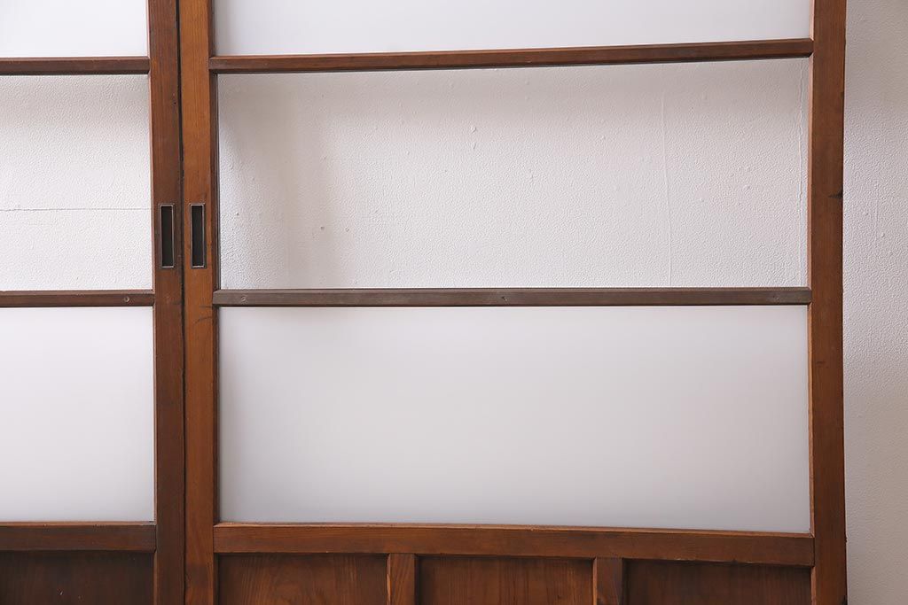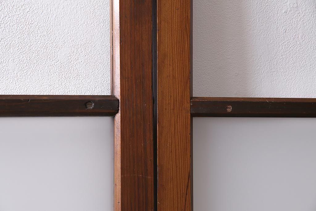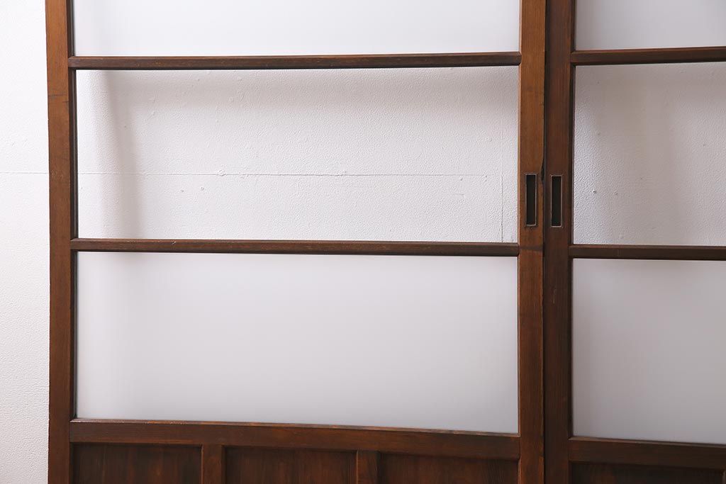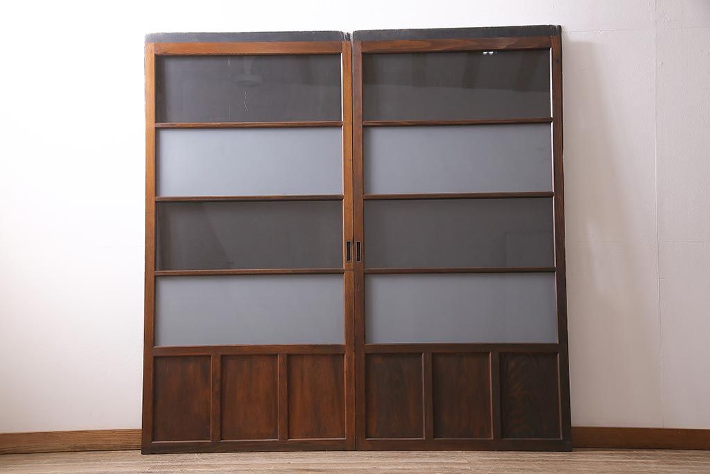 ドア・建具> ガラス戸 > アンティーク建具 昭和中期 すり・クリアガラス 昔懐かしい雰囲気漂うガラス戸2枚セット(引き戸、建具)(R-045634)