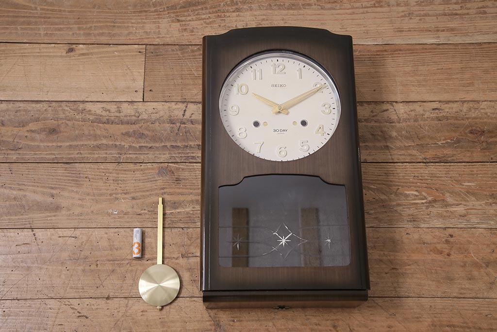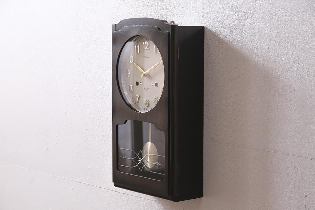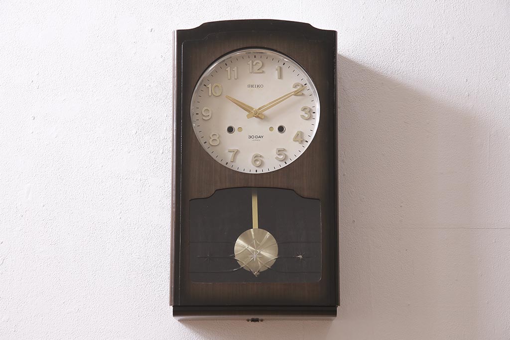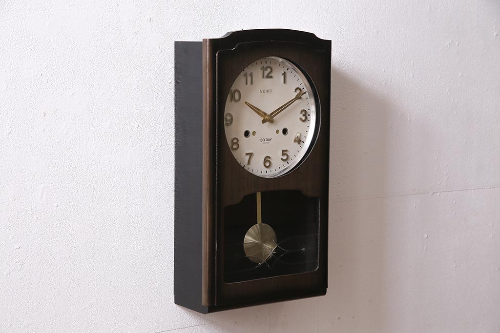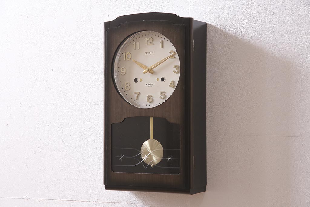 時計> 掛け時計 > アンティーク時計 昭和レトロ SEIKO(セイコー) 30DAY 電池式 金色の文字がお洒落な柱時計(掛け時計)(R-045565)