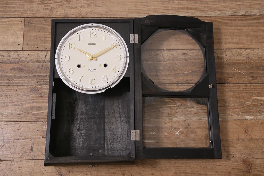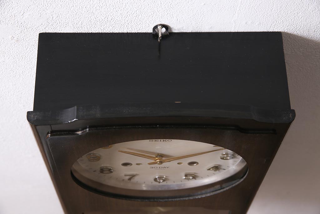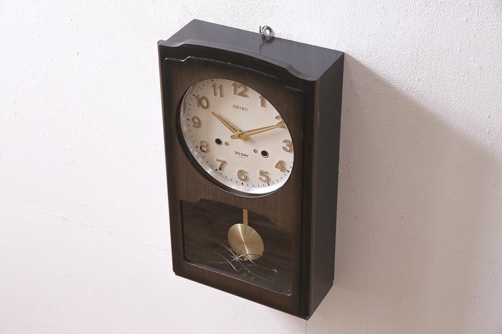 アンティーク時計 昭和レトロ SEIKO(セイコー) 30DAY 電池式 金色の文字がお洒落な柱時計(掛け時計)(R-045565)です。