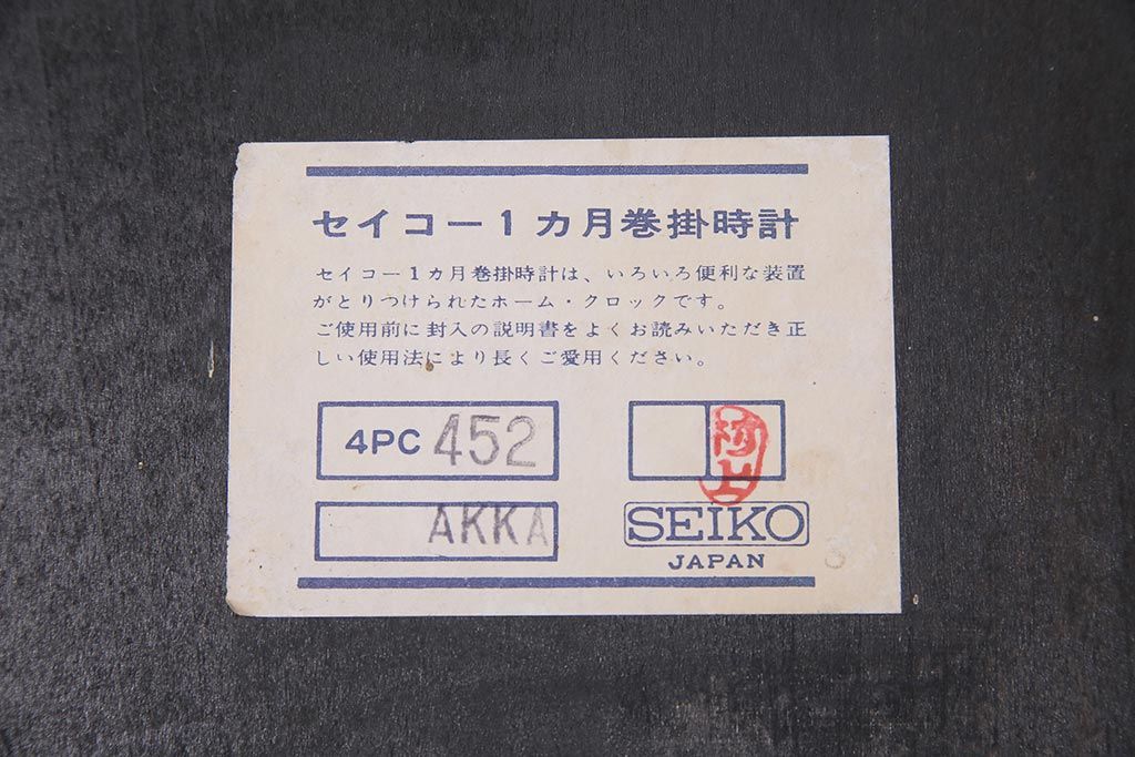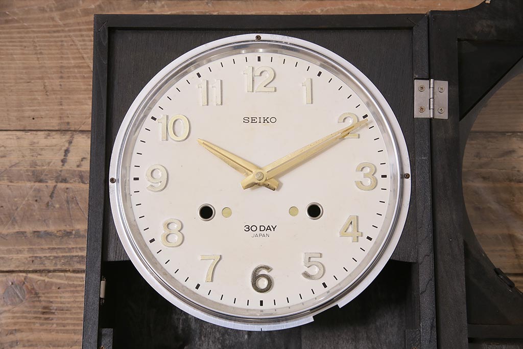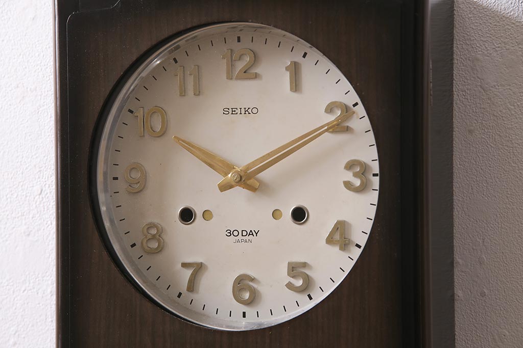 アンティーク時計 昭和レトロ SEIKO(セイコー) 30DAY 電池式 金色の文字がお洒落な柱時計(掛け時計)(R-045565)