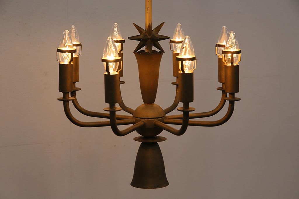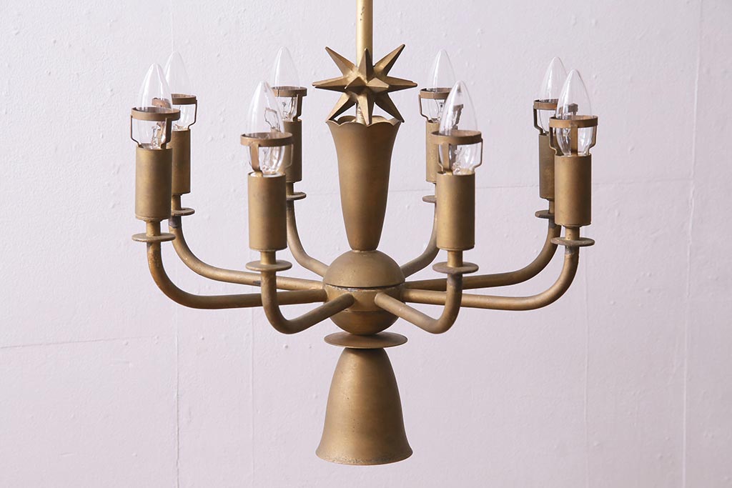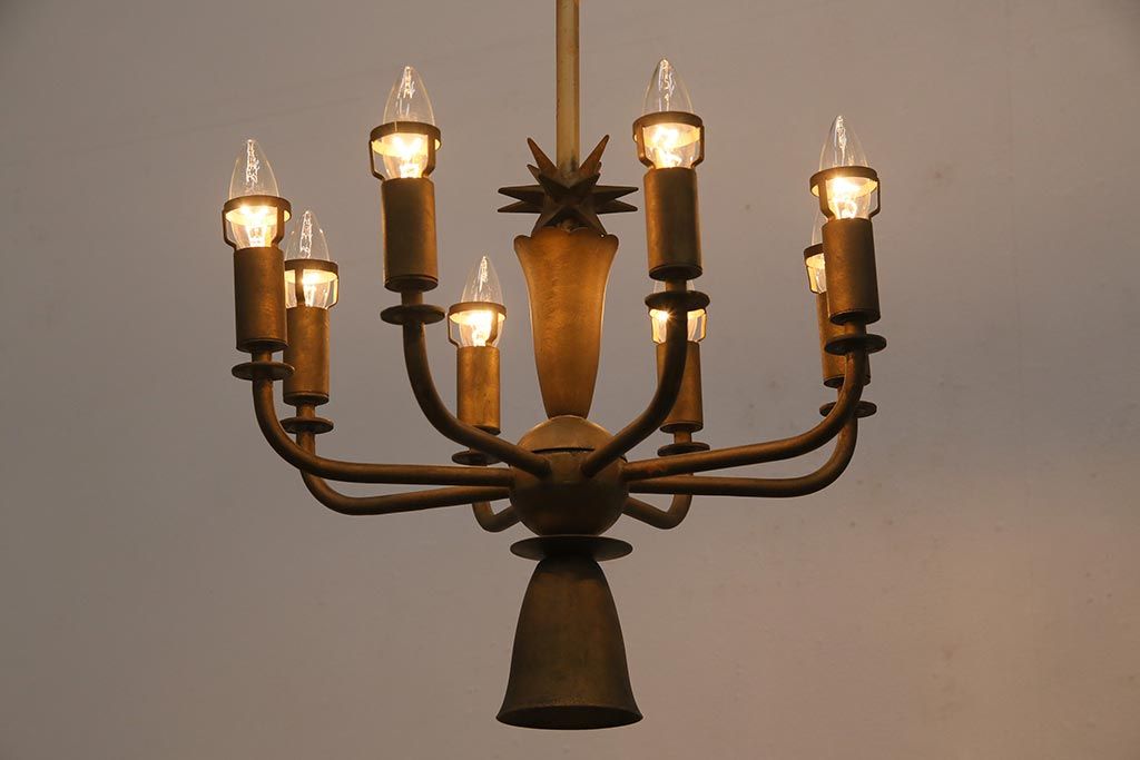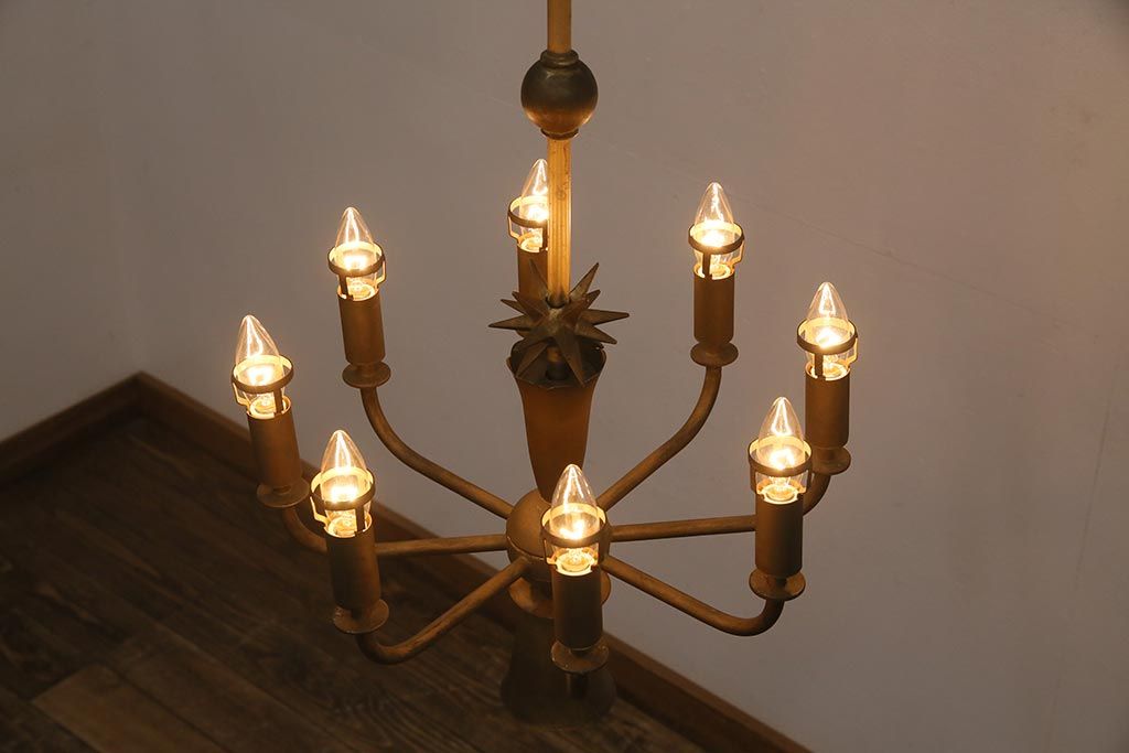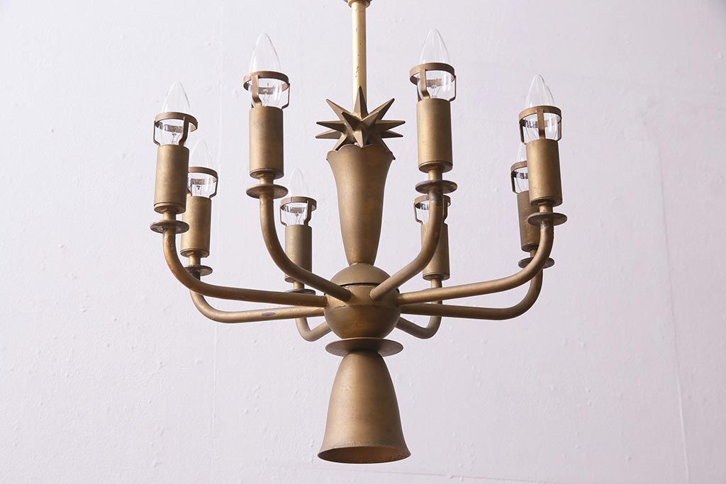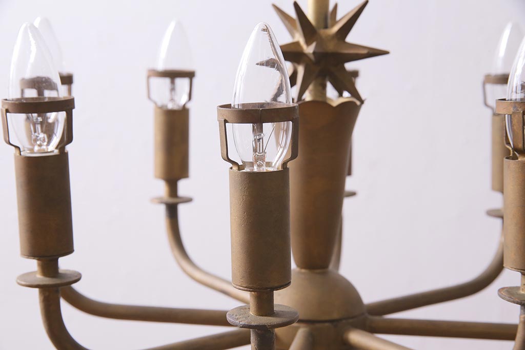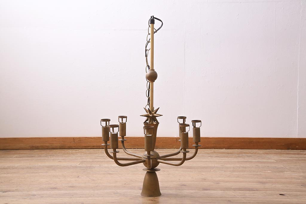 ヴィンテージ照明 アメリカビンテージ 8灯 星型のオブジェがポイントのシャンデリア(天井照明、吊り下げ照明)(R-045174)