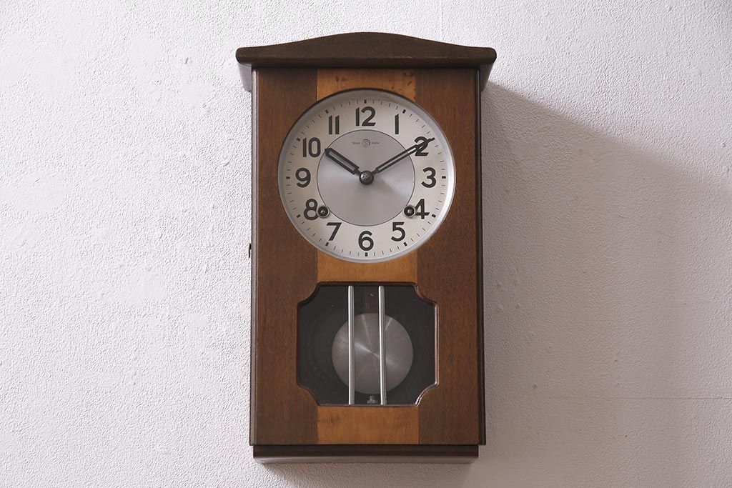 アンティーク時計 昭和中期 精工舎(SEIKOSHA、セイコー) ゼンマイ式 宮型 昭和レトロな柱時計(掛け時計、振り子時計)(R-045647)