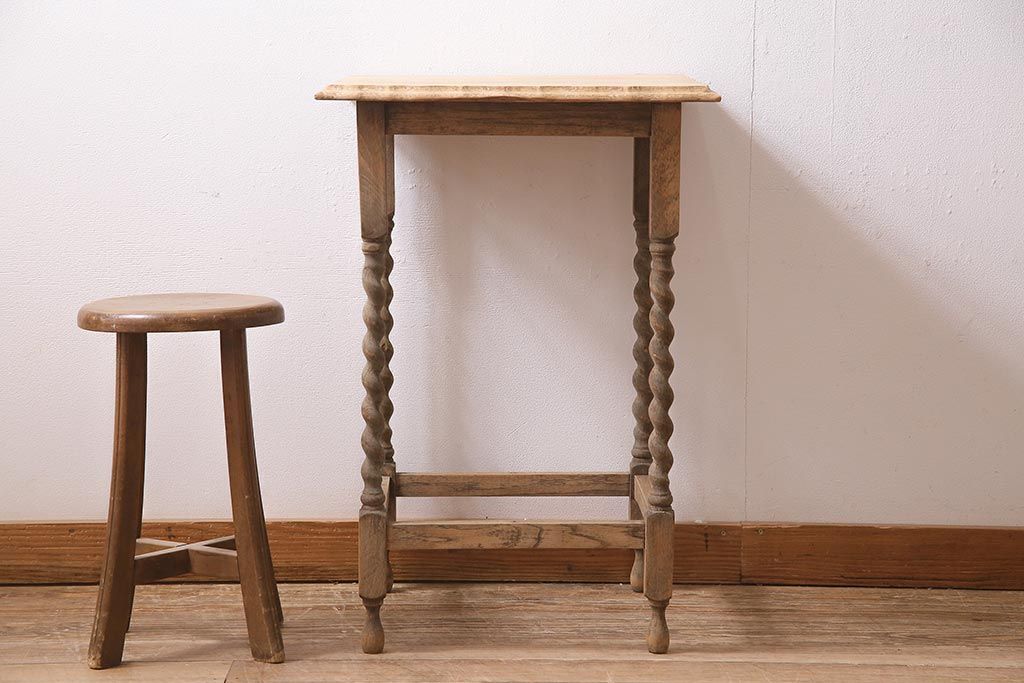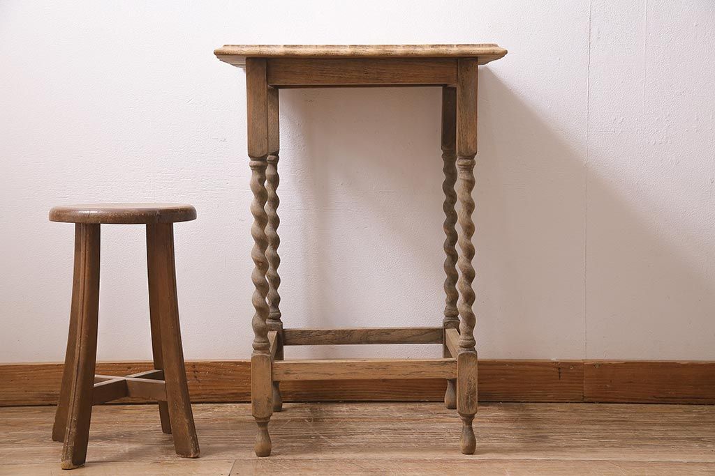 アンティーク家具 ストリップド(剥離) 和製アンティーク オーク材 サイドテーブル(飾り台、花台)(R-045740)