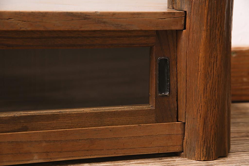 アンティーク家具 大正昭和初期 リメイク ケヤキ材 独特の存在感を放つテレビ台(置き床、飾り台、ローボード)(R-045741)