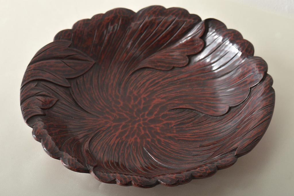 ラフジュ工房> 和食器・茶道具> 皿 > 古い鎌倉彫 木製菓子器(漆器、菓子皿)(R-045615)