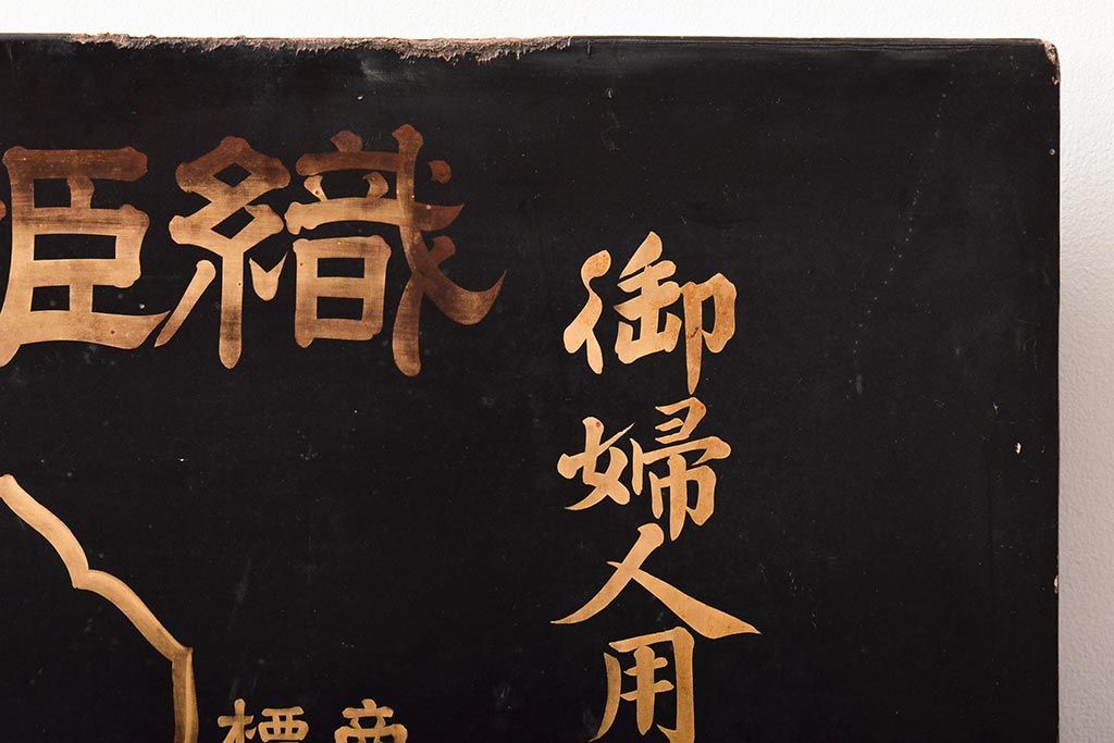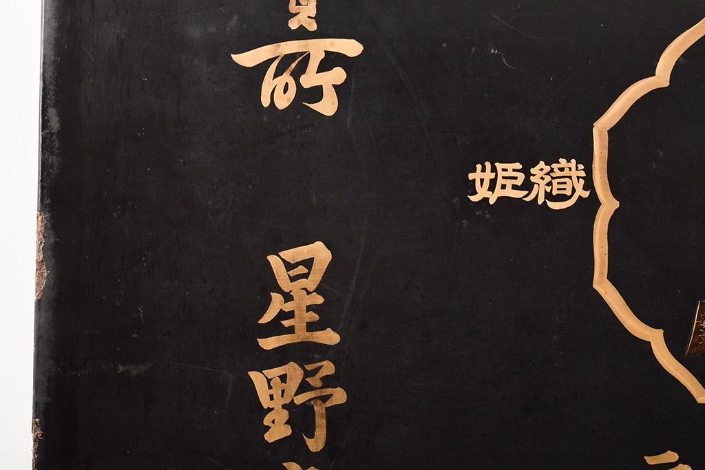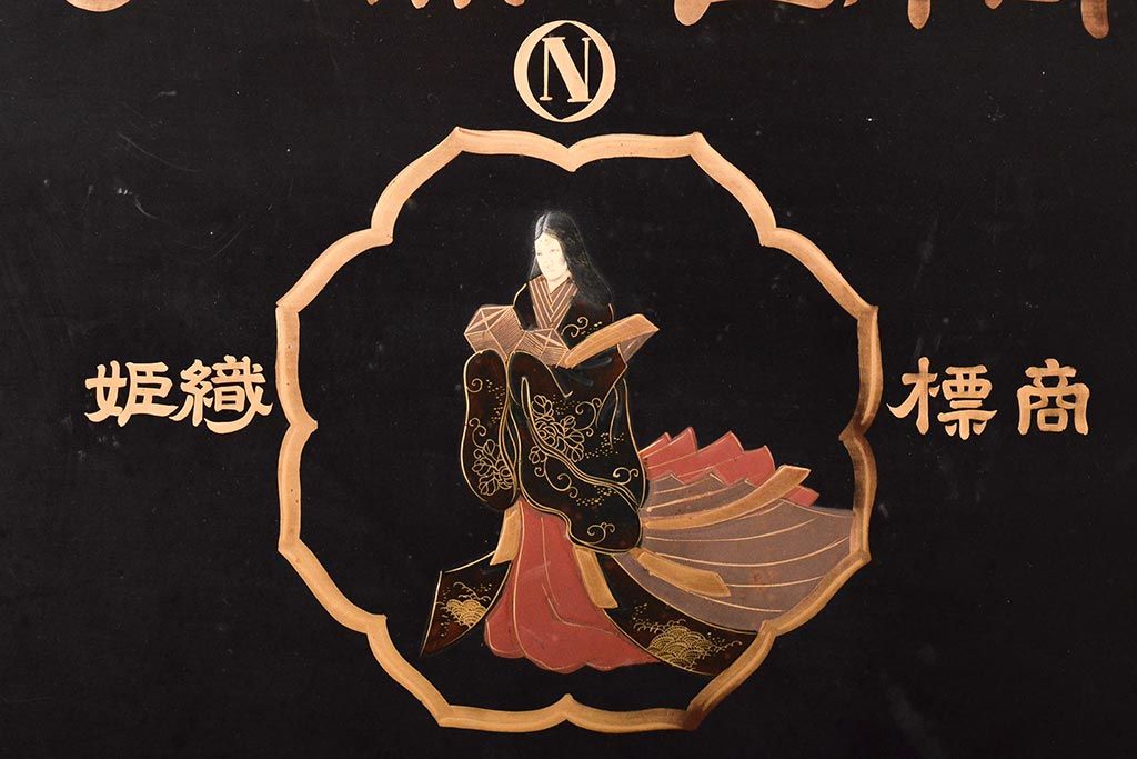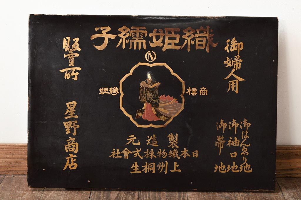 明治期 織姫繻子 木製看板(呉服店、十二単、蒔絵)(R-045666)