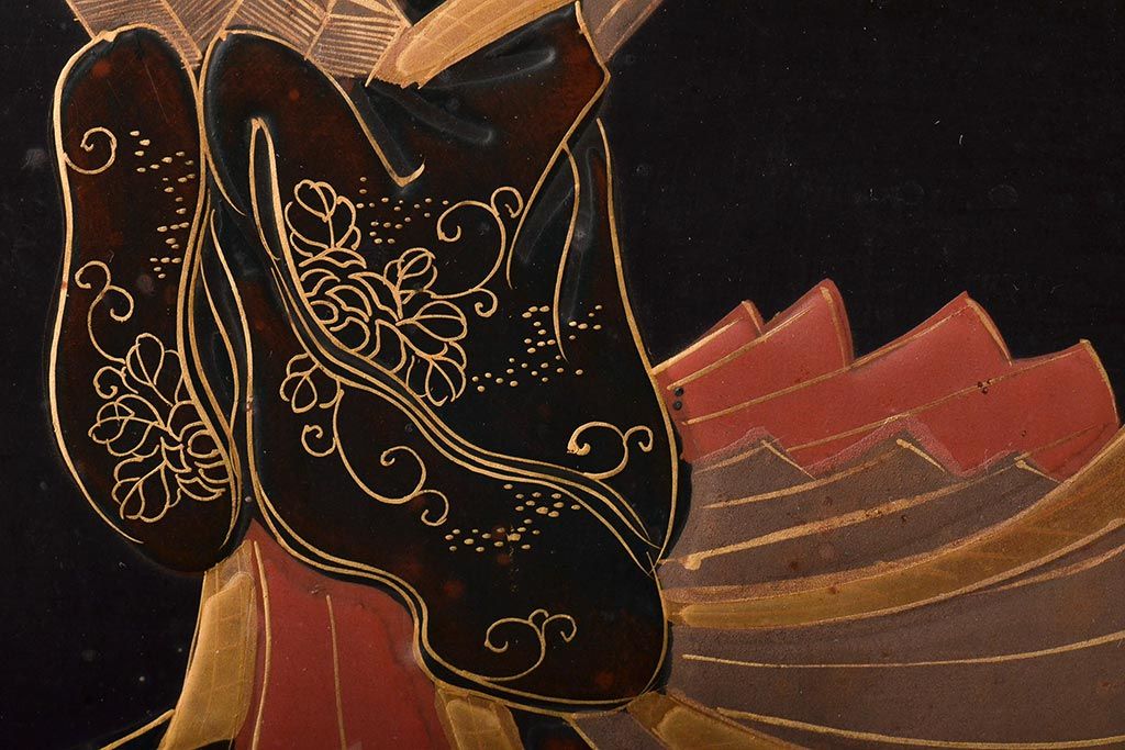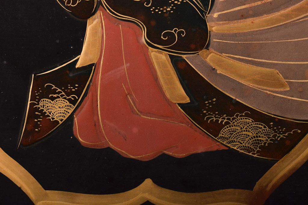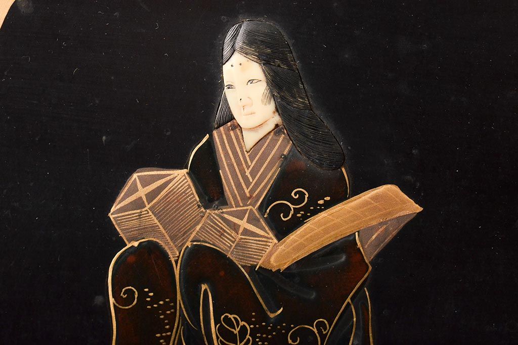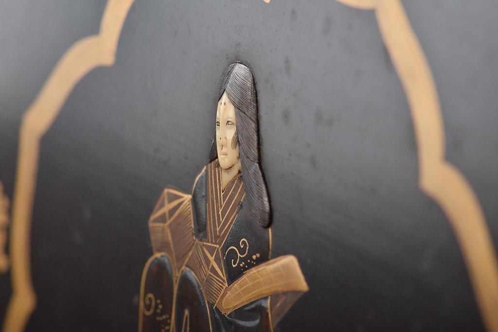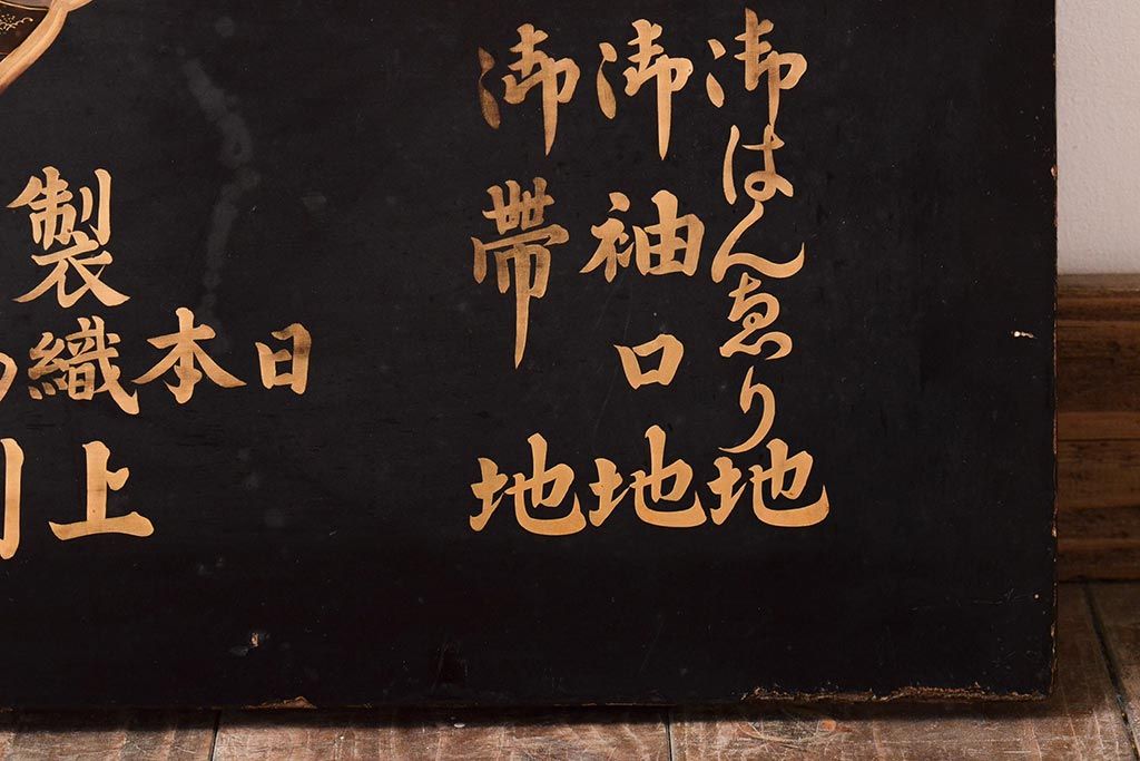 明治期 織姫繻子 木製看板(呉服店、十二単、蒔絵)(R-045666)