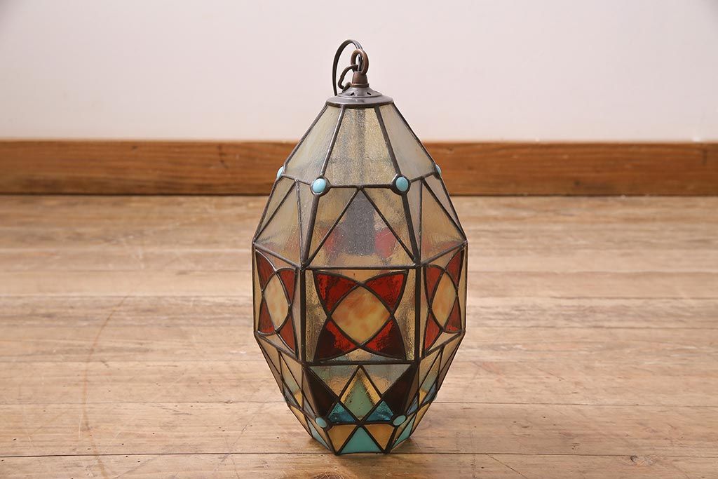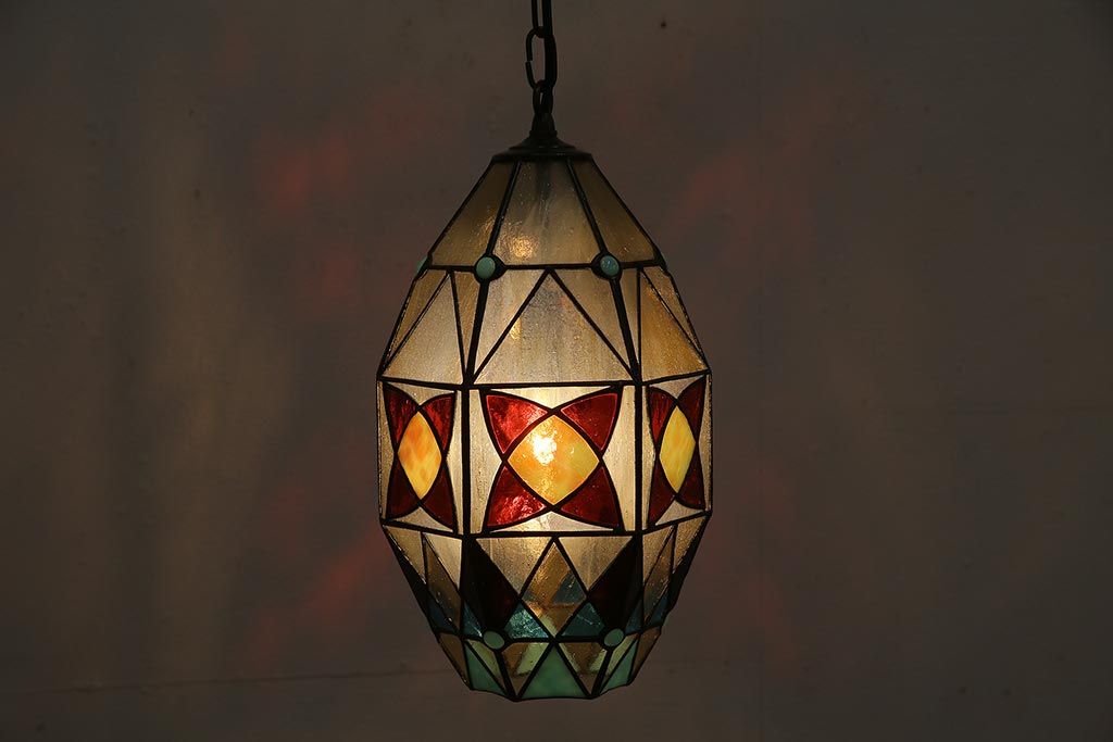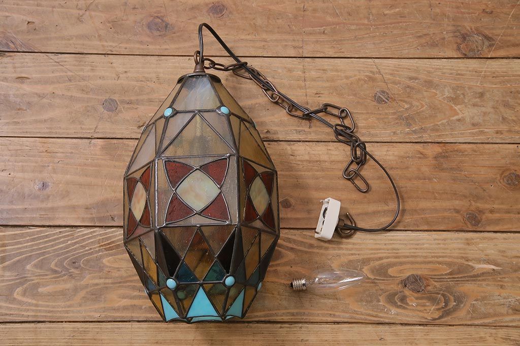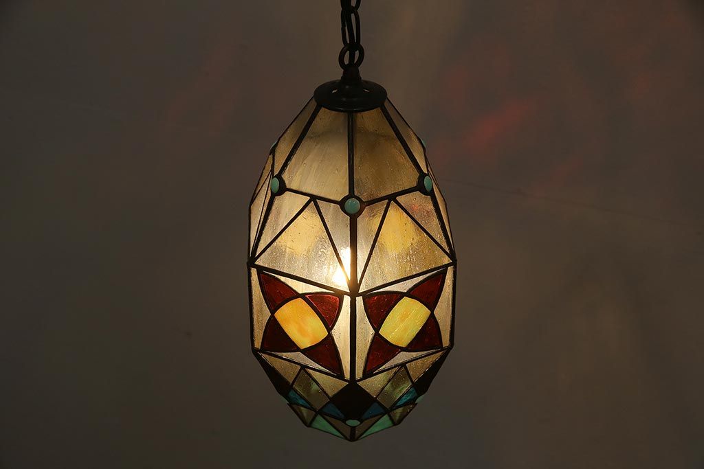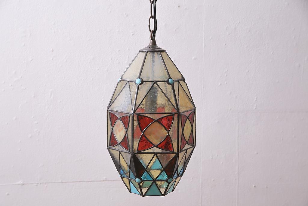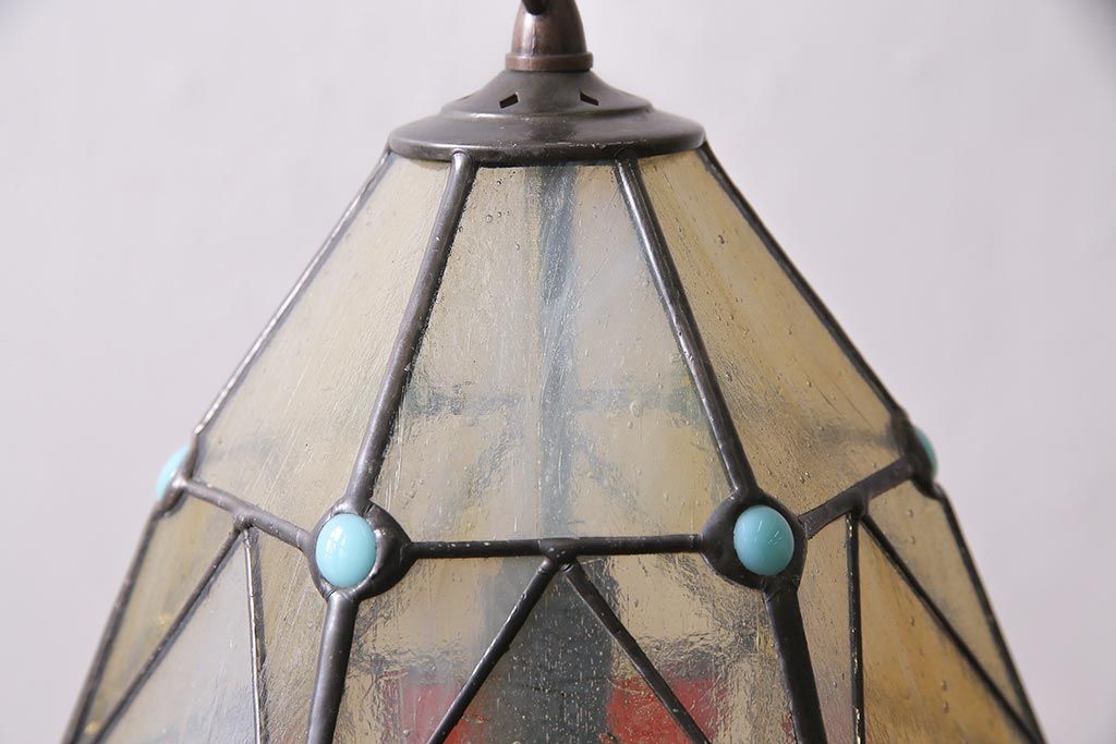ヴィンテージ照明 イギリスビンテージ ステンドグラスがお洒落なアクセントのペンダントライト(吊り下げ照明、天井照明)(R-045745)
